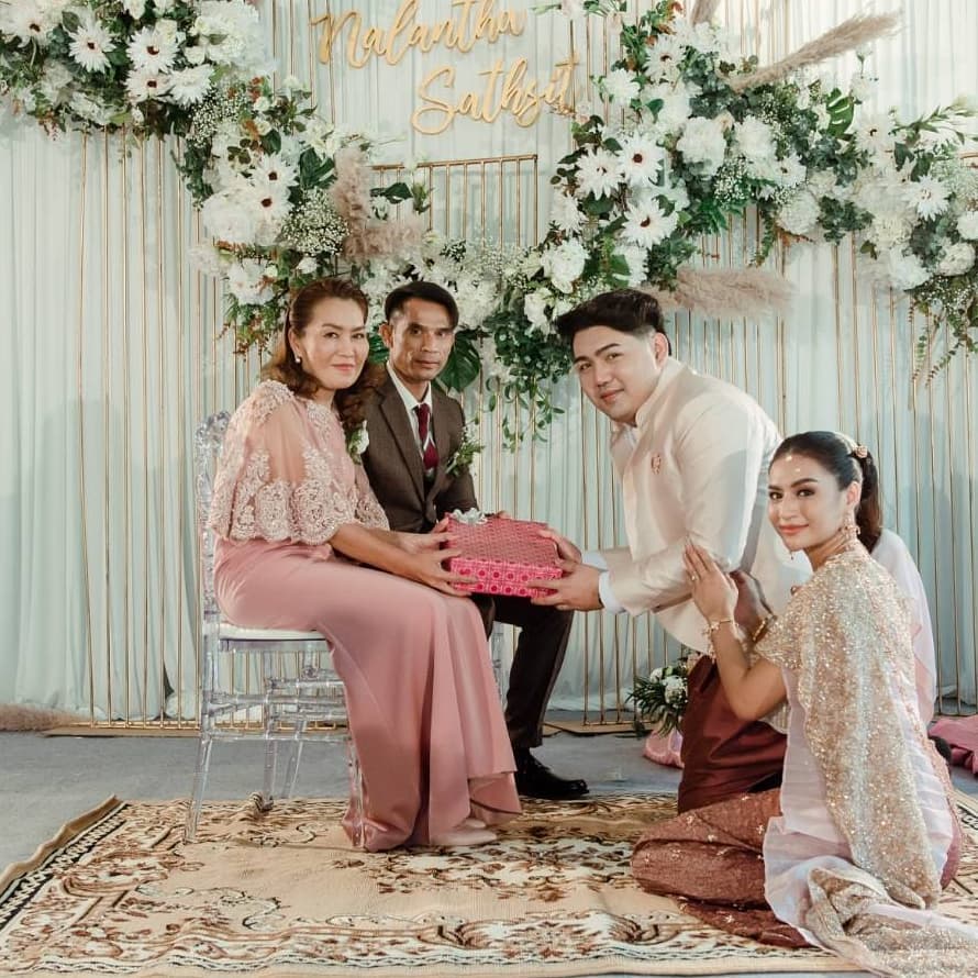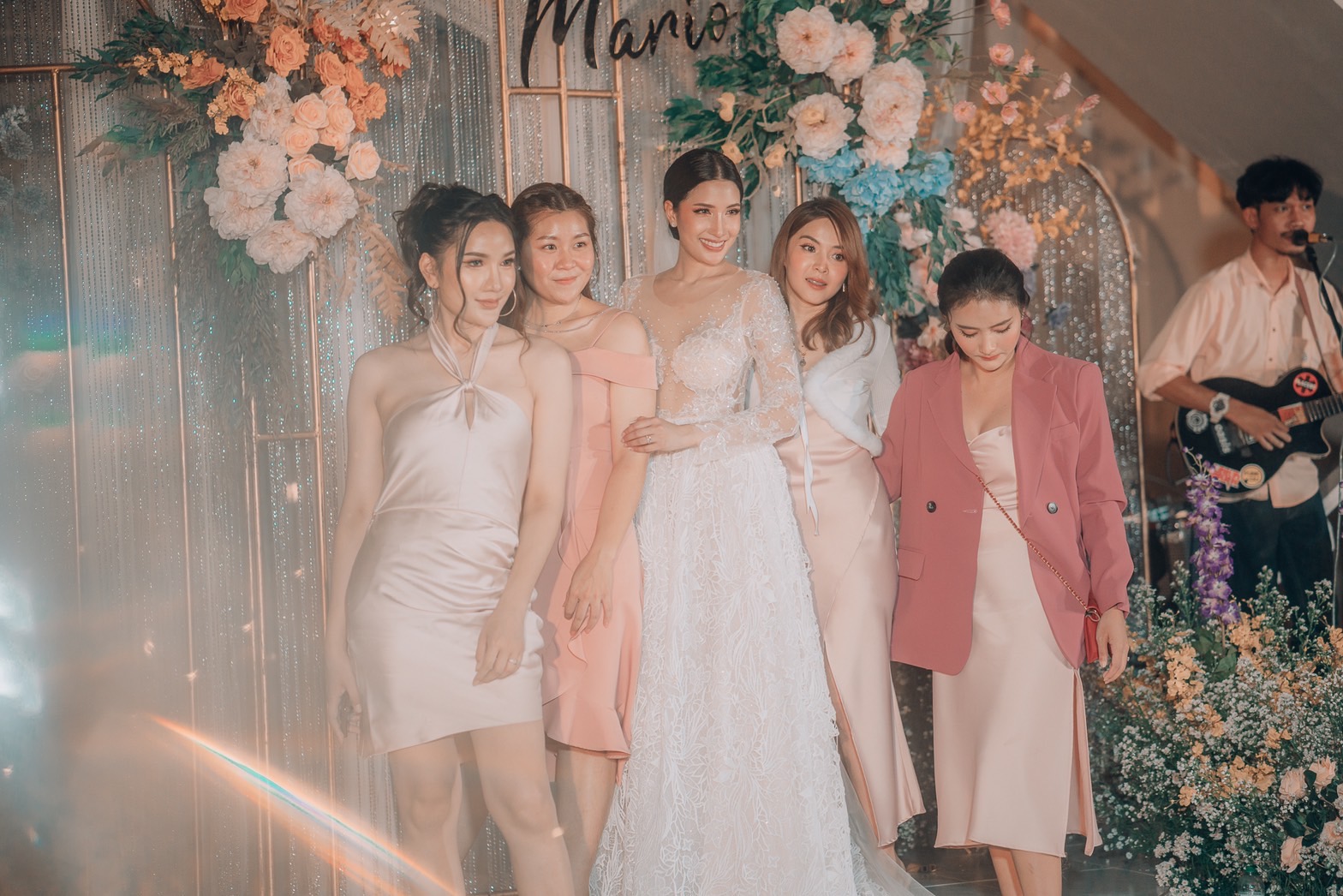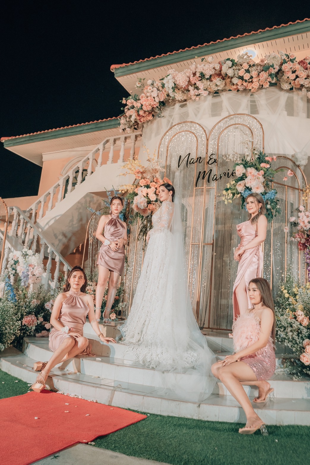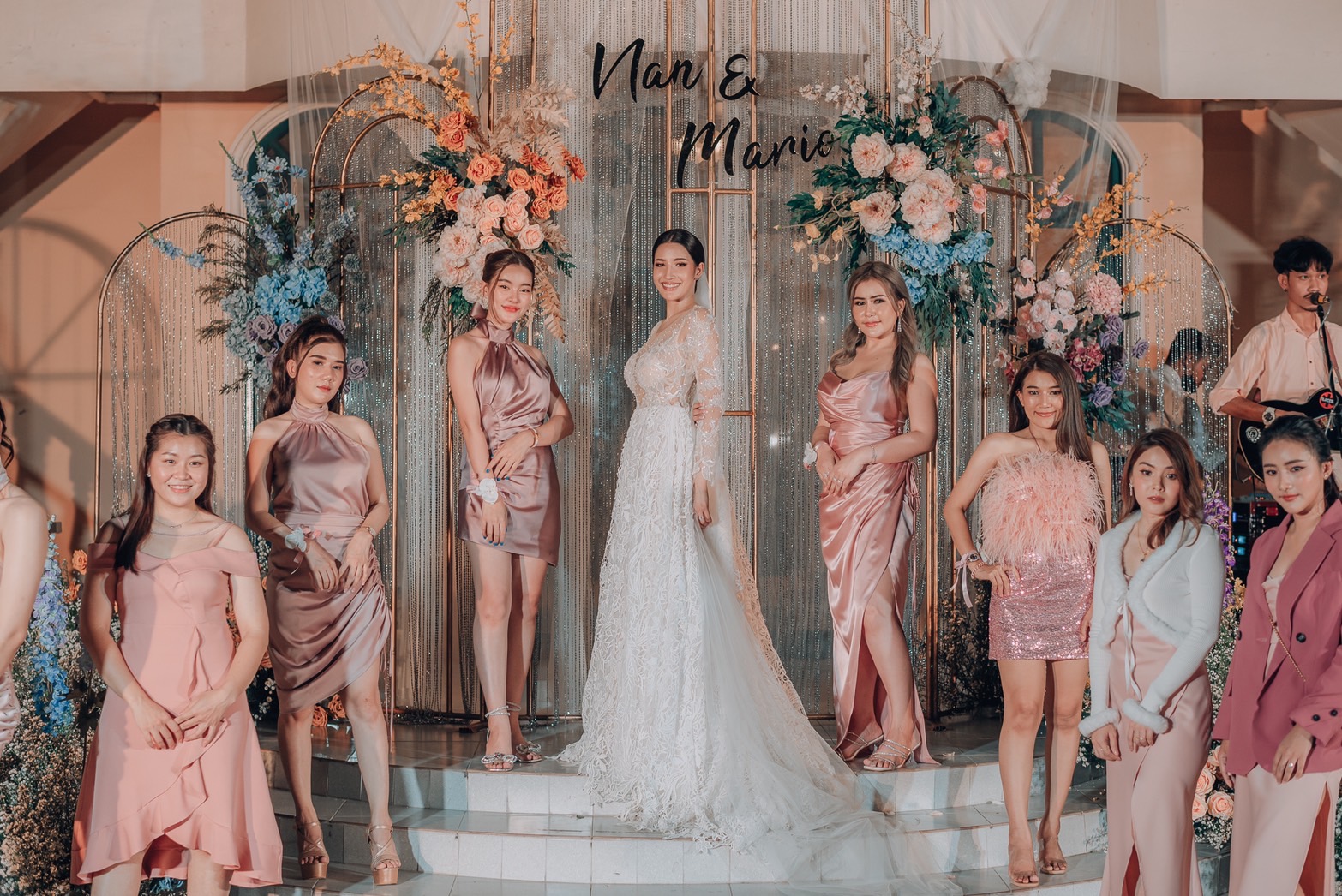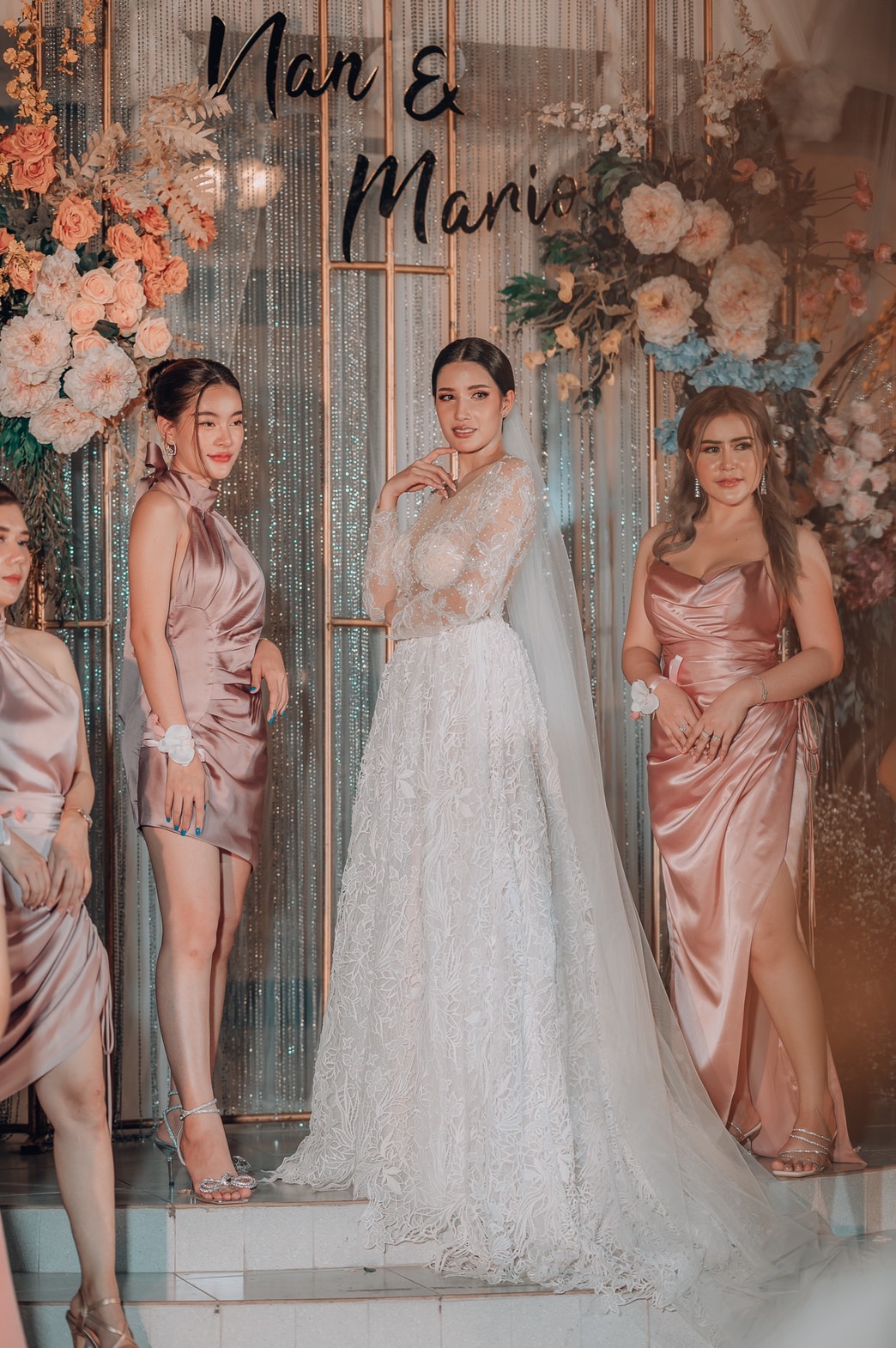 Khun Nok: Pastel pink engagement dress & Reception chiffon dress