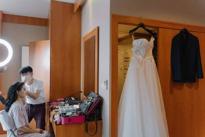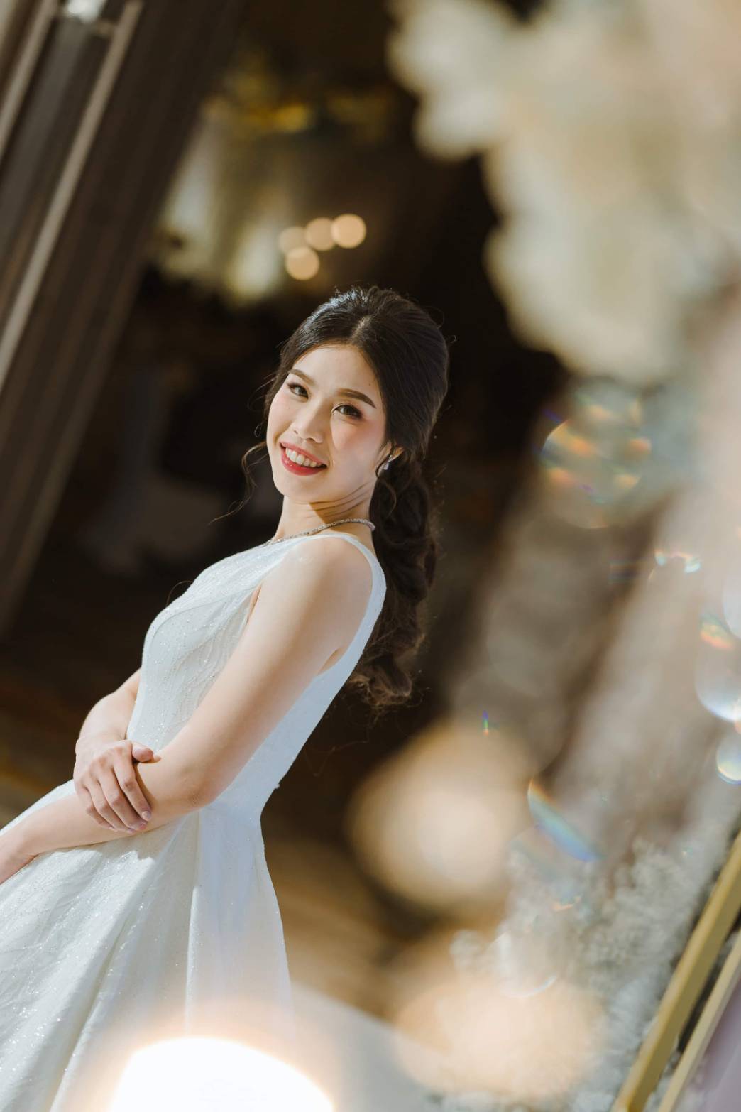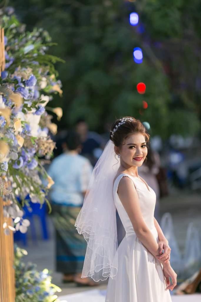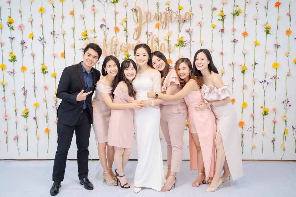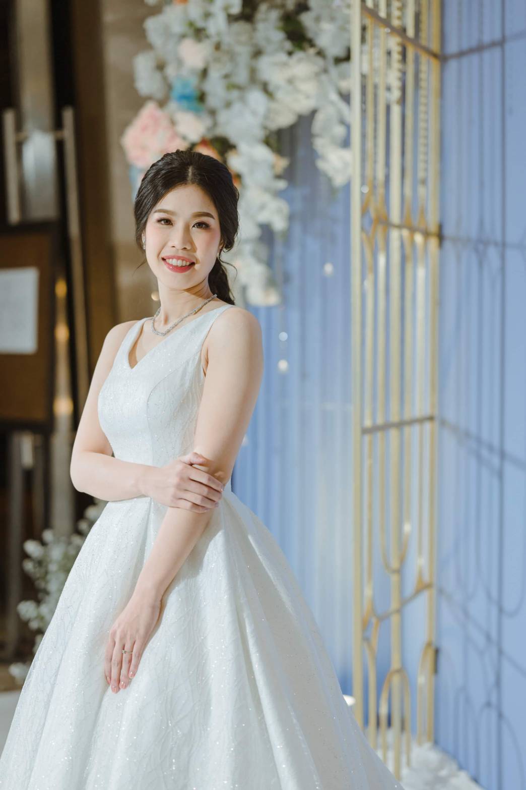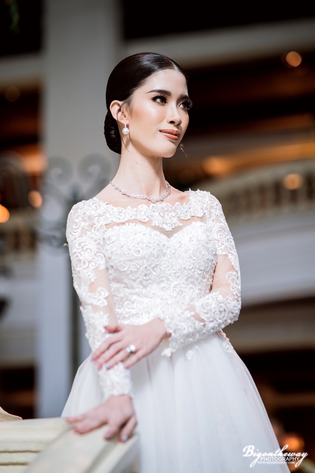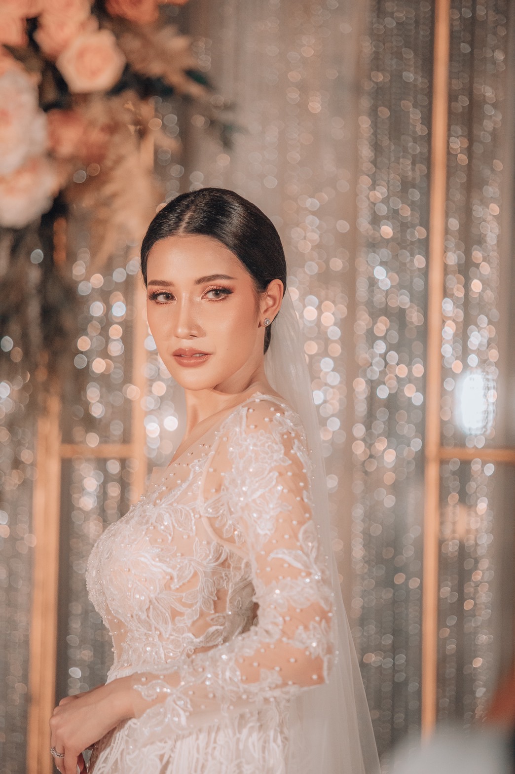 Khun Nok: Pastel pink engagement dress & Reception chiffon dress
