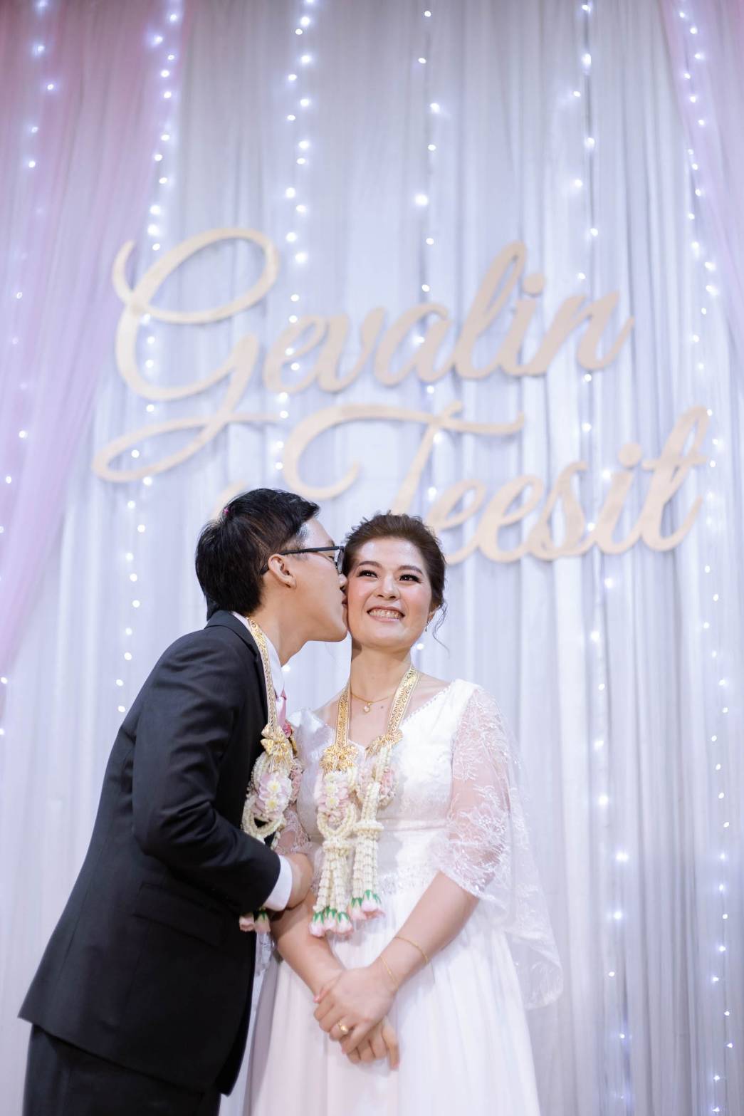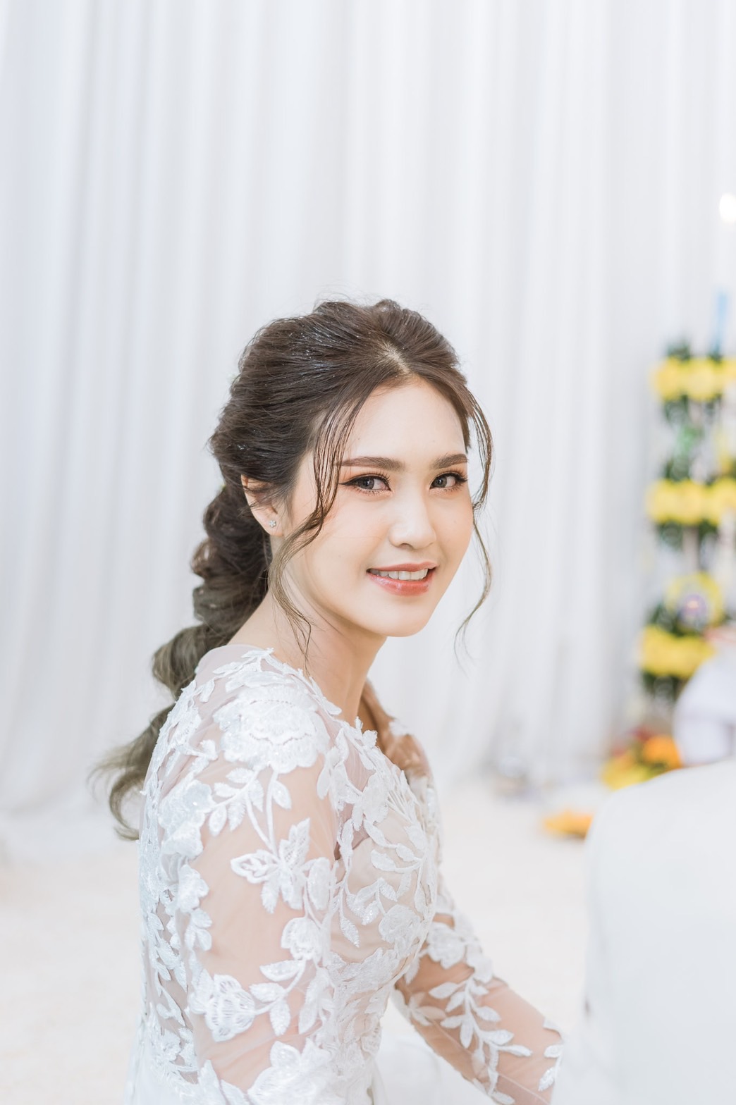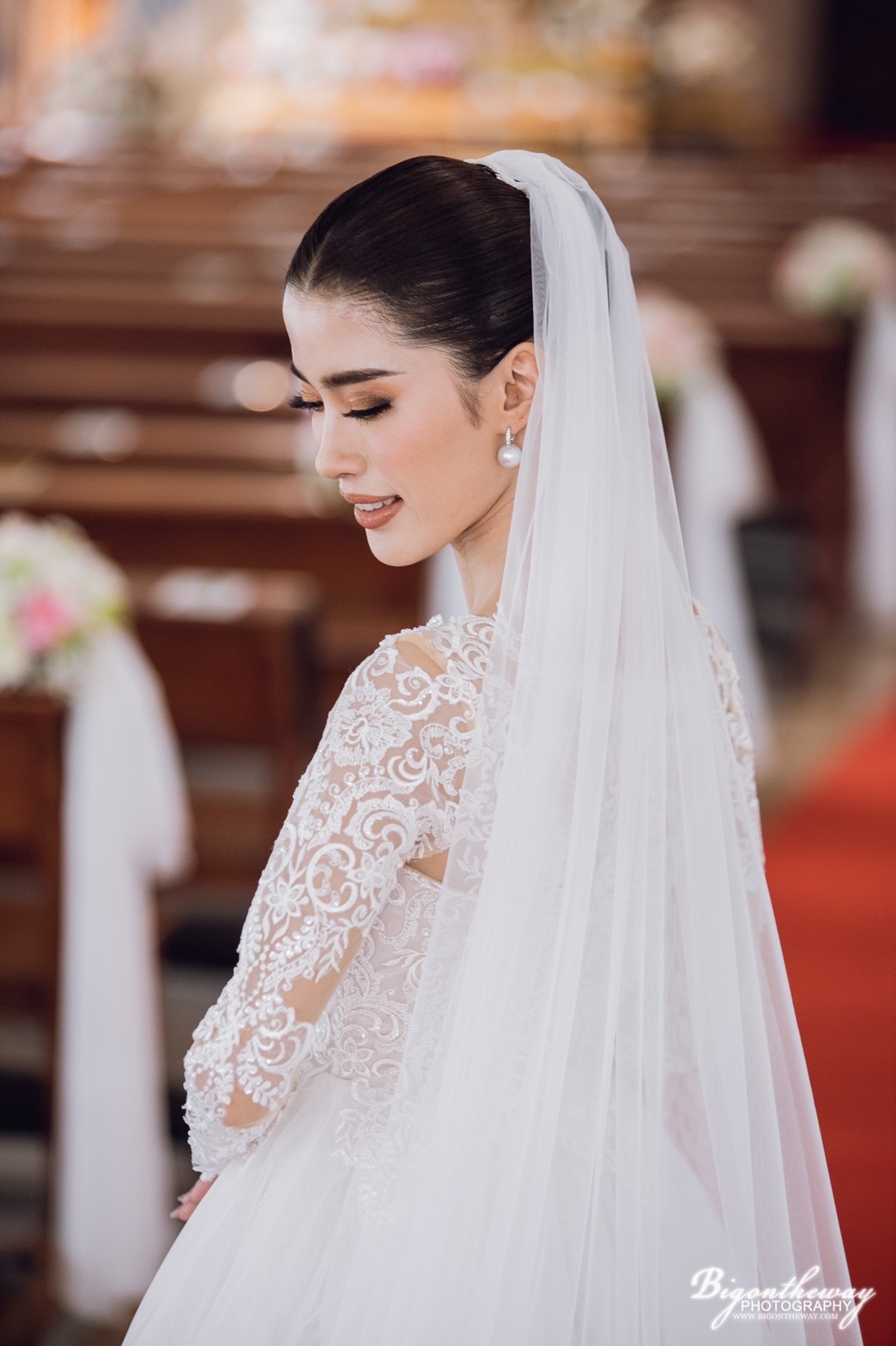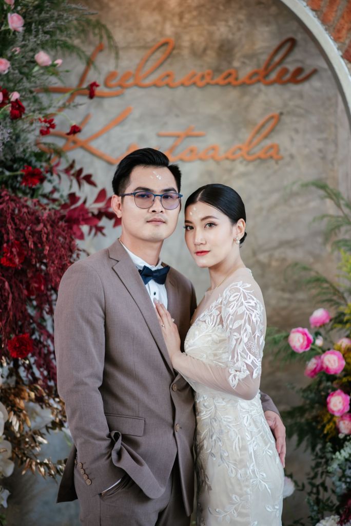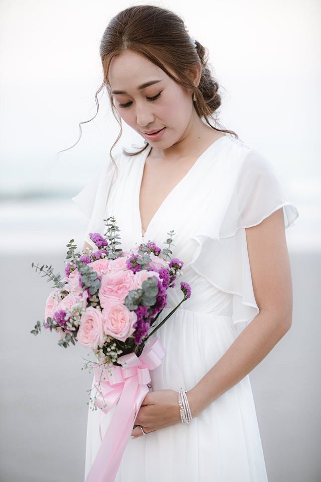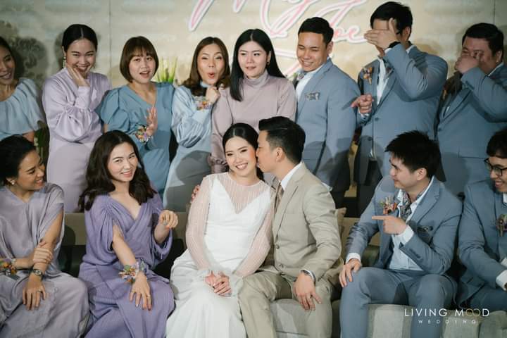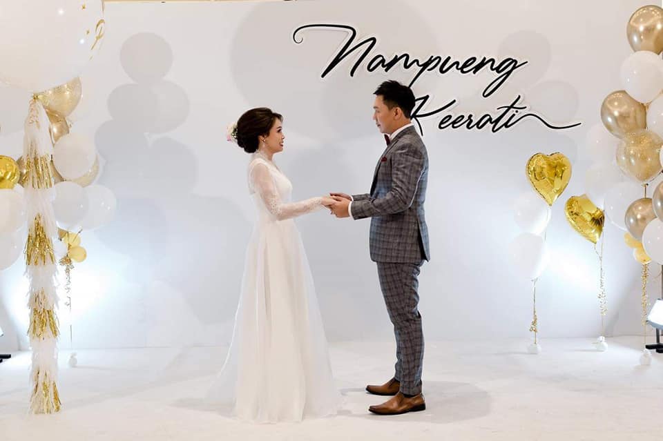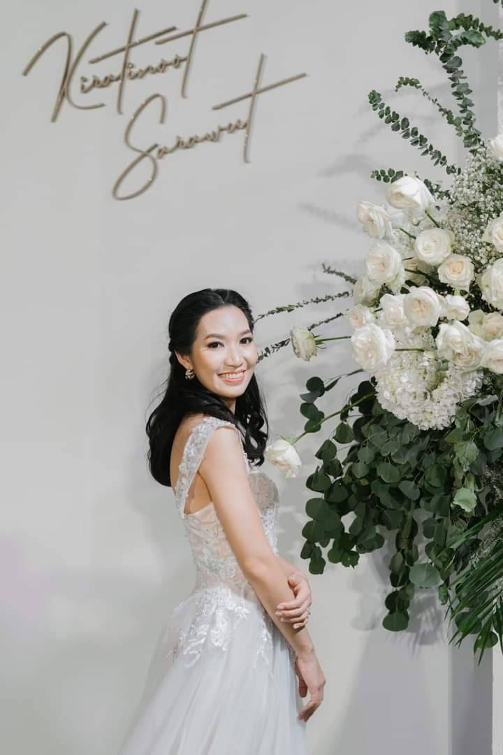 Khun Nok: Pastel pink engagement dress & Reception chiffon dress