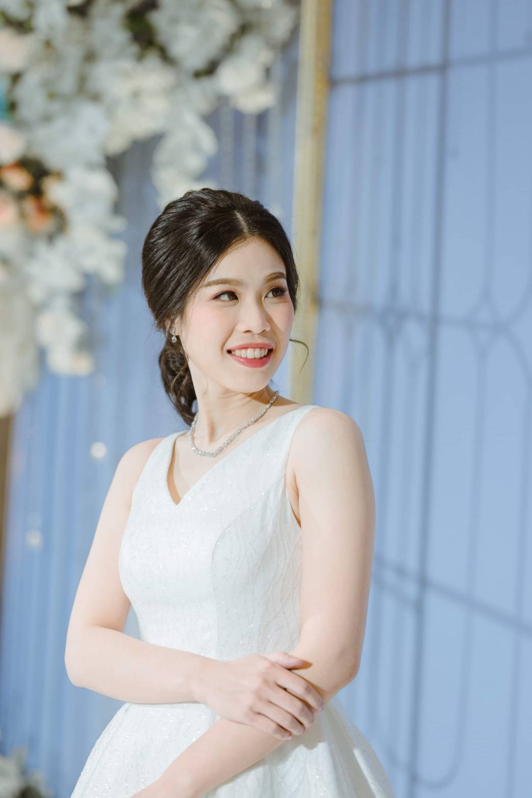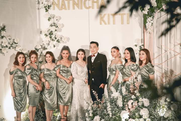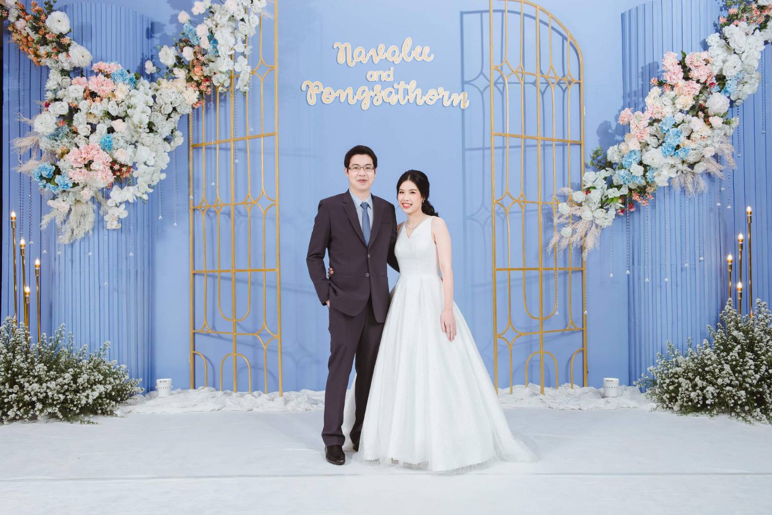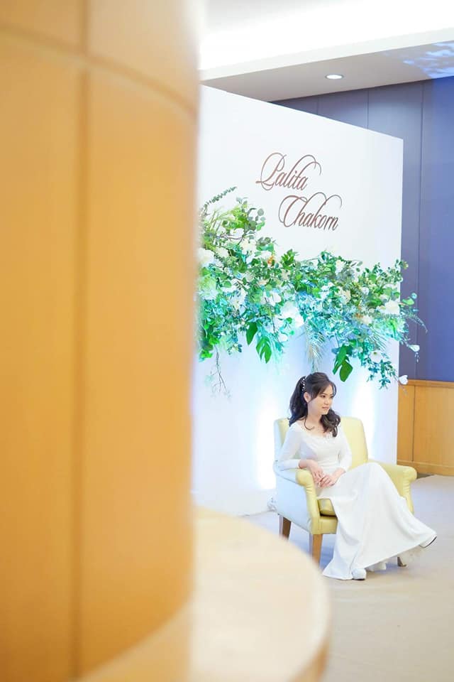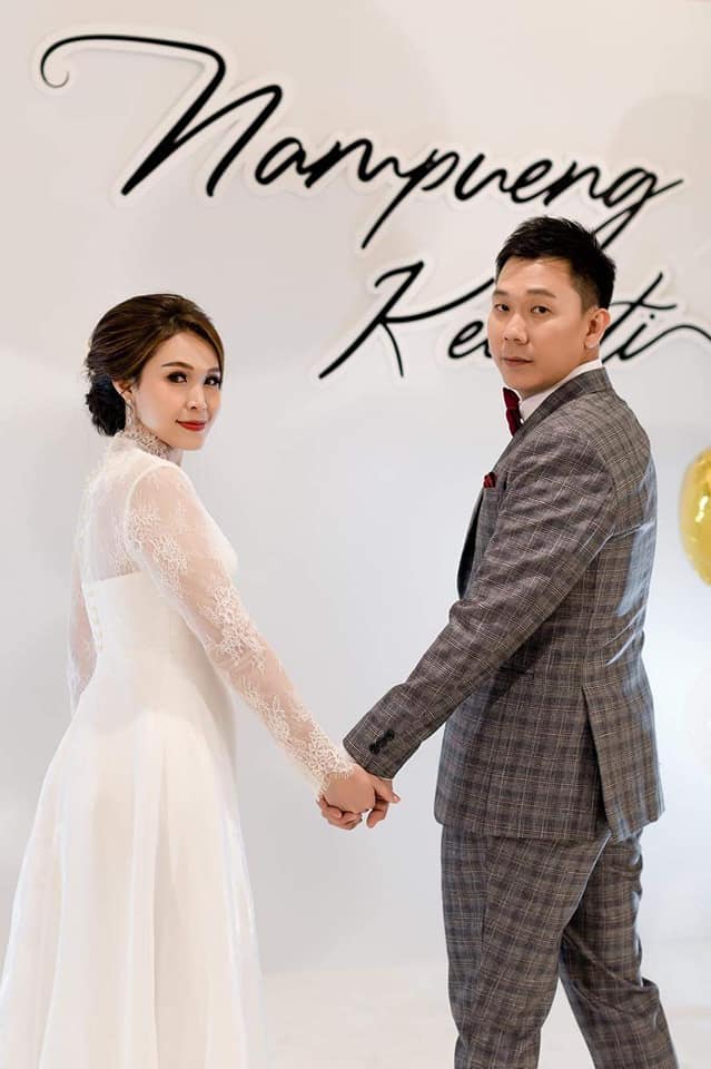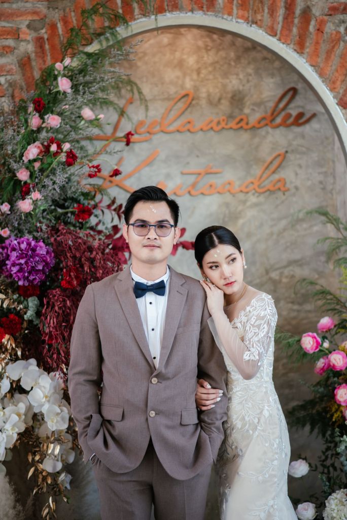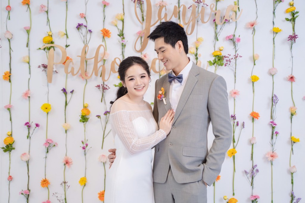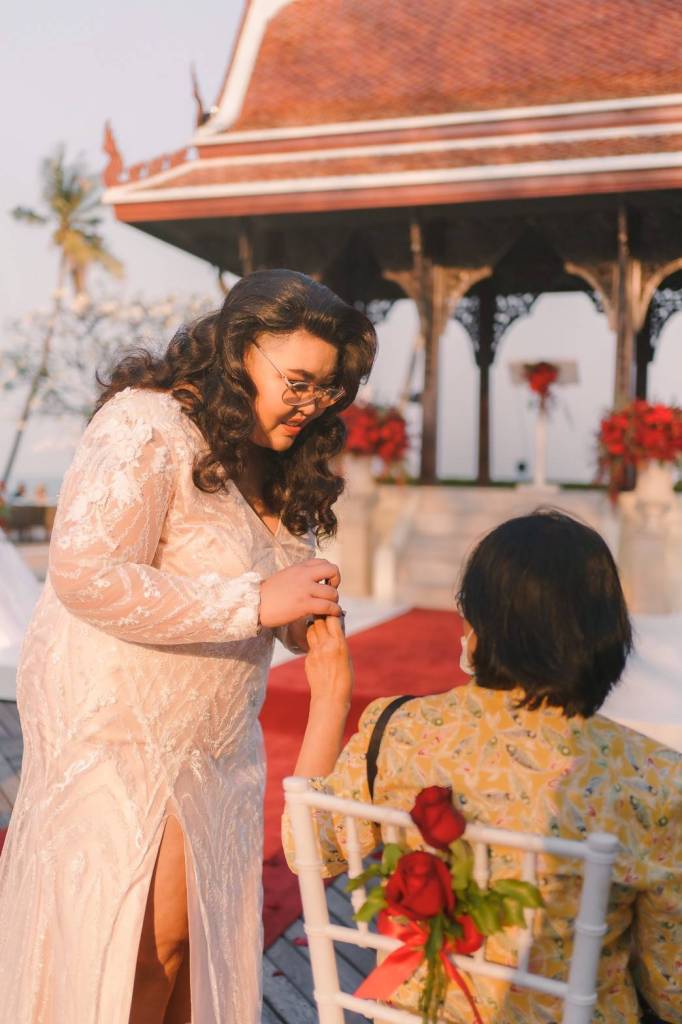 Khun Nok: Pastel pink engagement dress & Reception chiffon dress