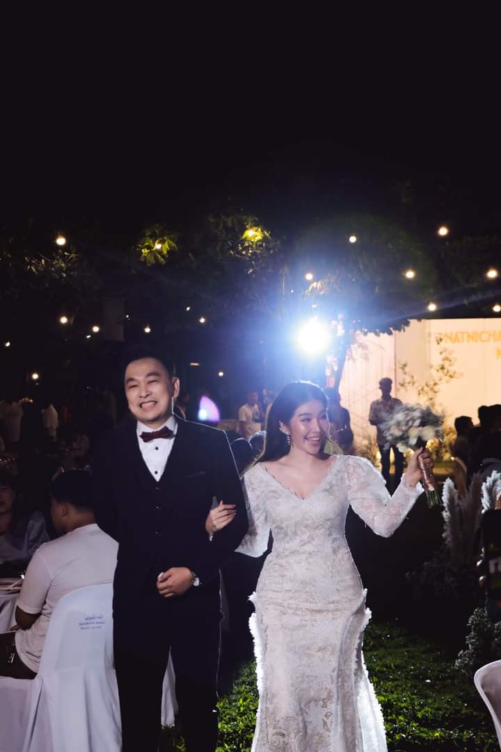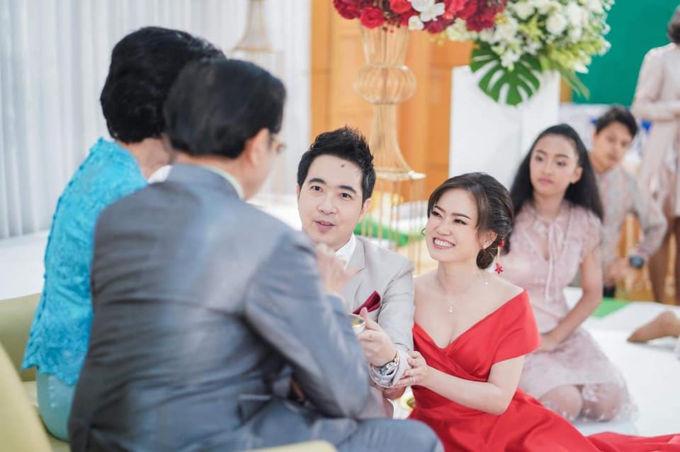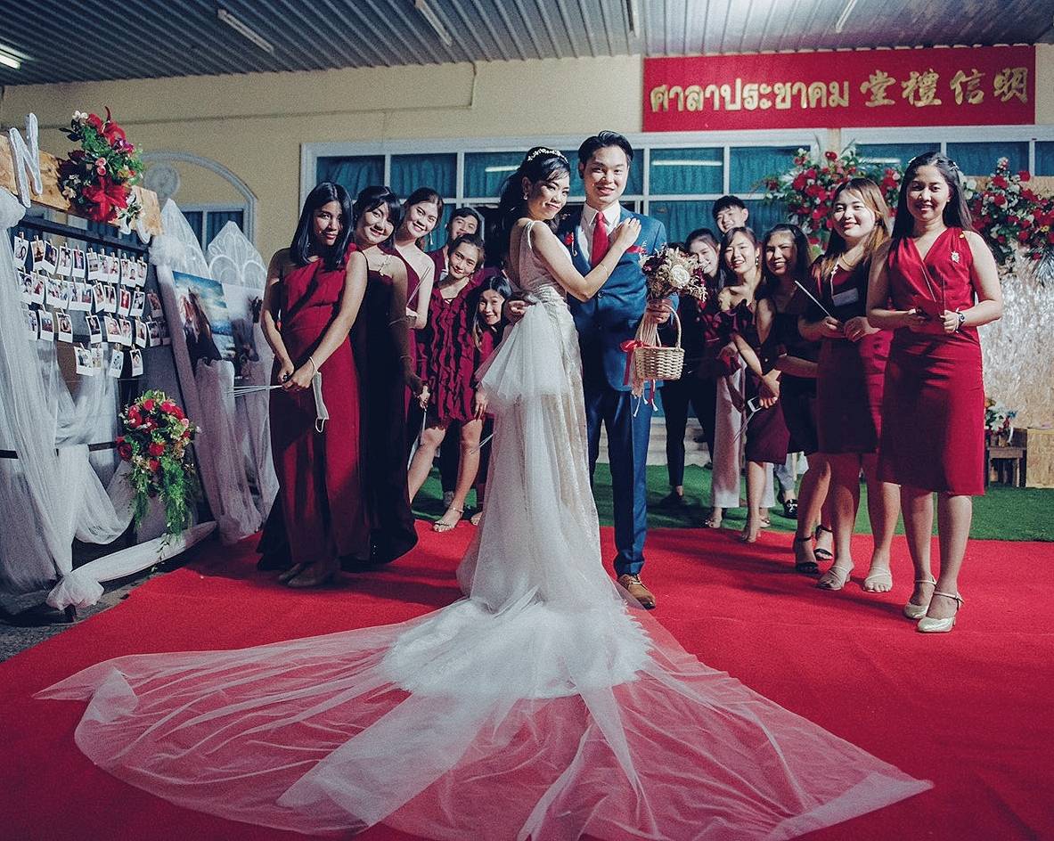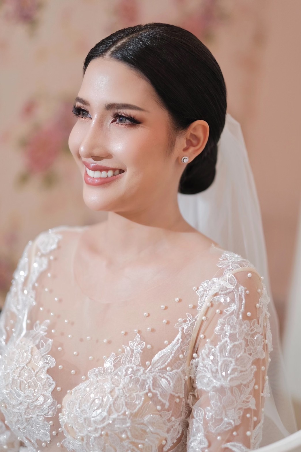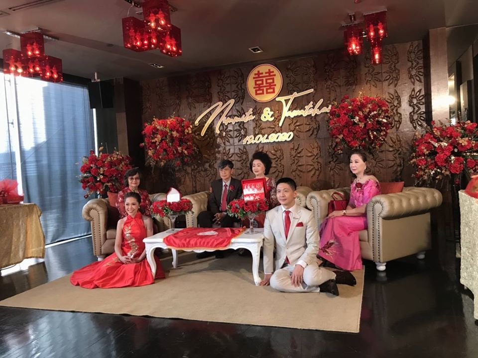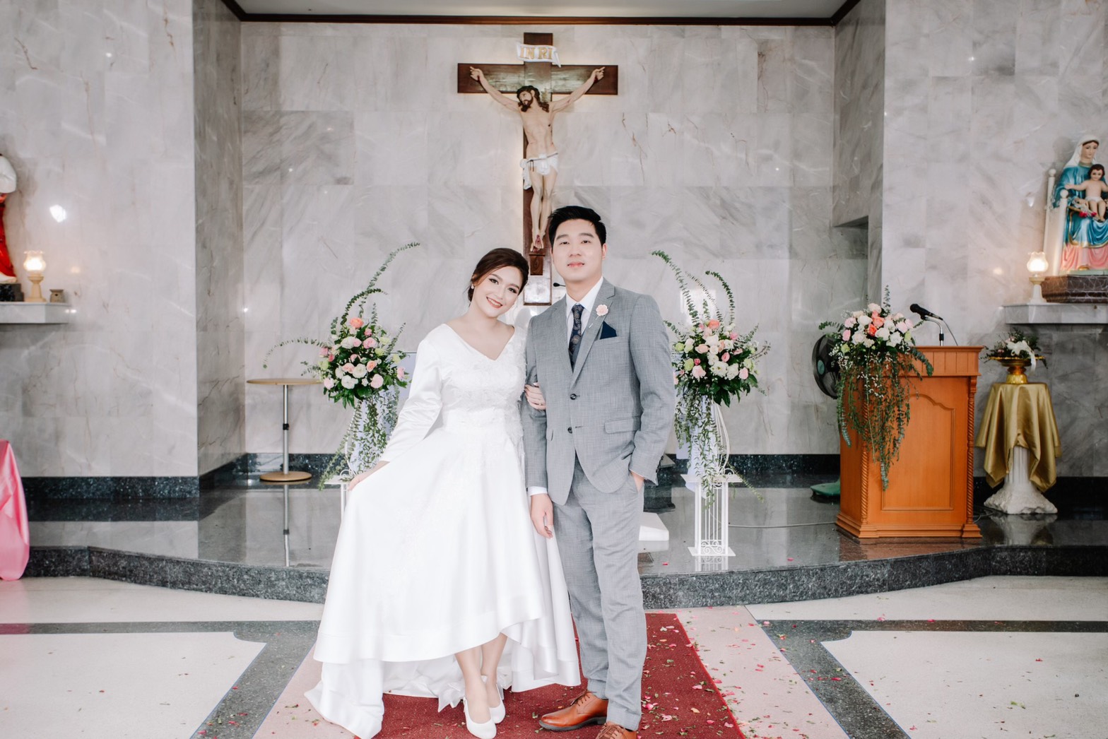 Khun Nok: Pastel pink engagement dress & Reception chiffon dress