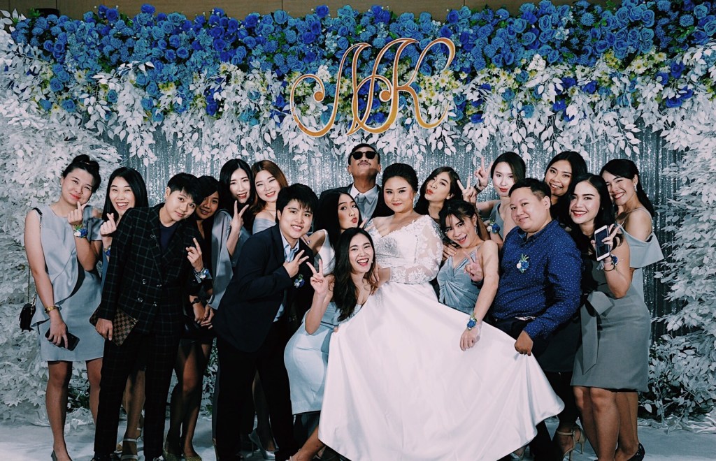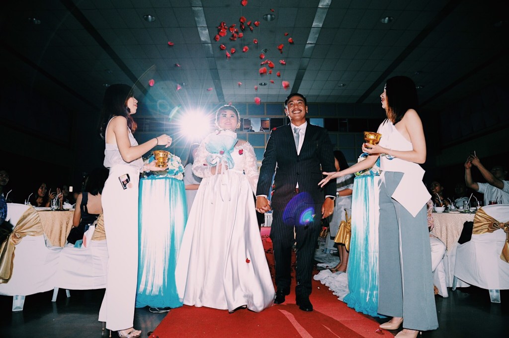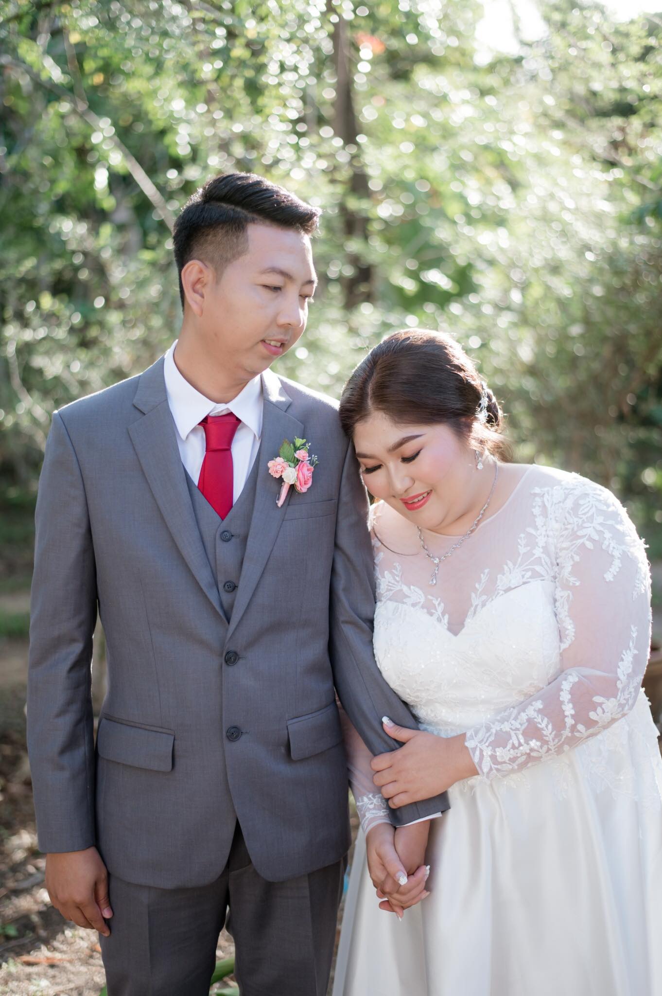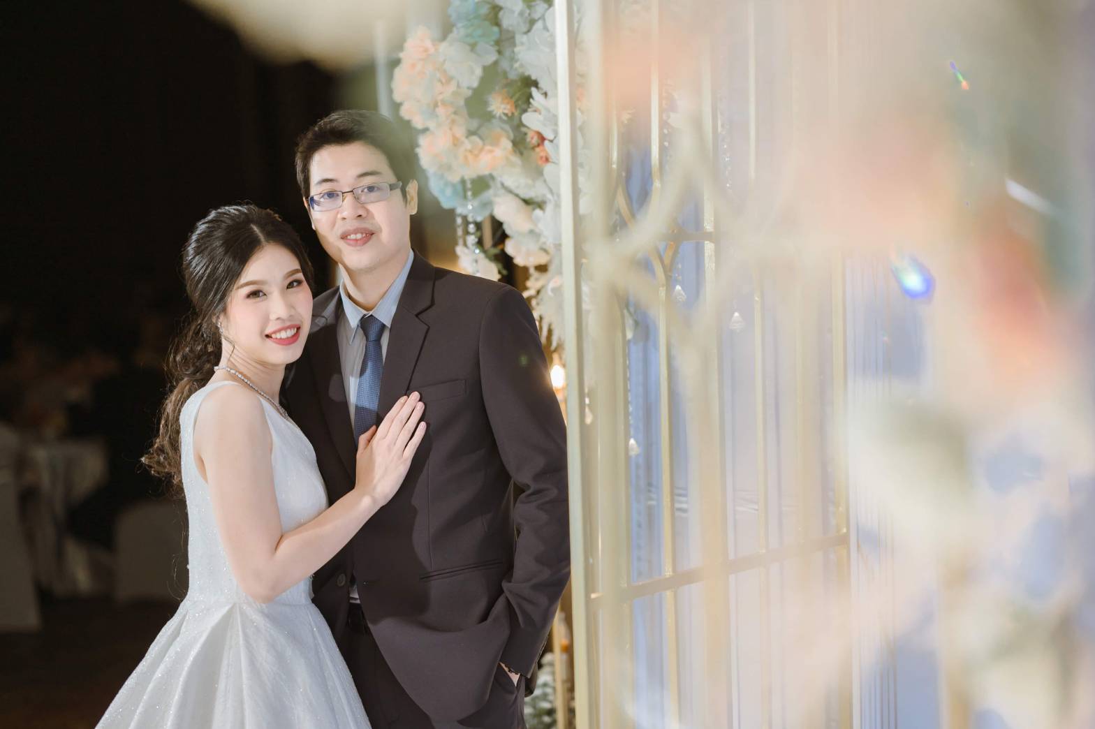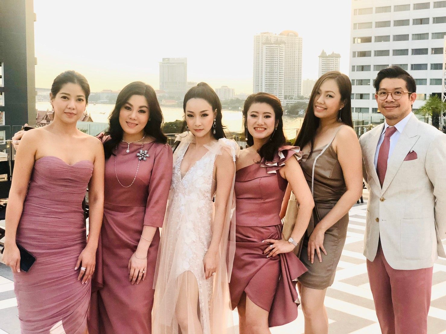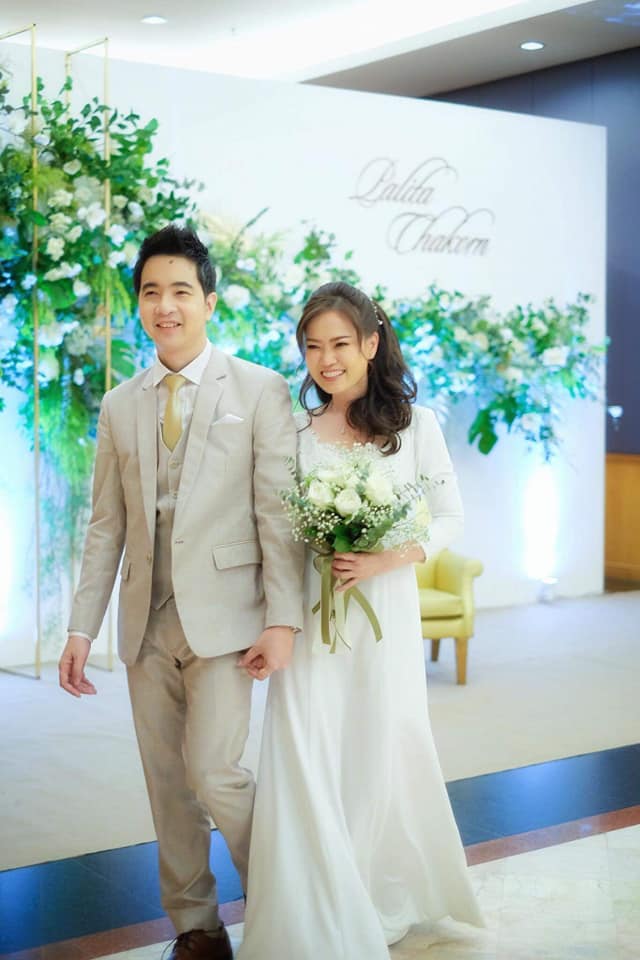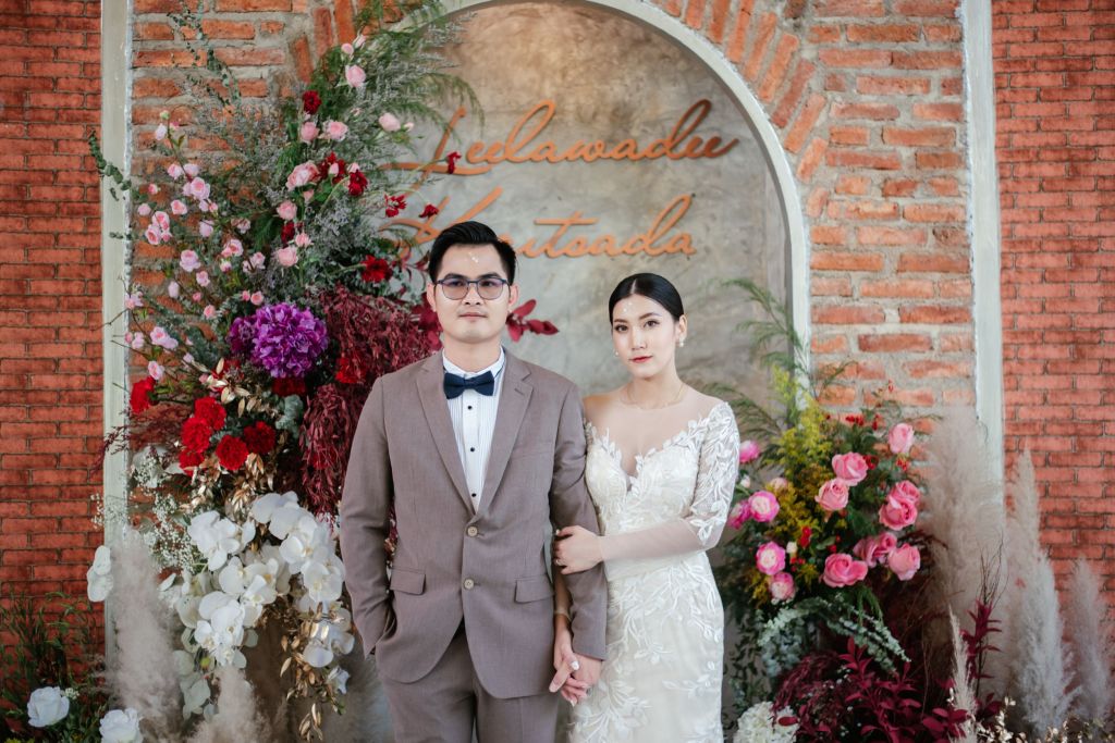 Khun Nok: Pastel pink engagement dress & Reception chiffon dress