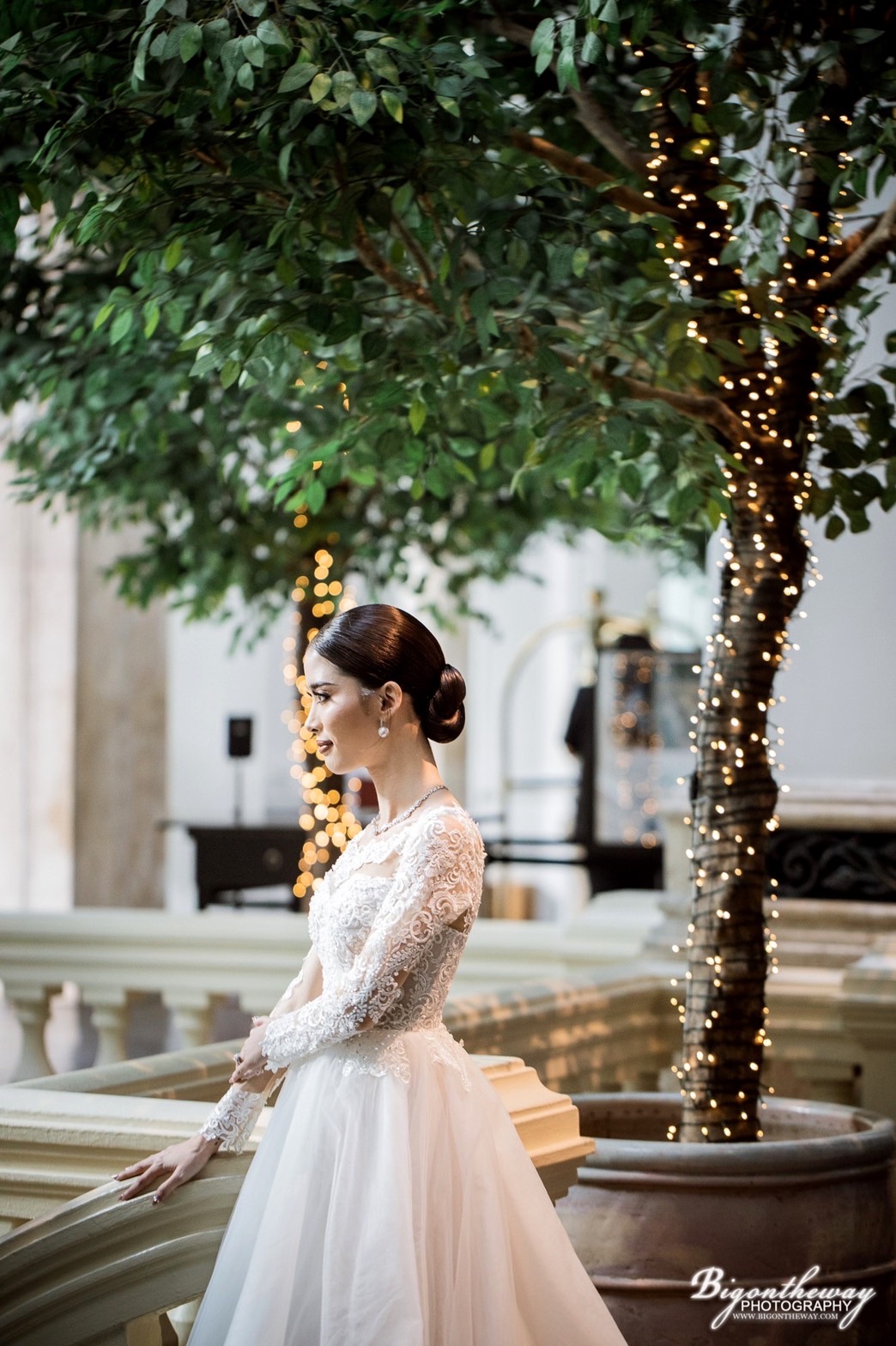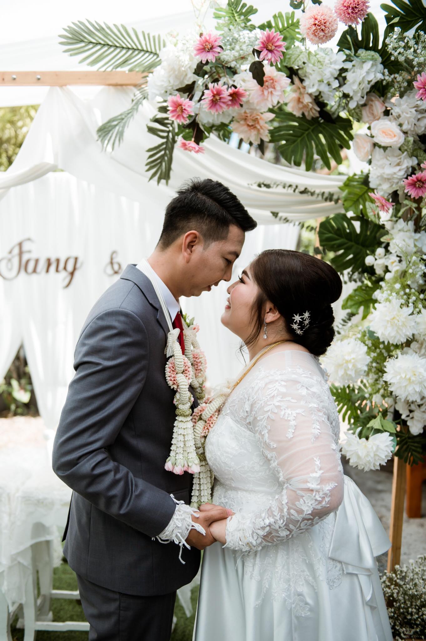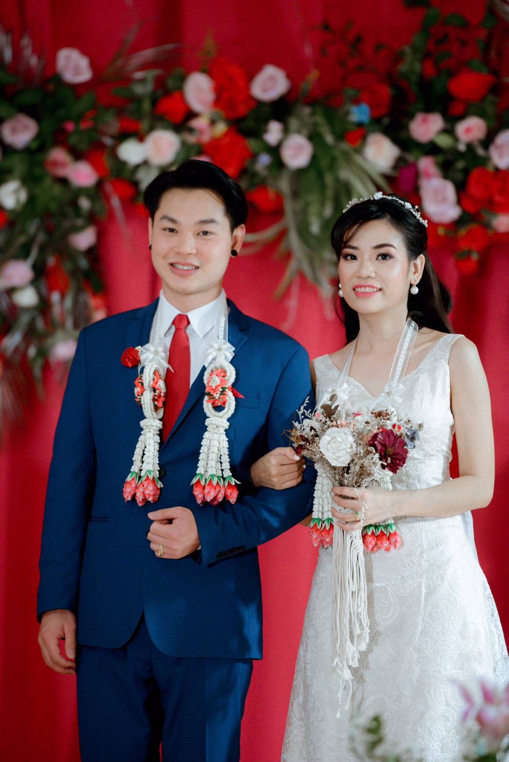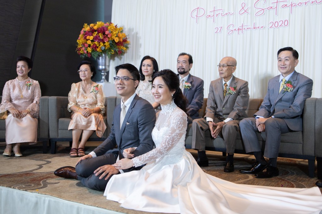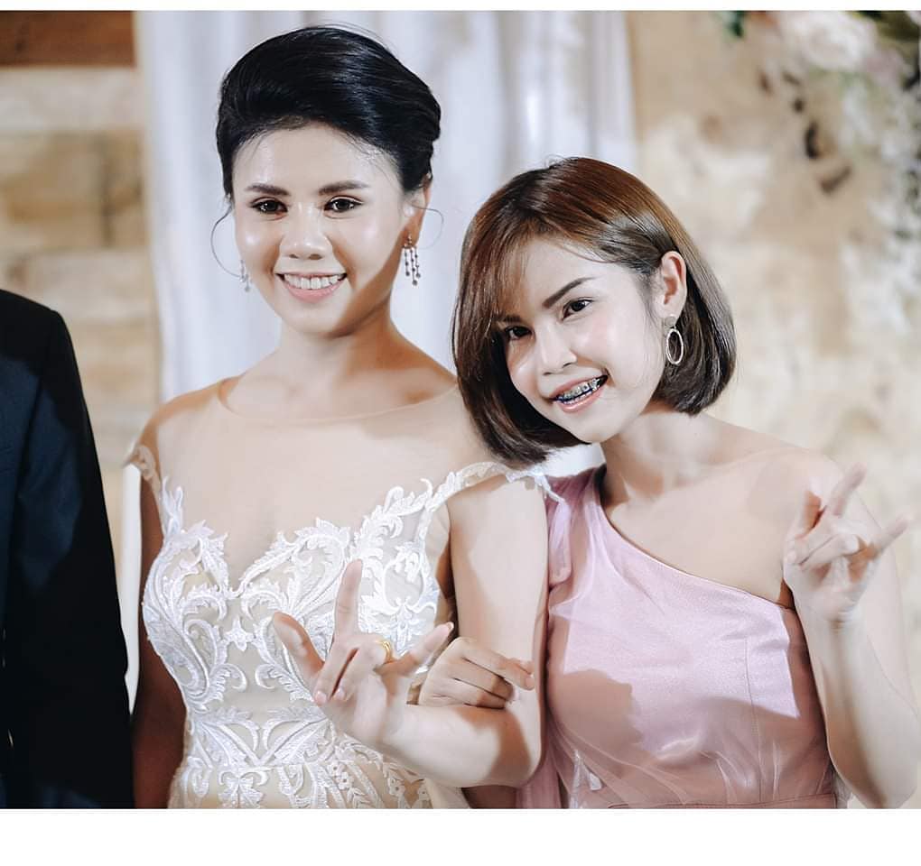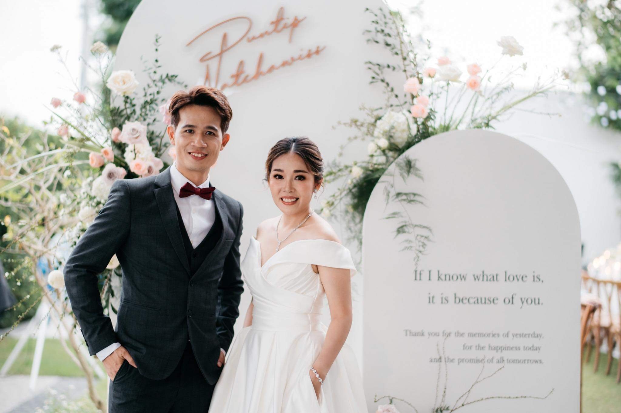 Khun Nok: Pastel pink engagement dress & Reception chiffon dress