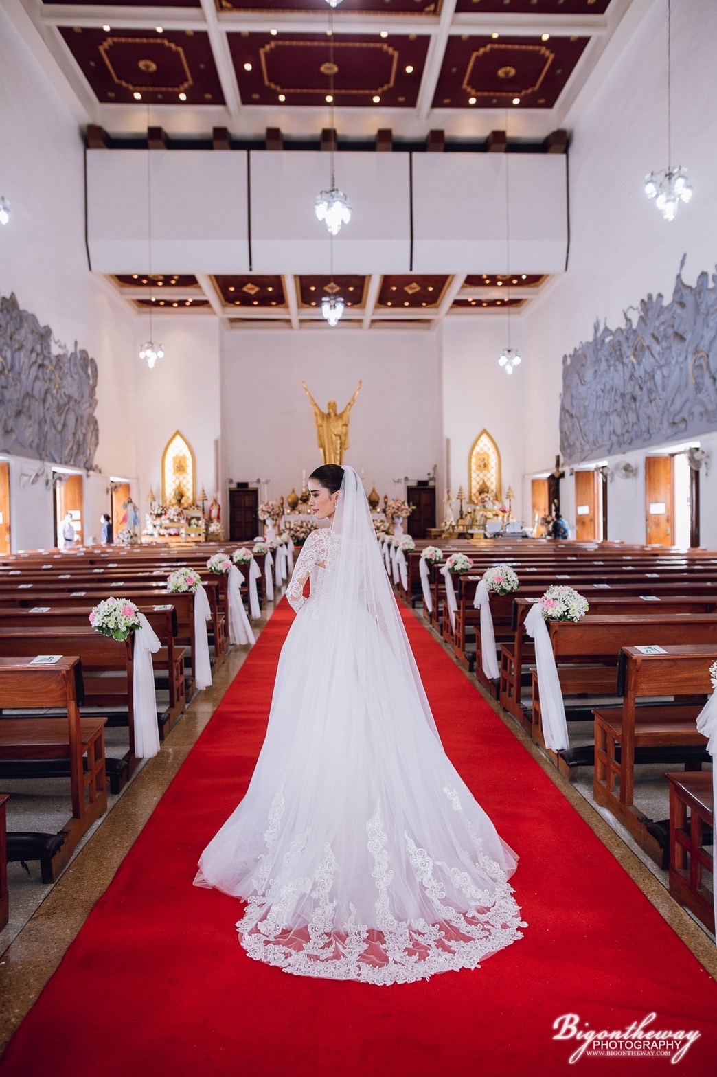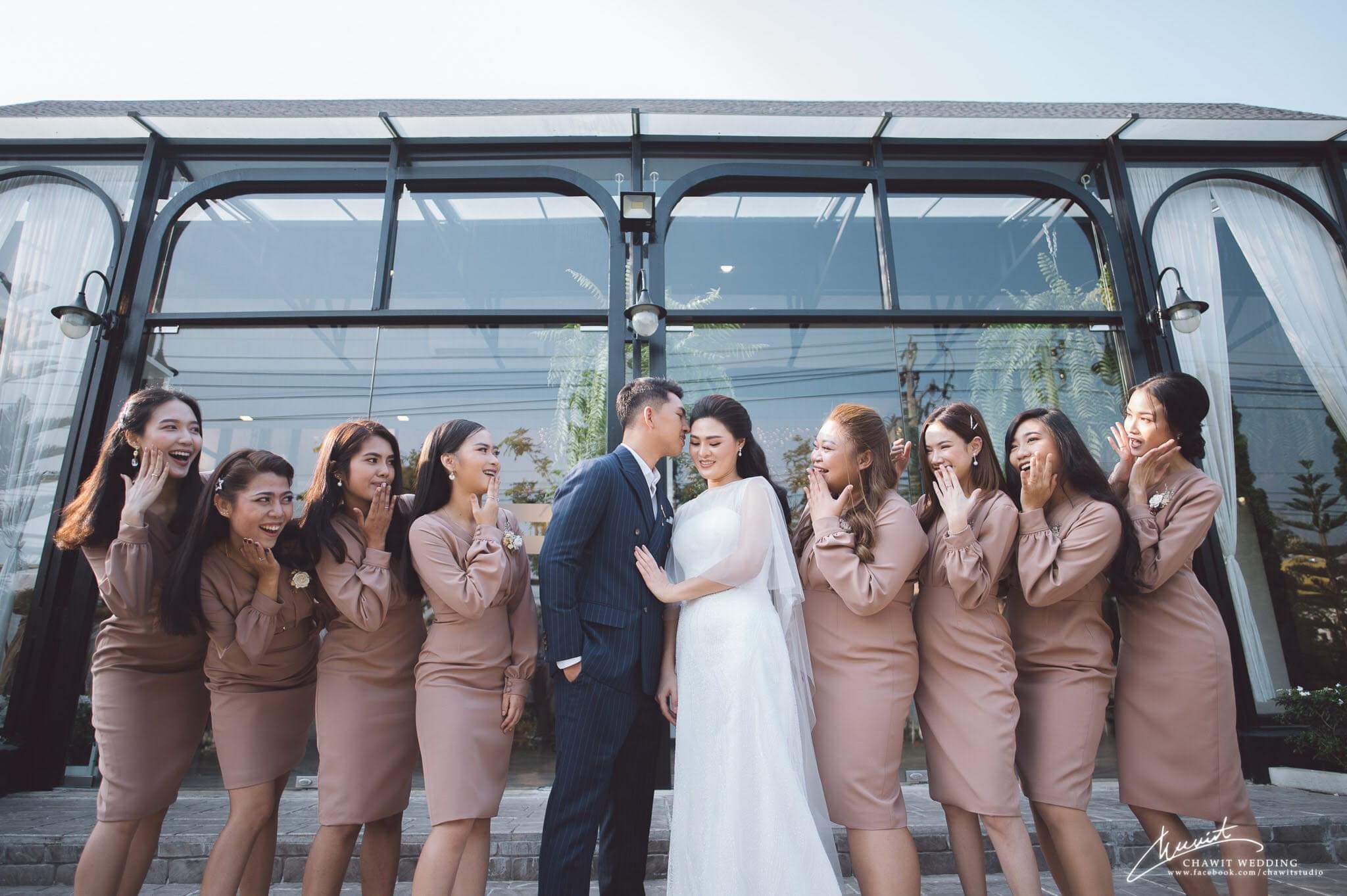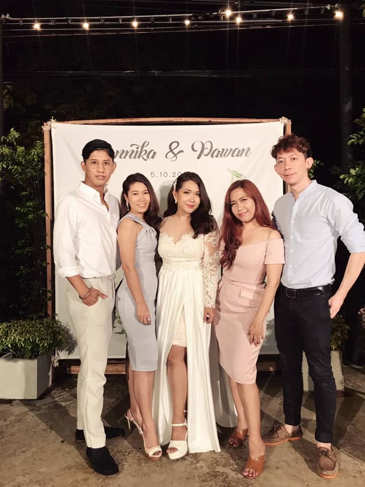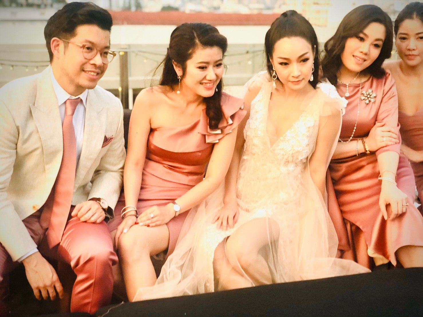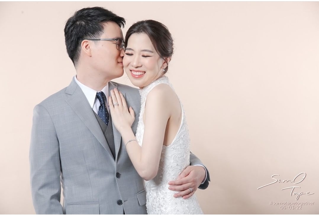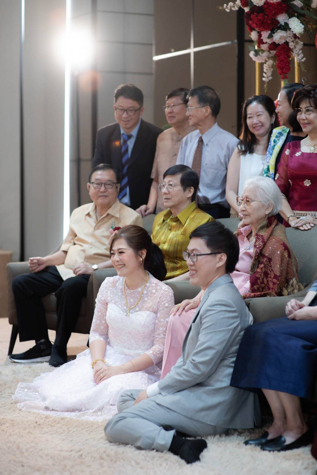 Khun Nok: Pastel pink engagement dress & Reception chiffon dress