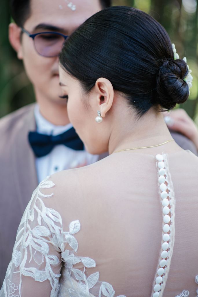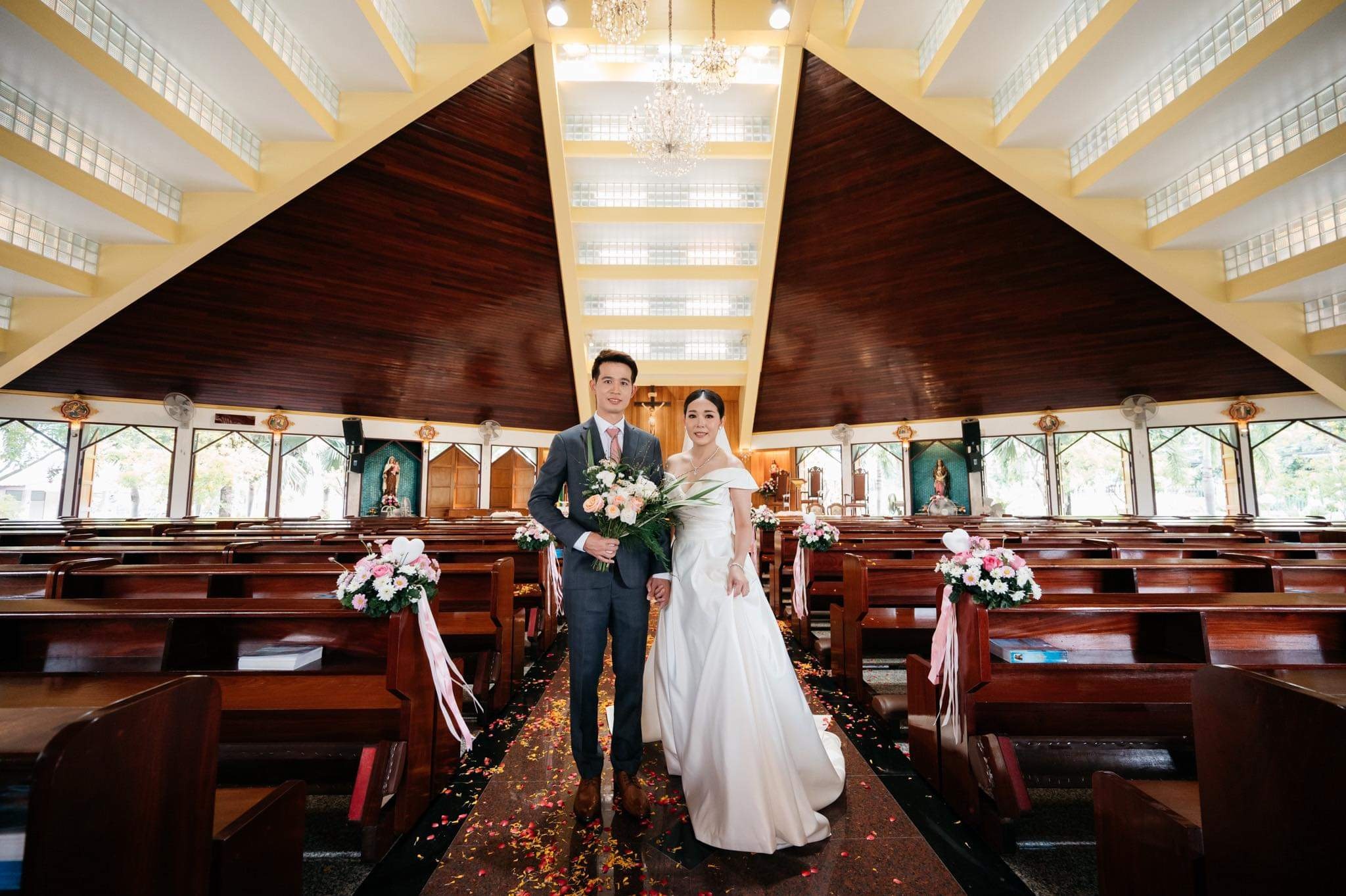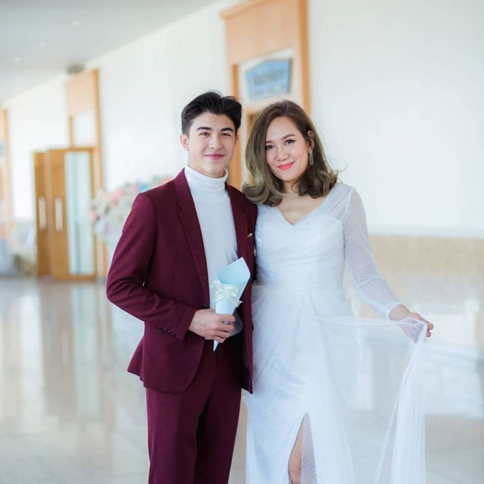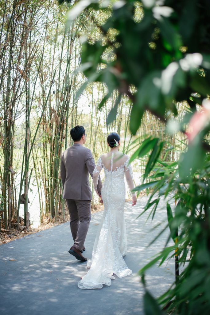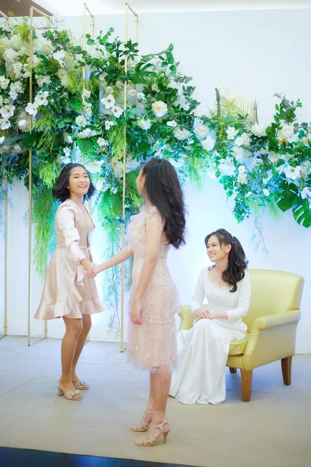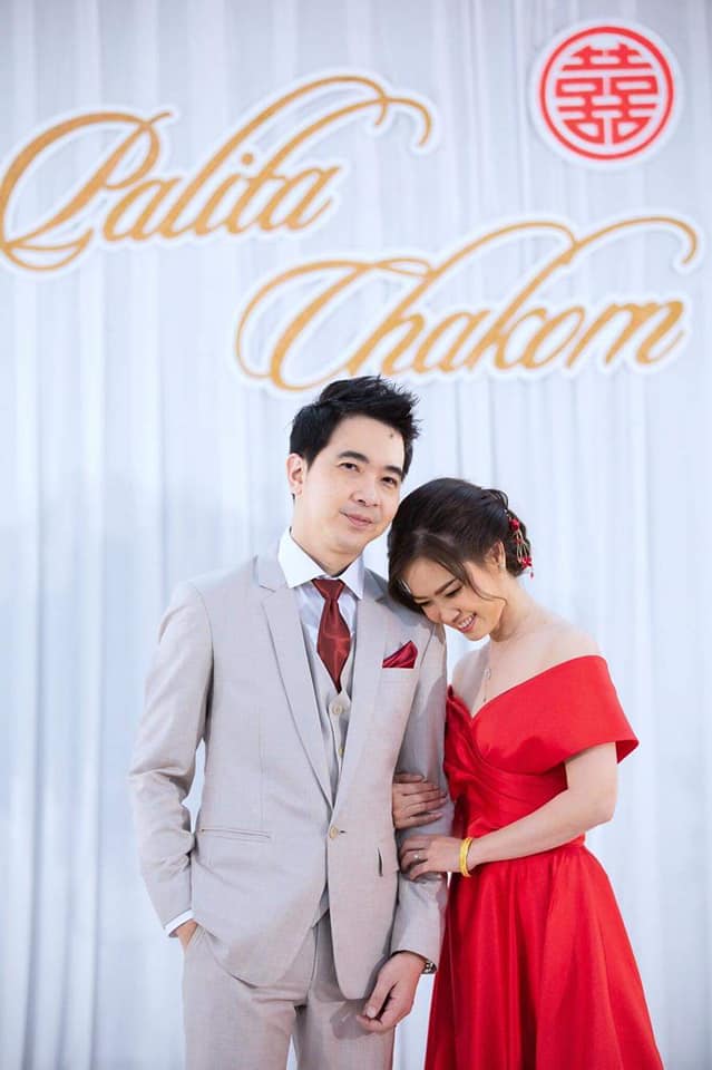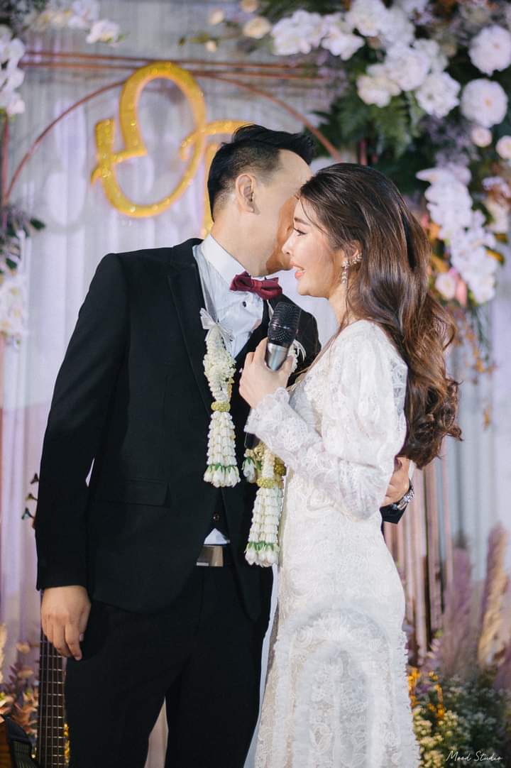 Khun Nok: Pastel pink engagement dress & Reception chiffon dress