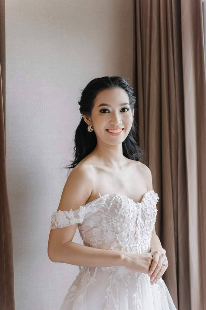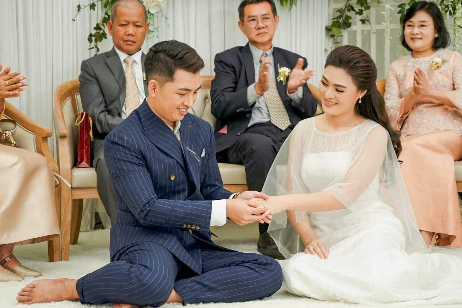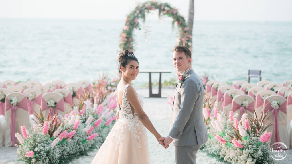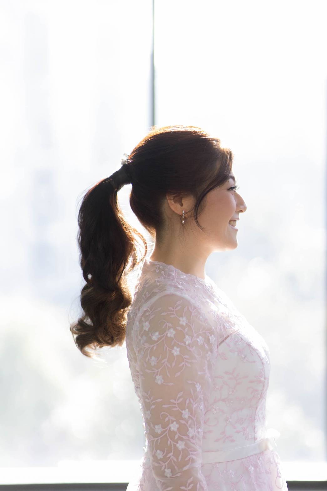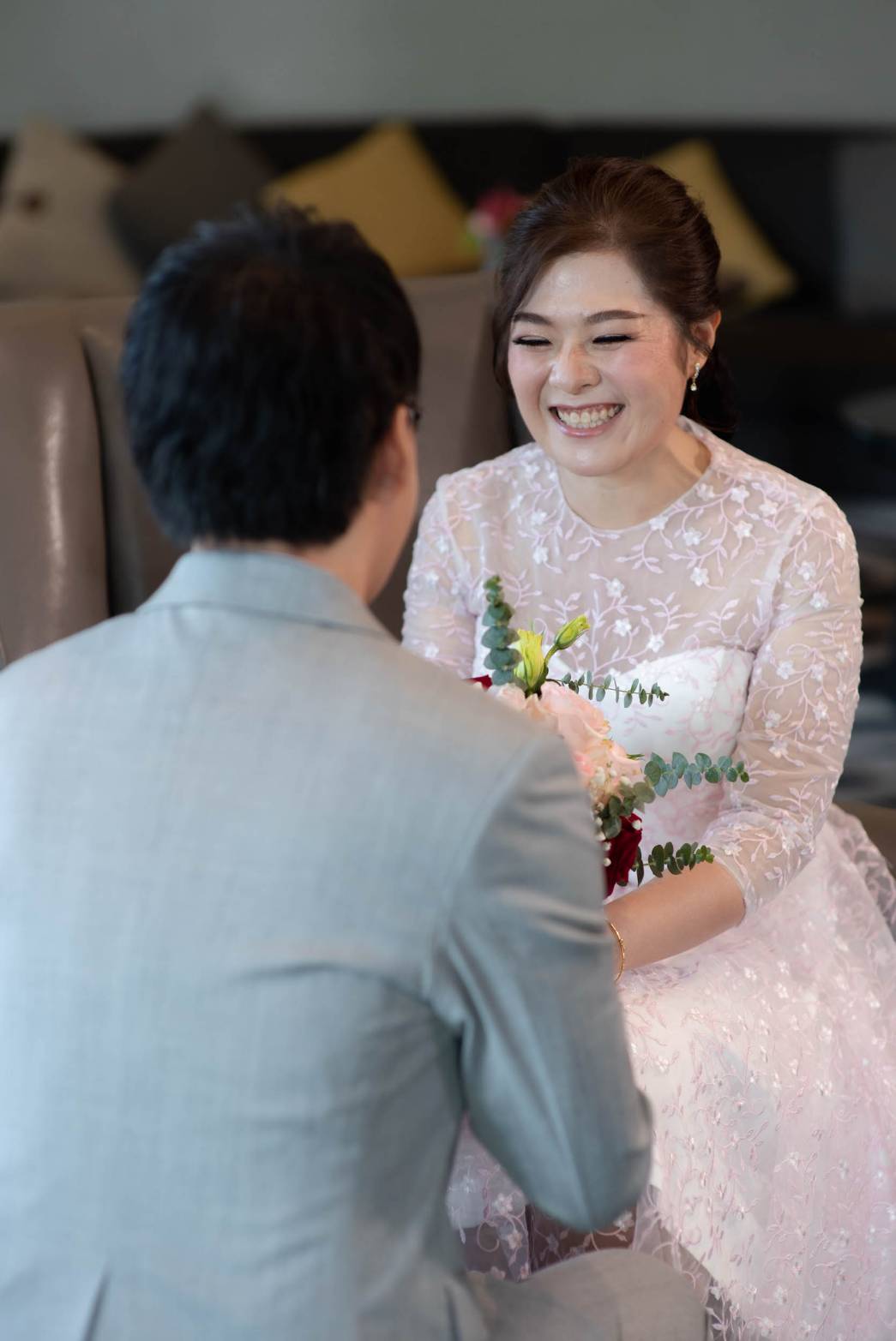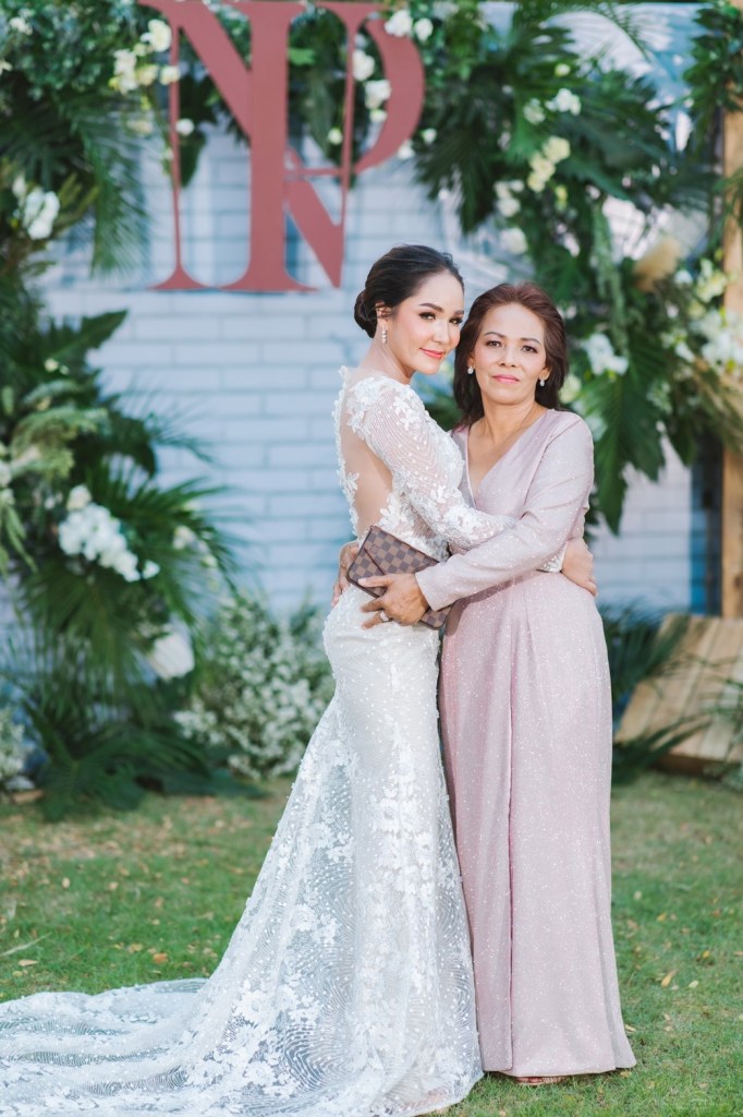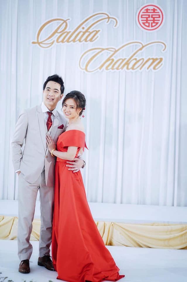 Khun Nok: Pastel pink engagement dress & Reception chiffon dress
