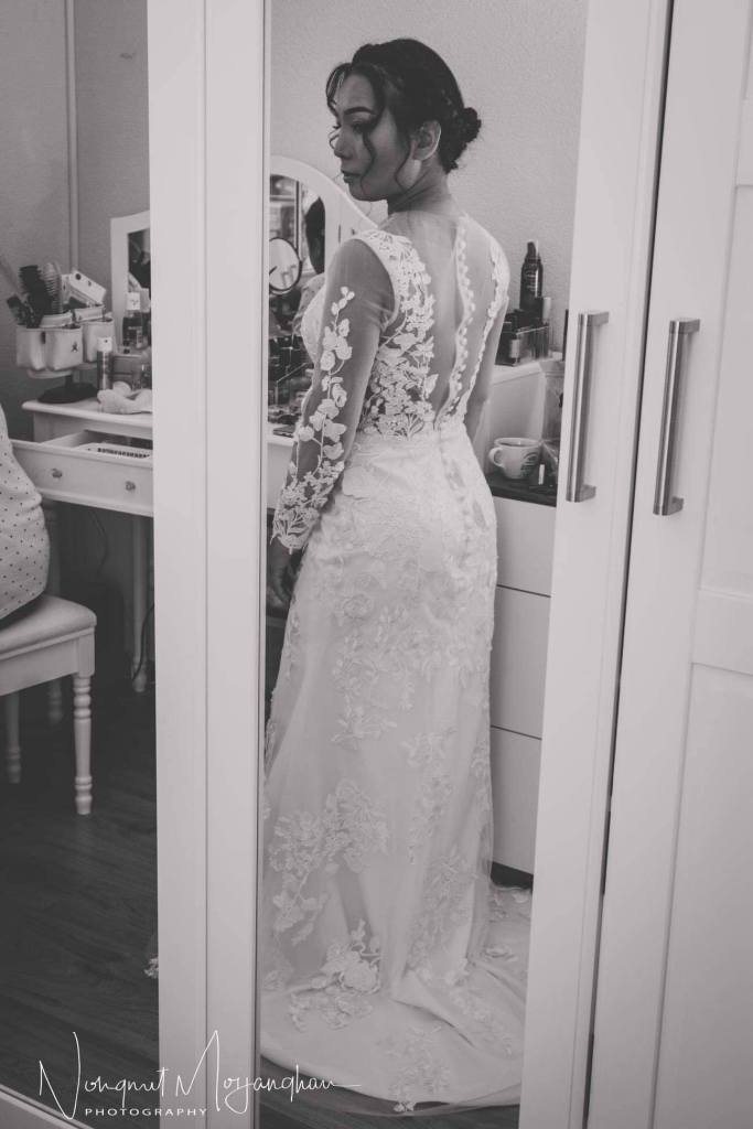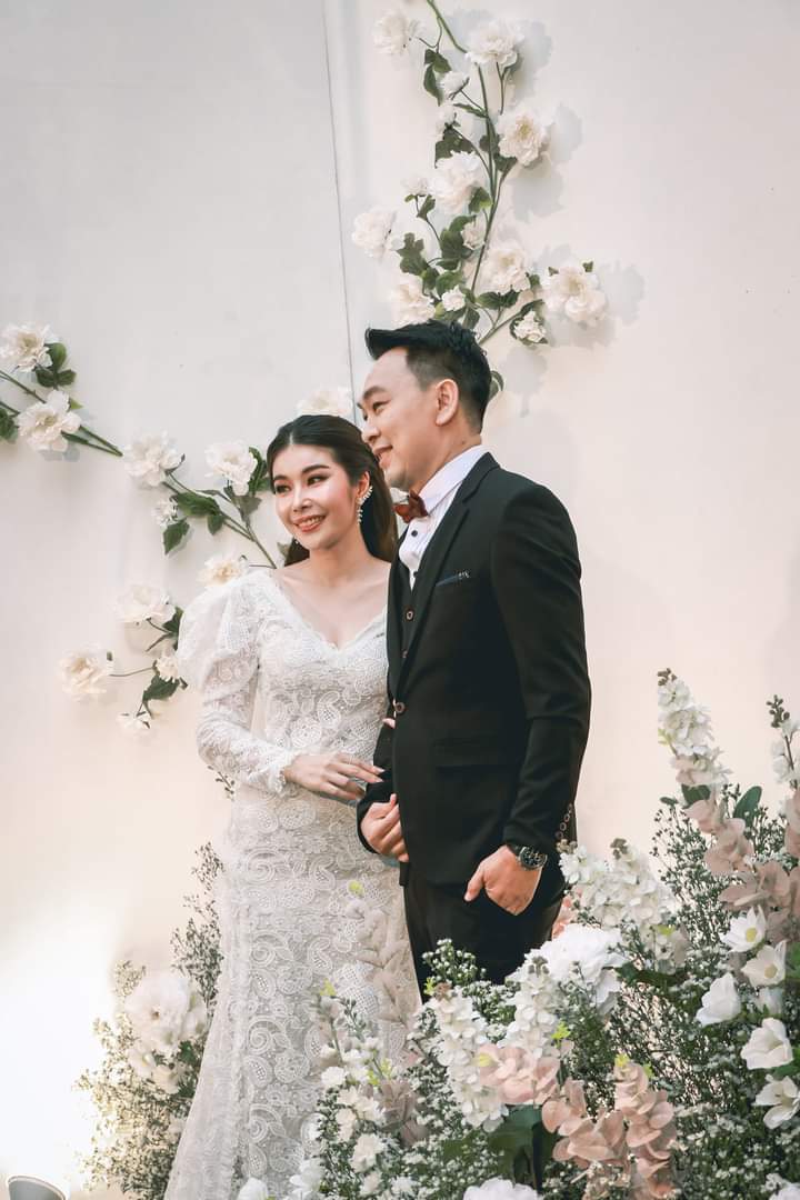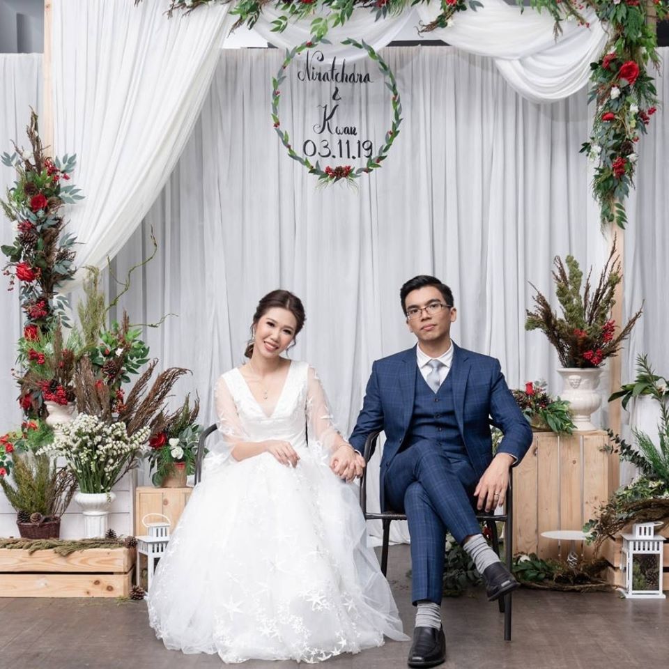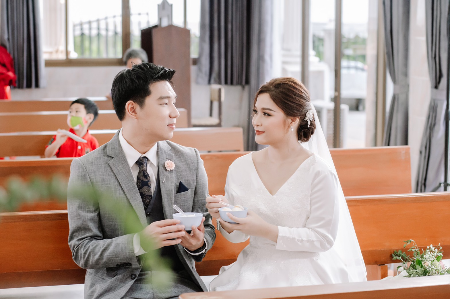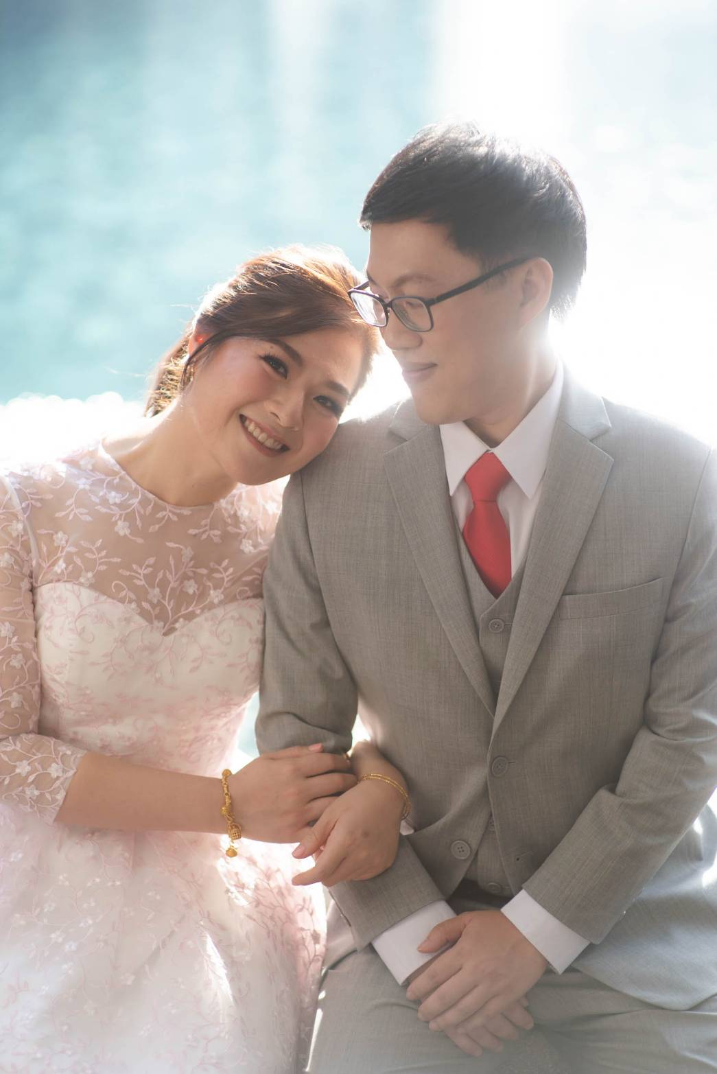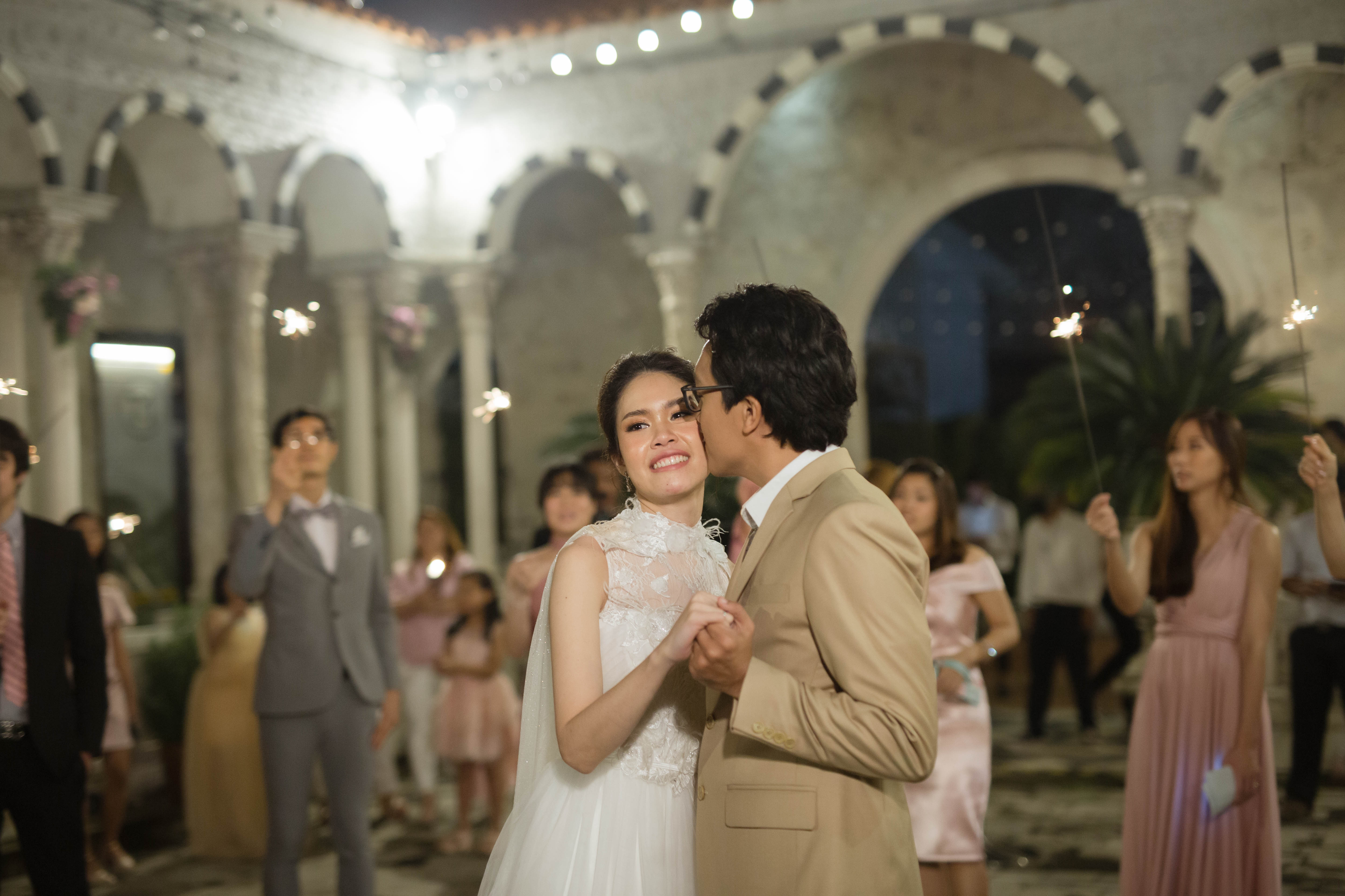Khun Nok: Pastel pink engagement dress & Reception chiffon dress