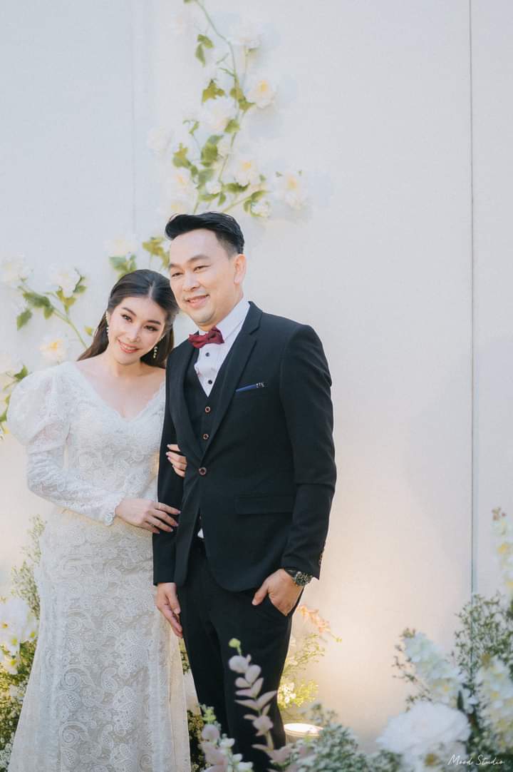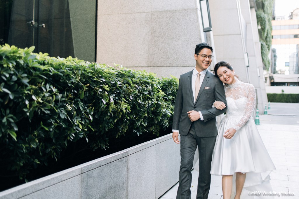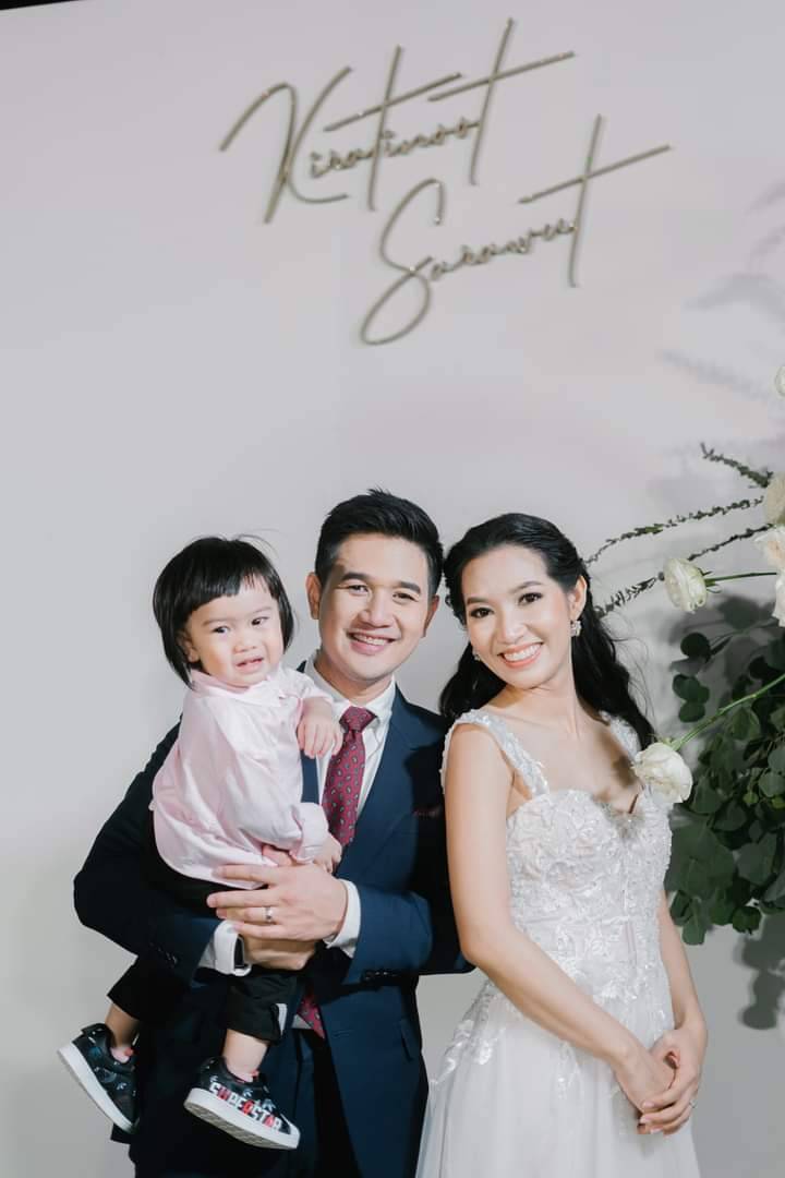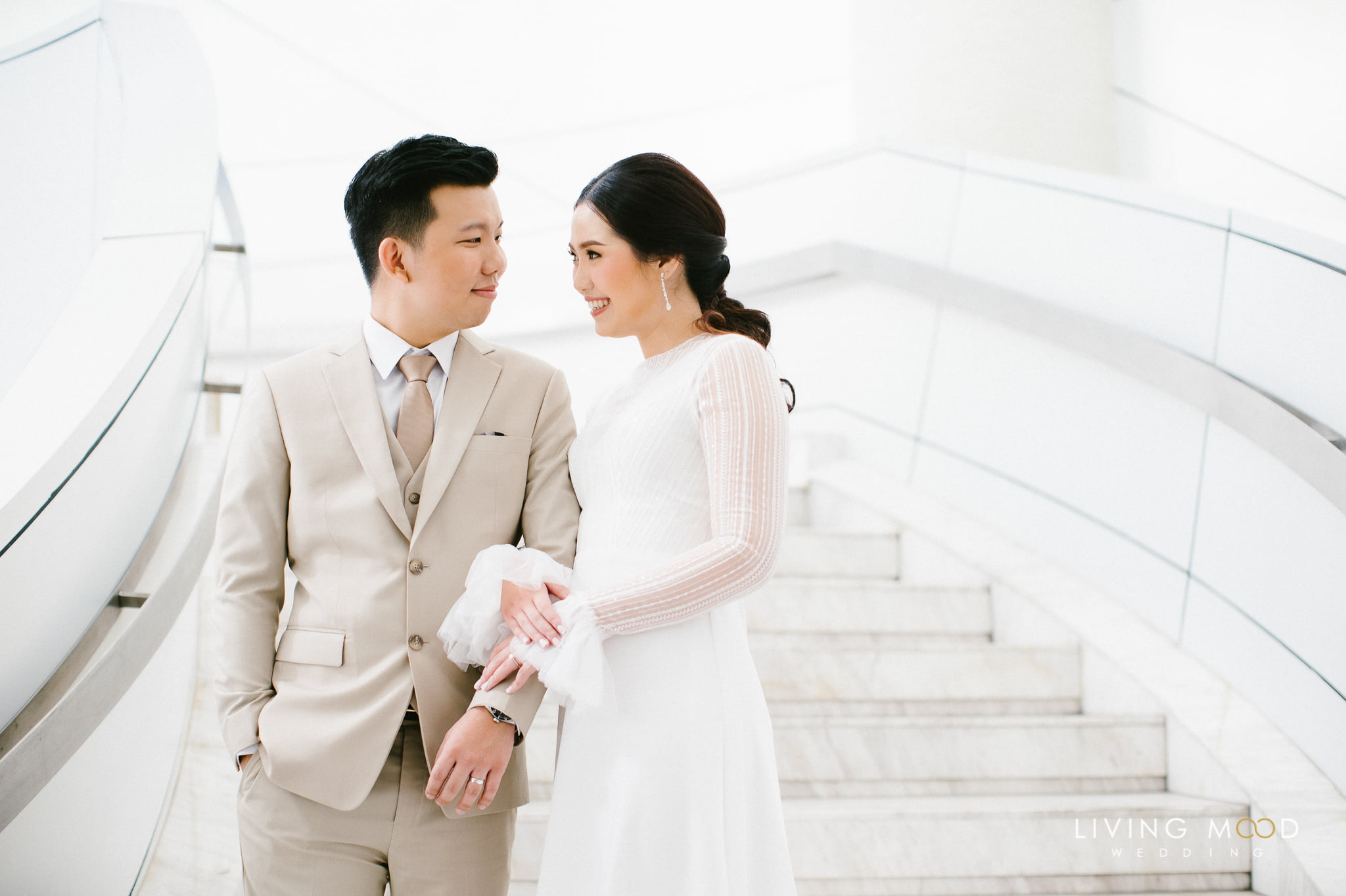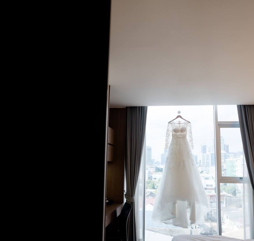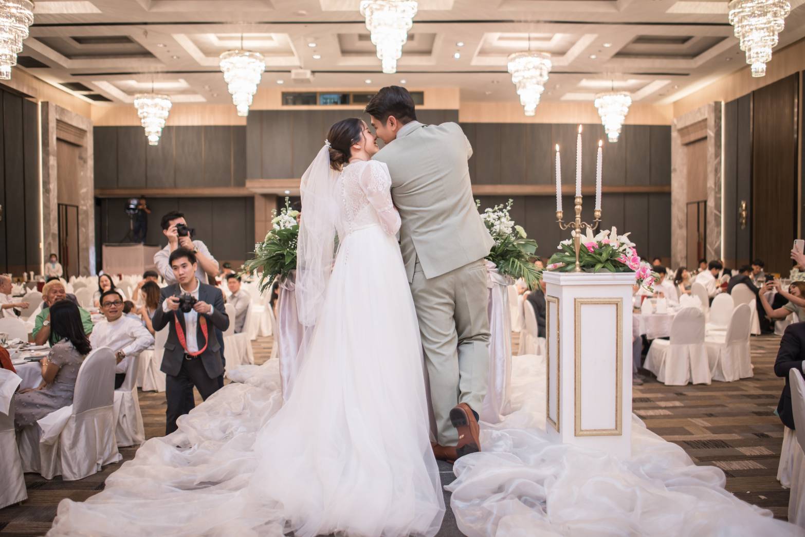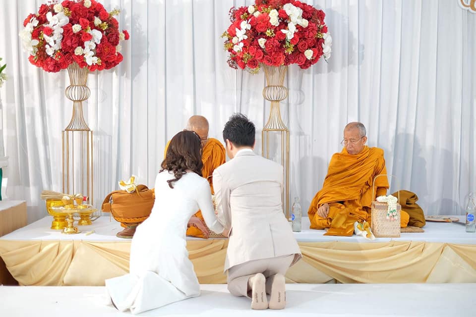 Khun Nok: Pastel pink engagement dress & Reception chiffon dress