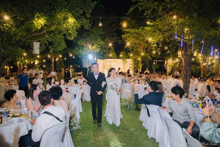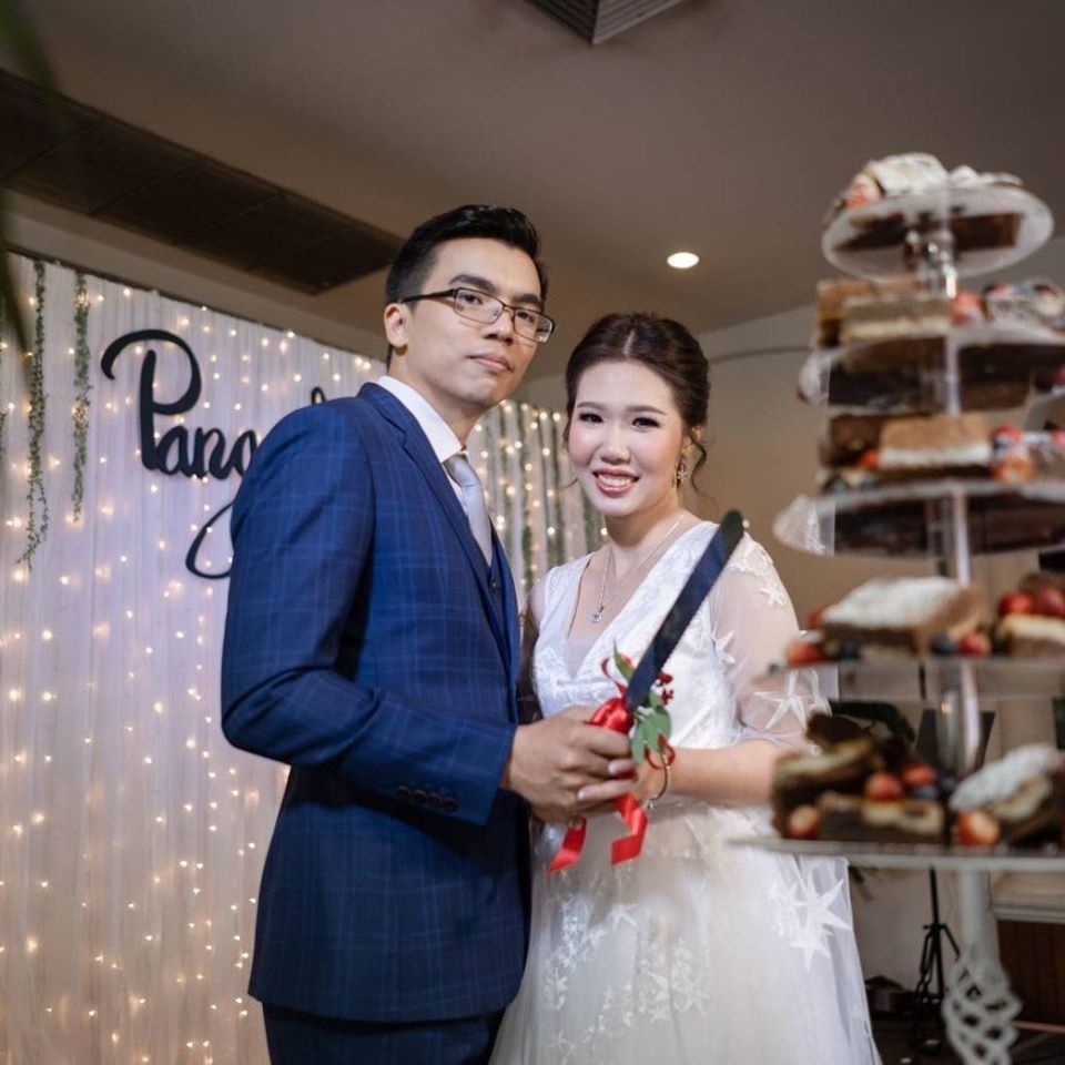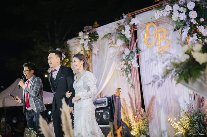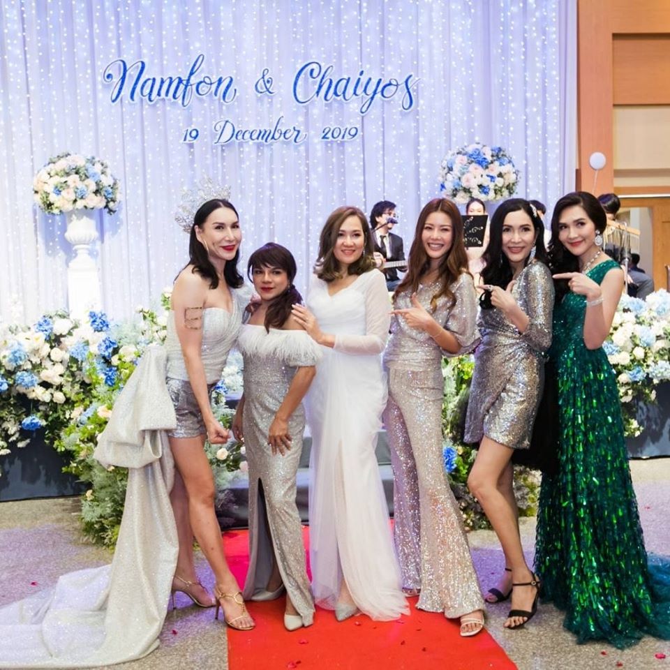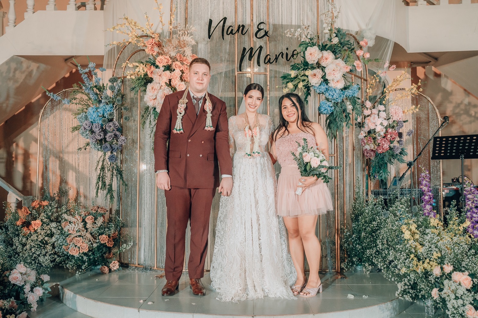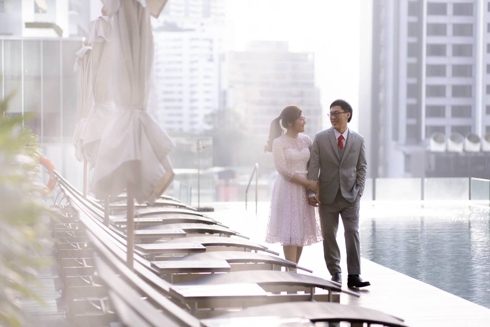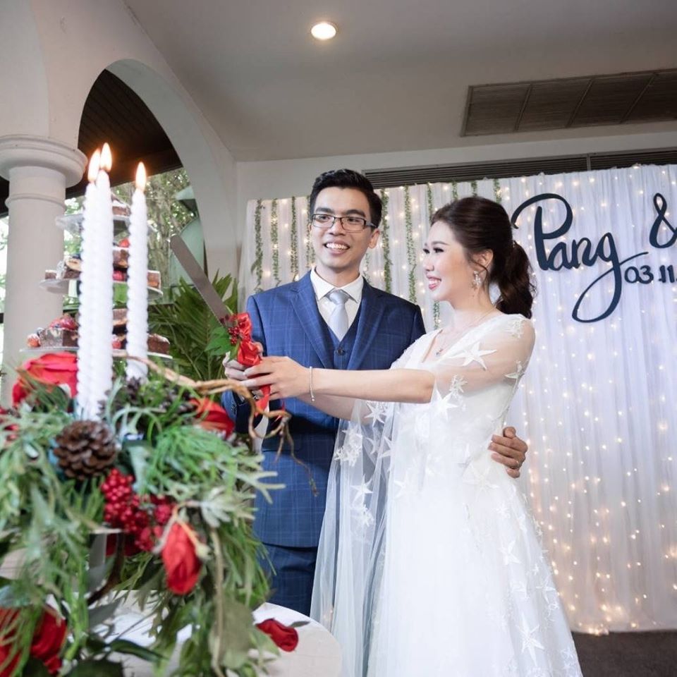 Khun Nok: Pastel pink engagement dress & Reception chiffon dress
