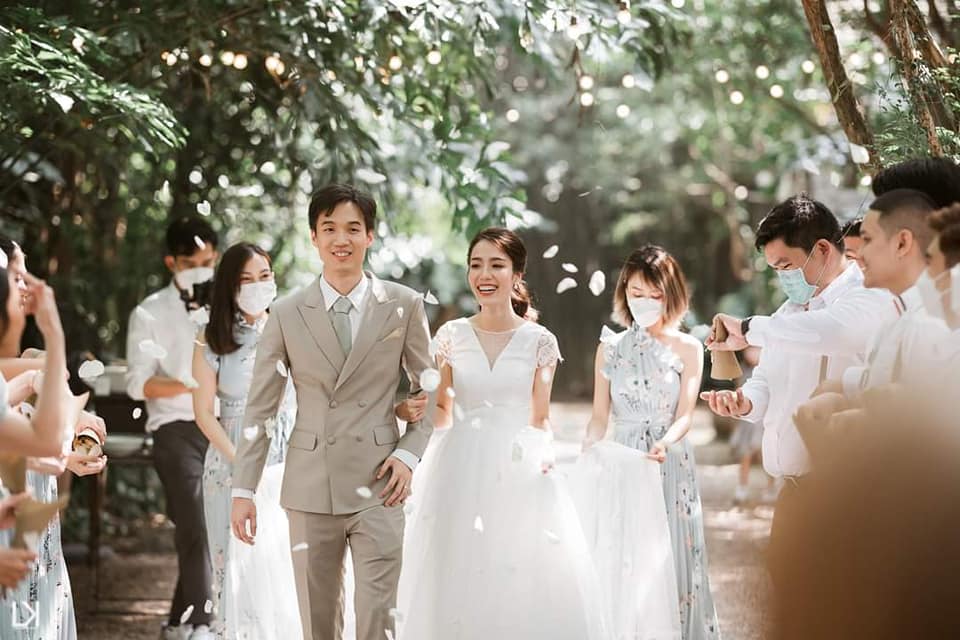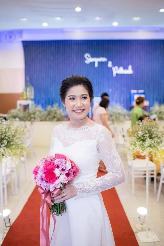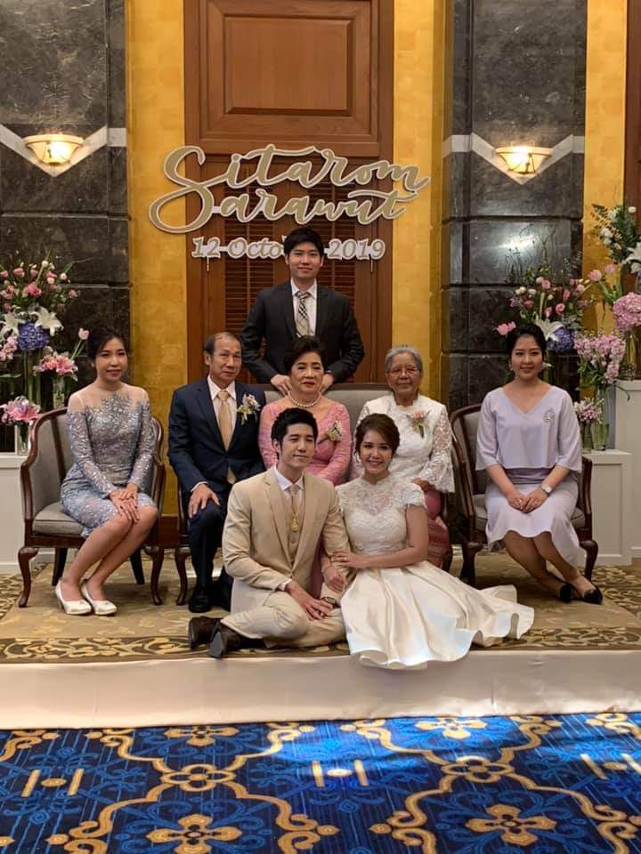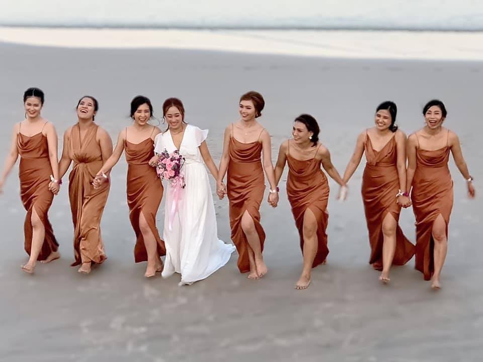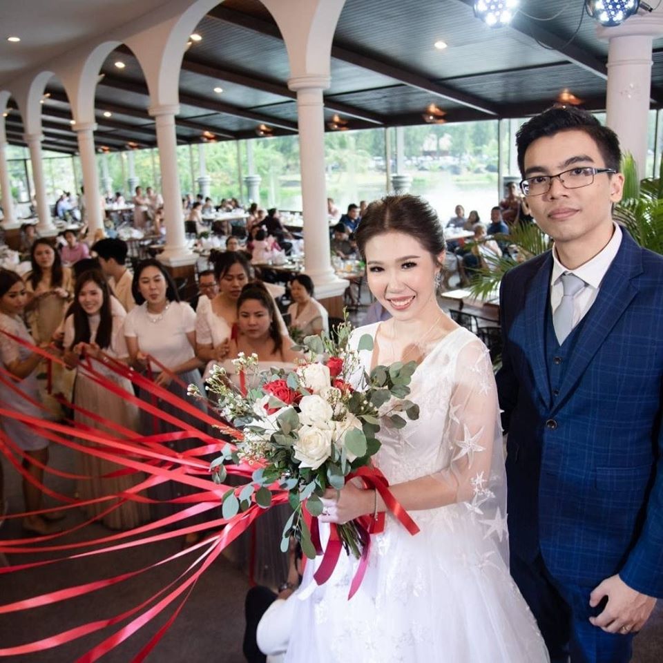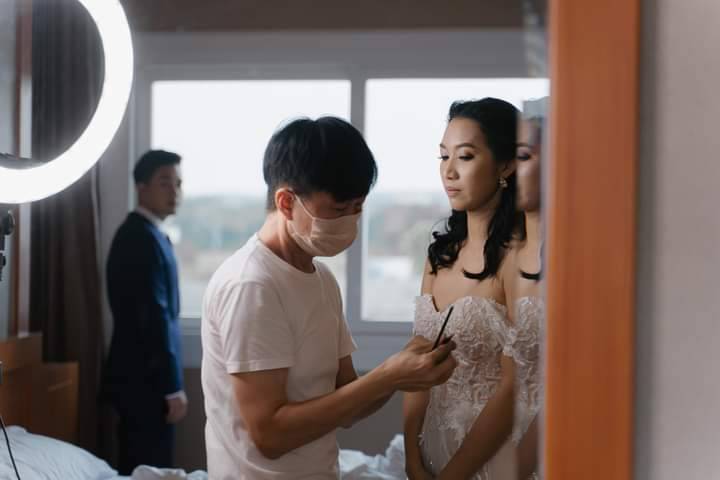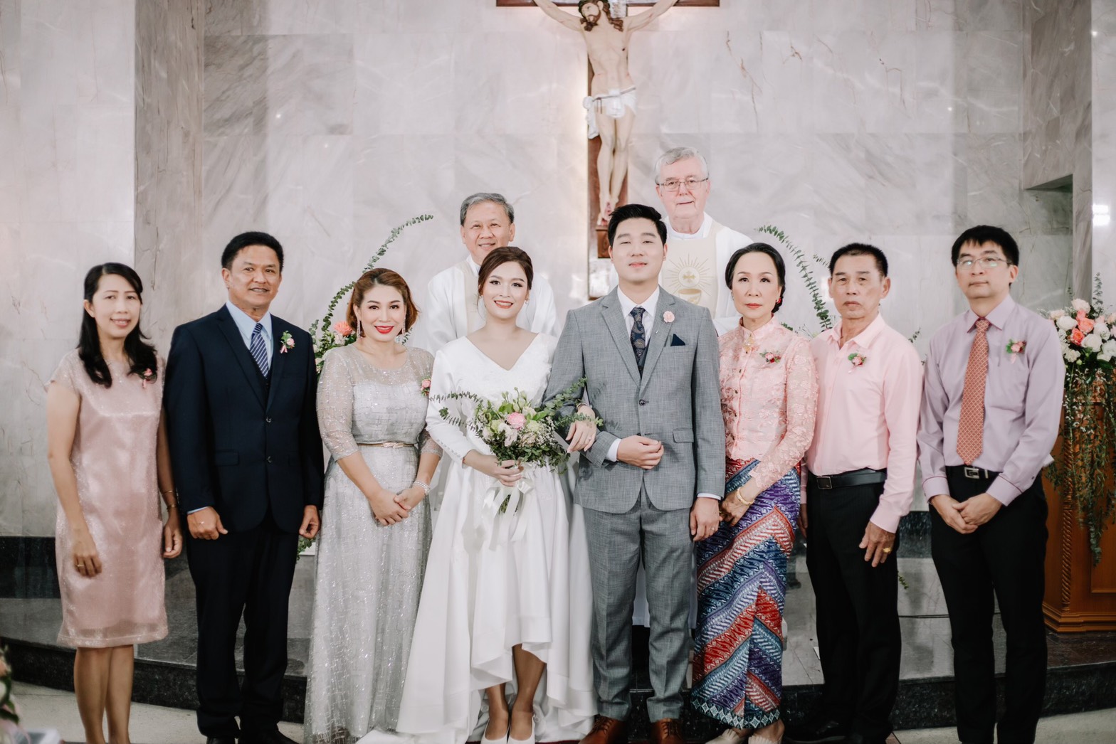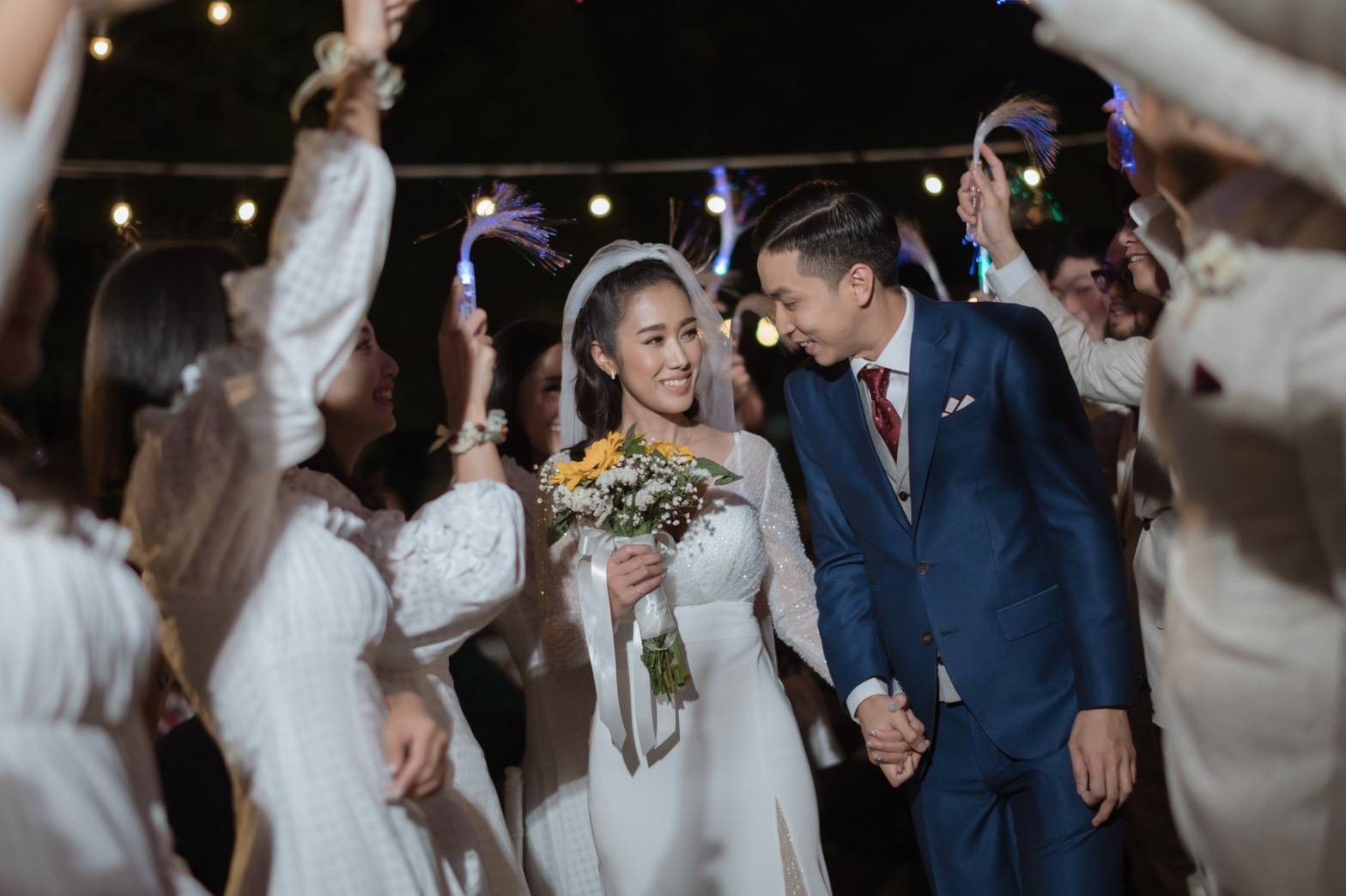 Khun Nok: Pastel pink engagement dress & Reception chiffon dress