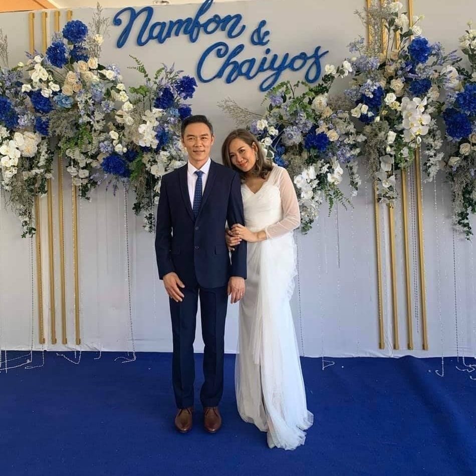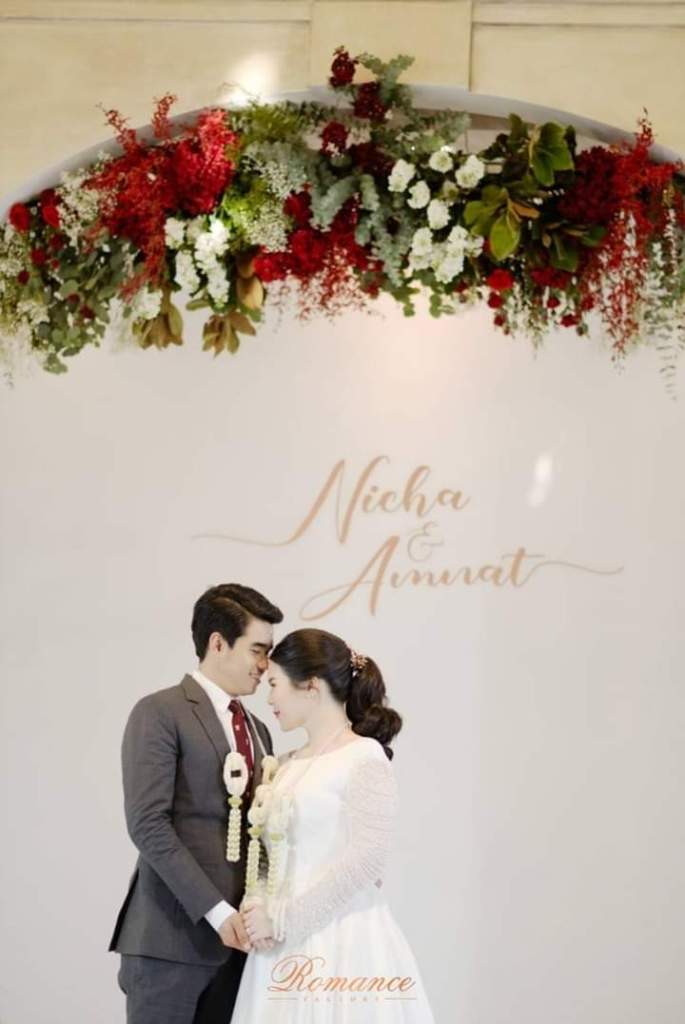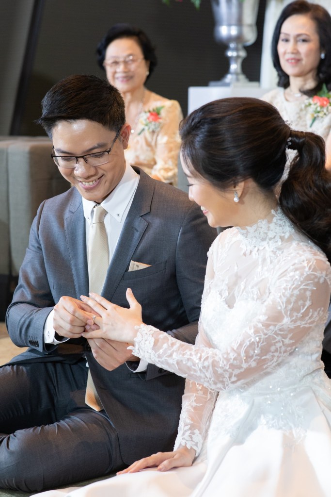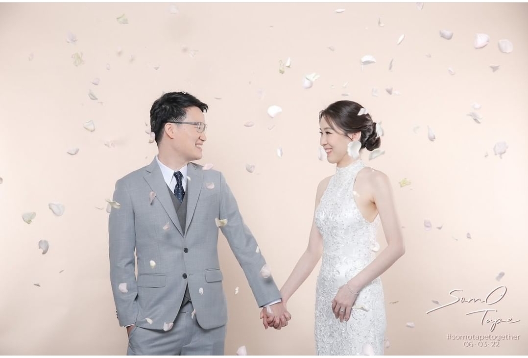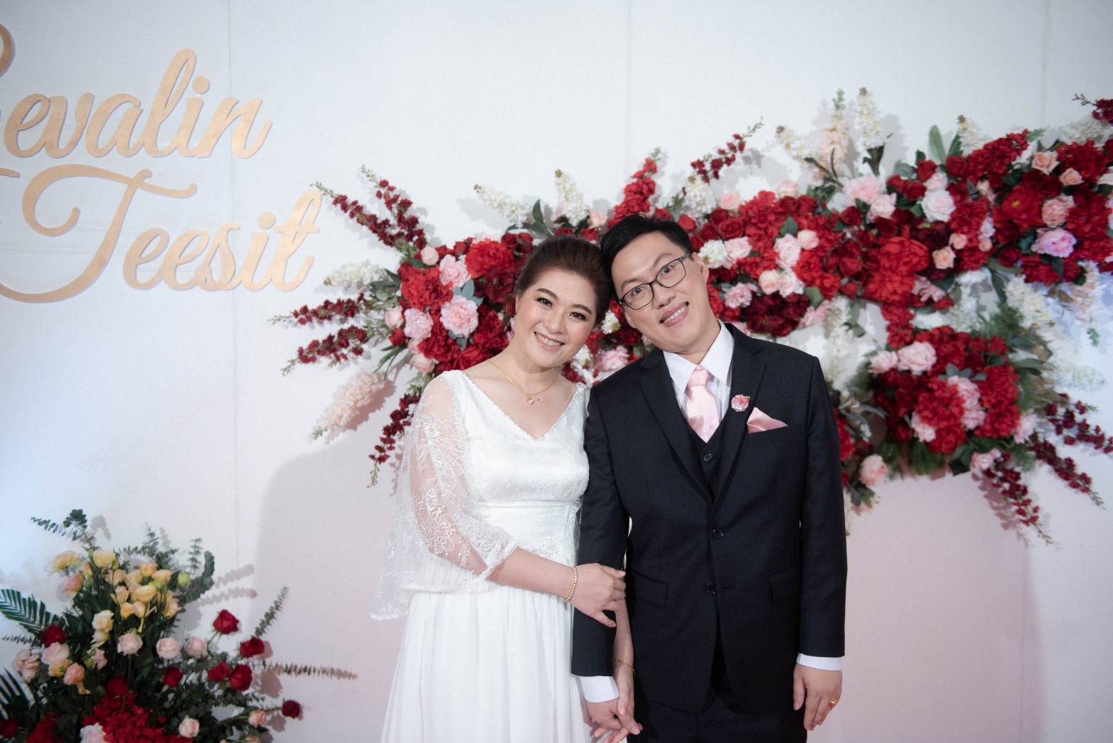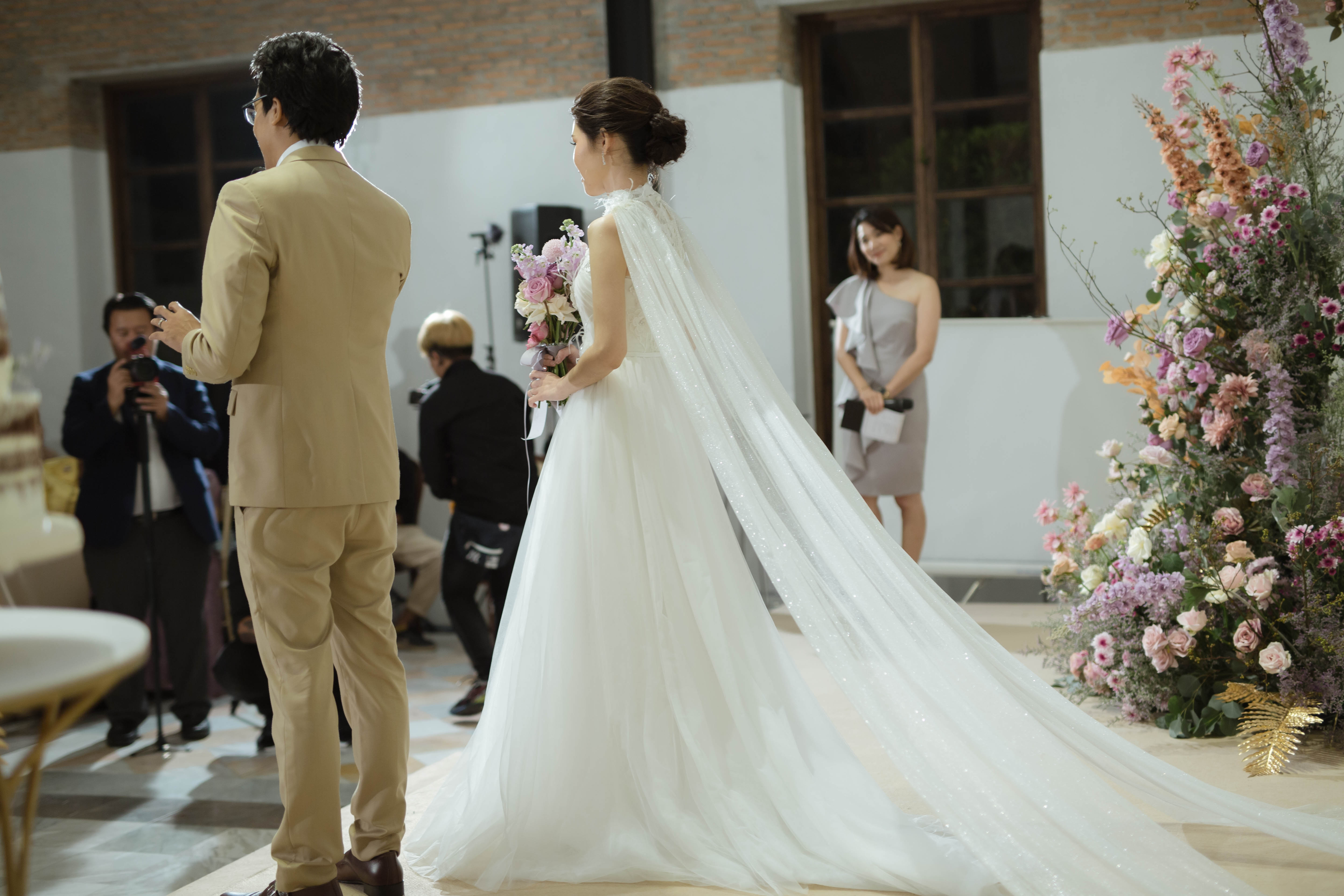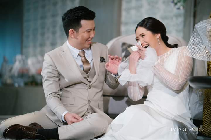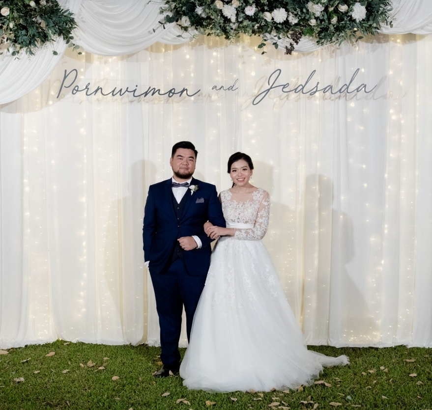 Khun Nok: Pastel pink engagement dress & Reception chiffon dress