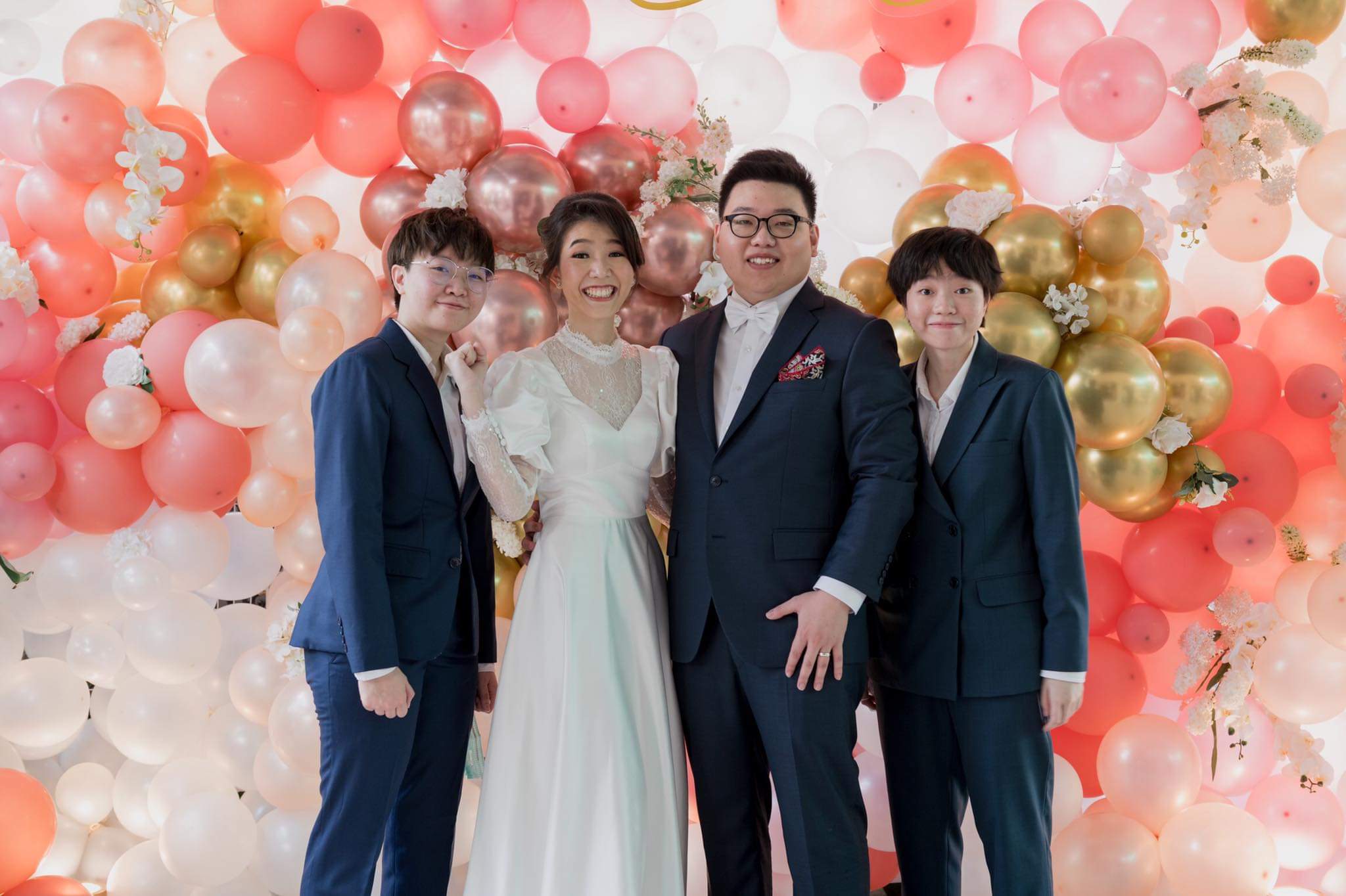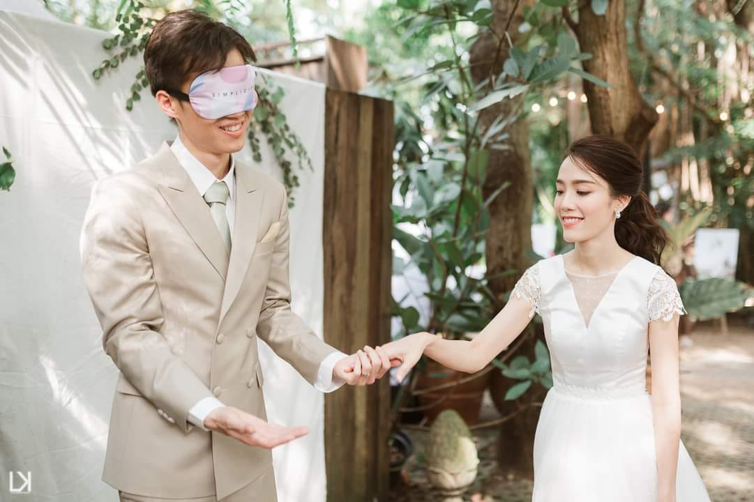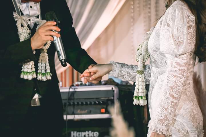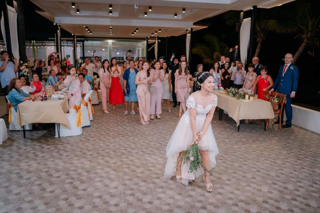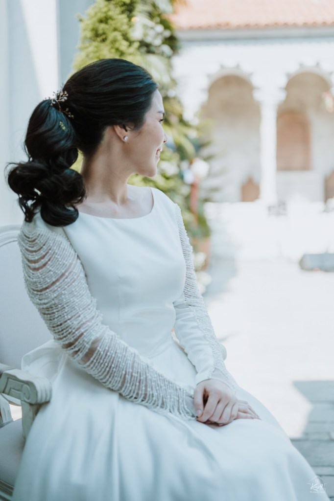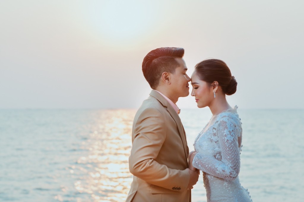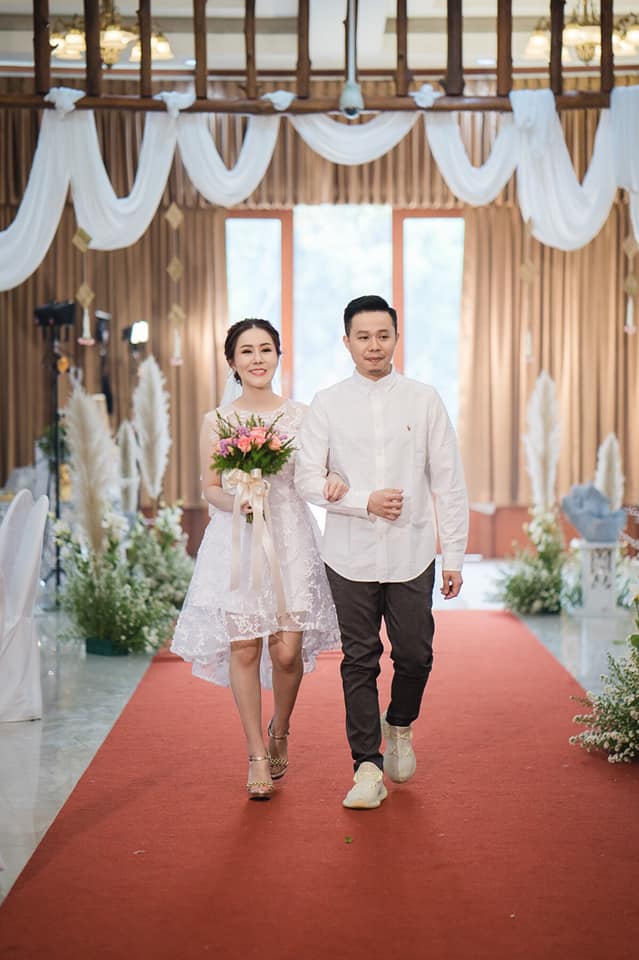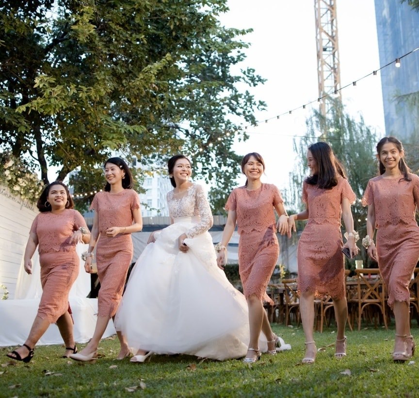 Khun Nok: Pastel pink engagement dress & Reception chiffon dress