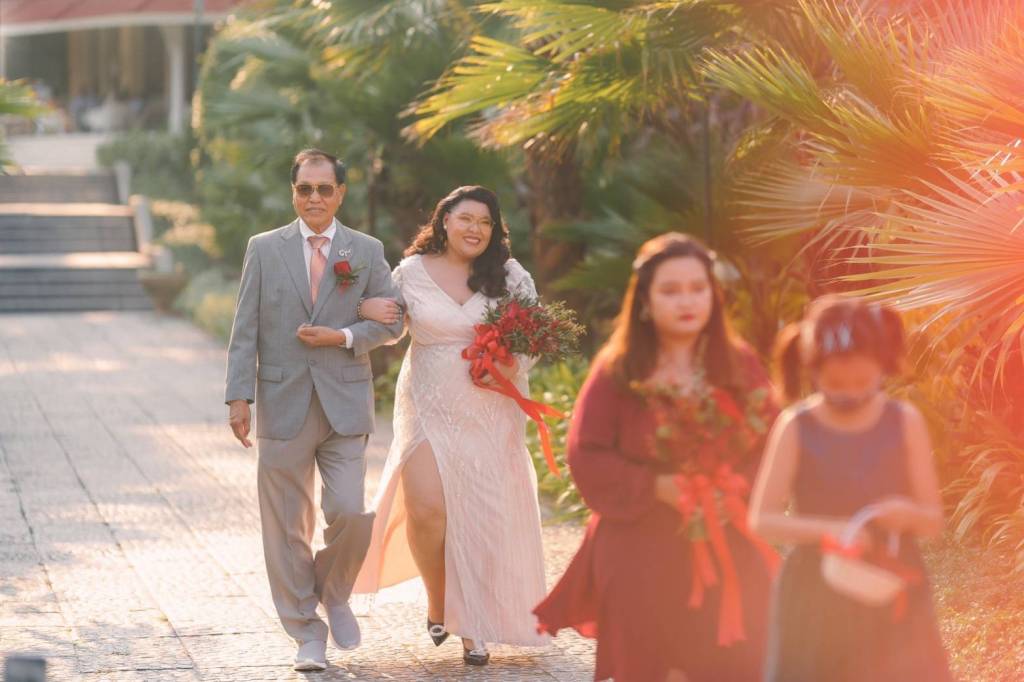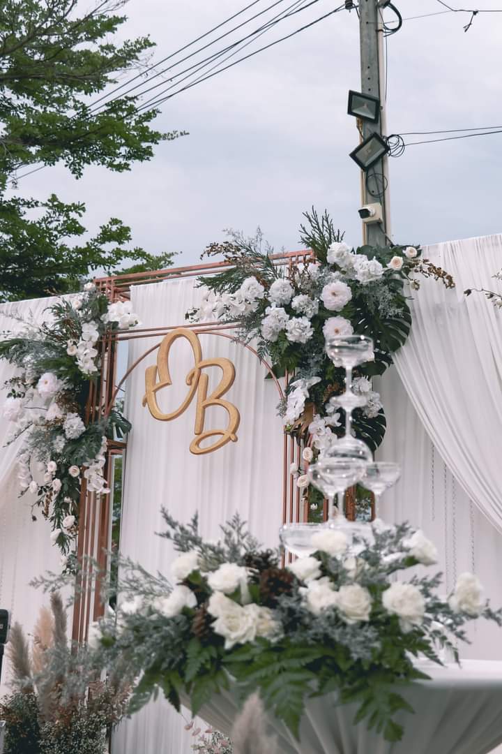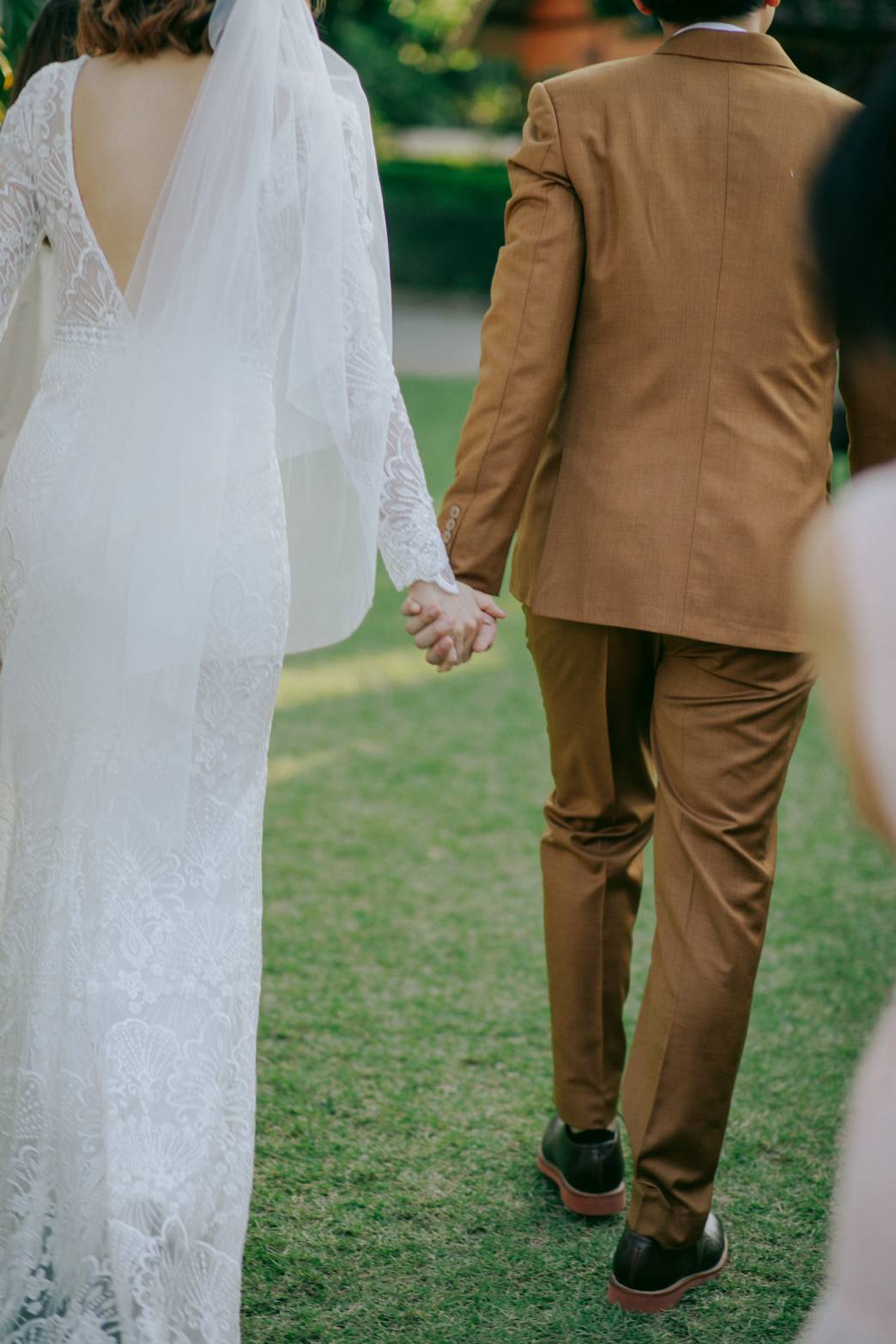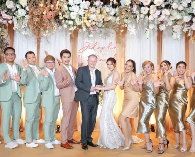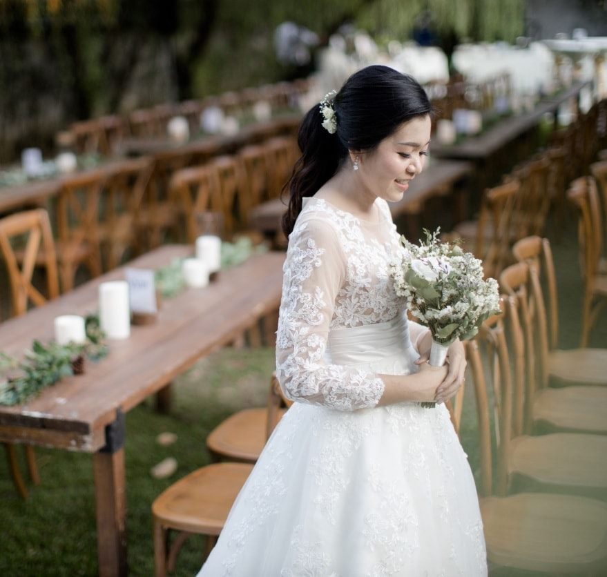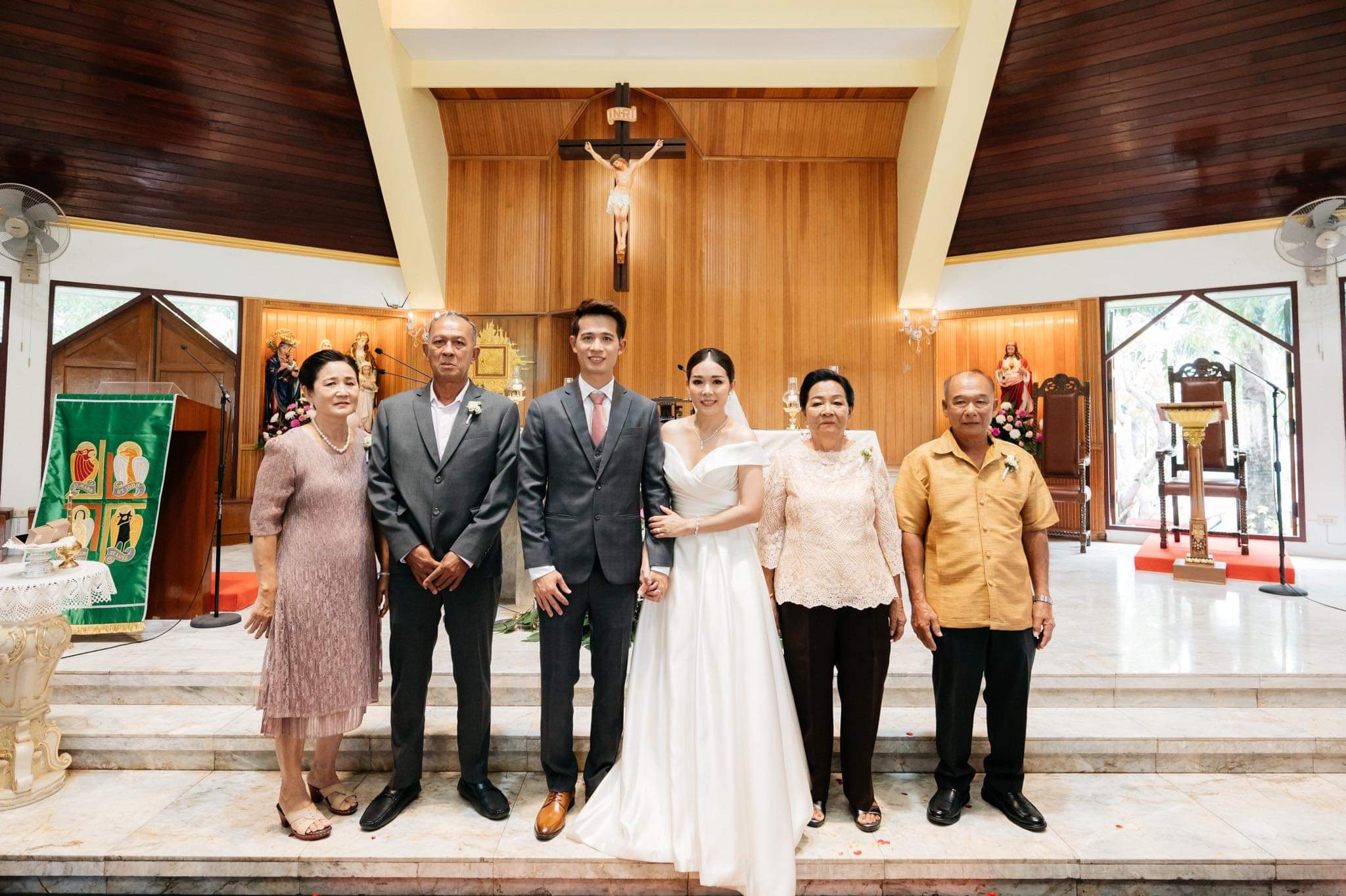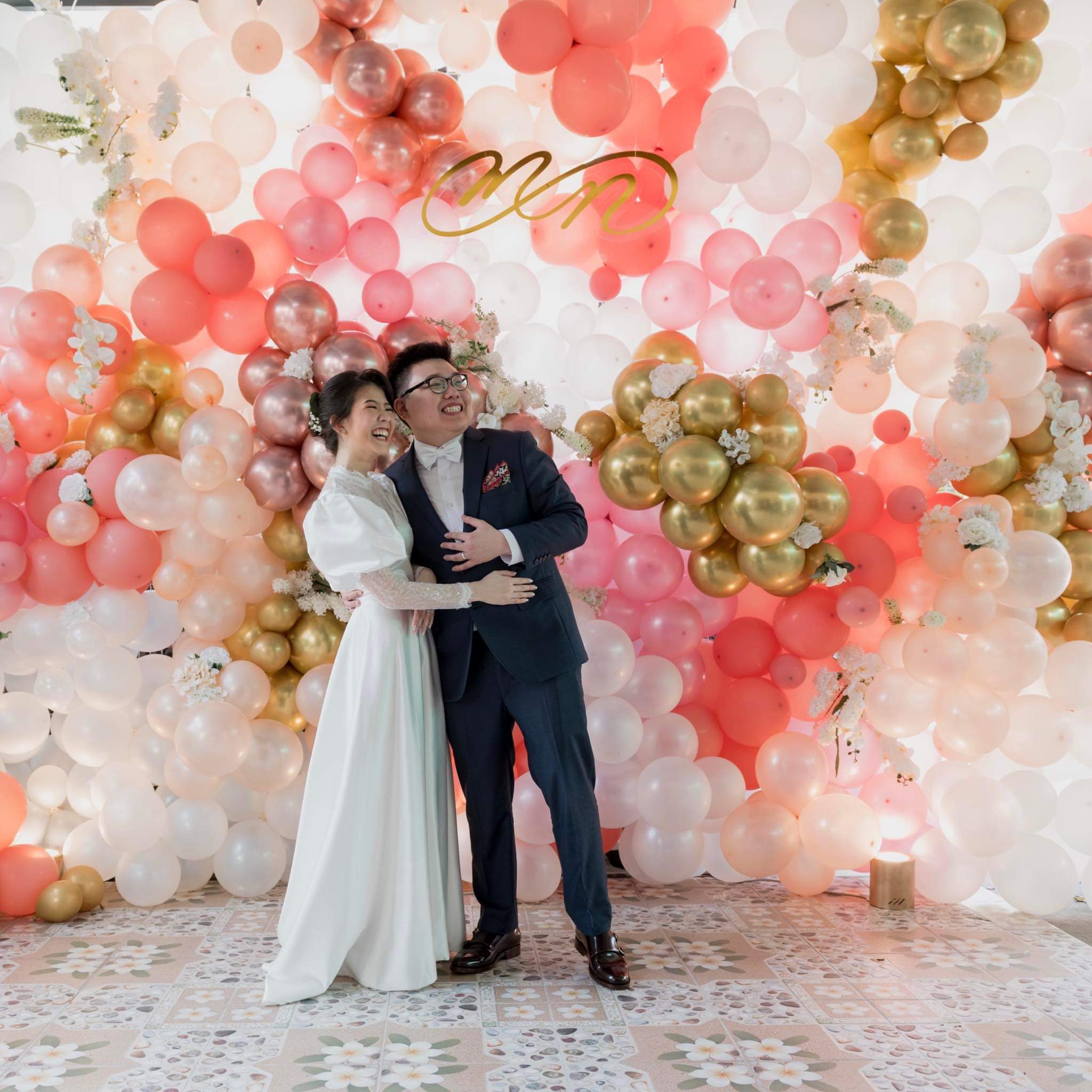 Khun Nok: Pastel pink engagement dress & Reception chiffon dress