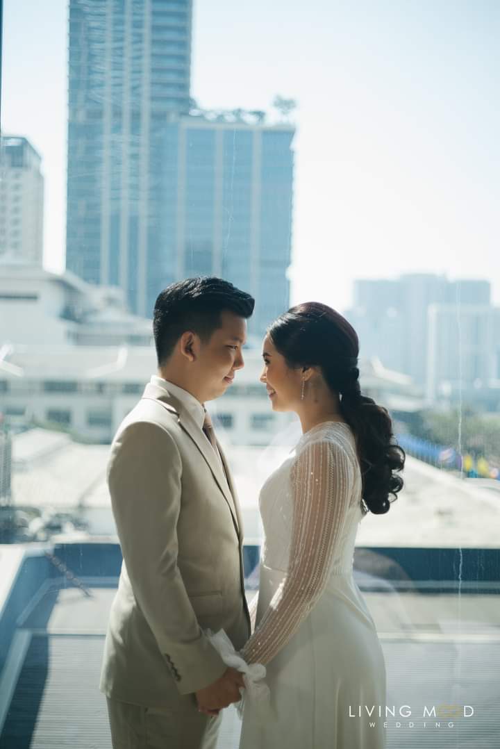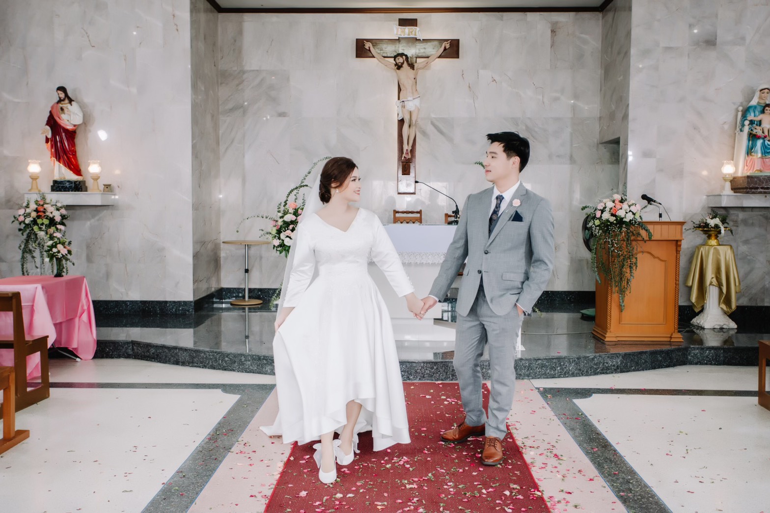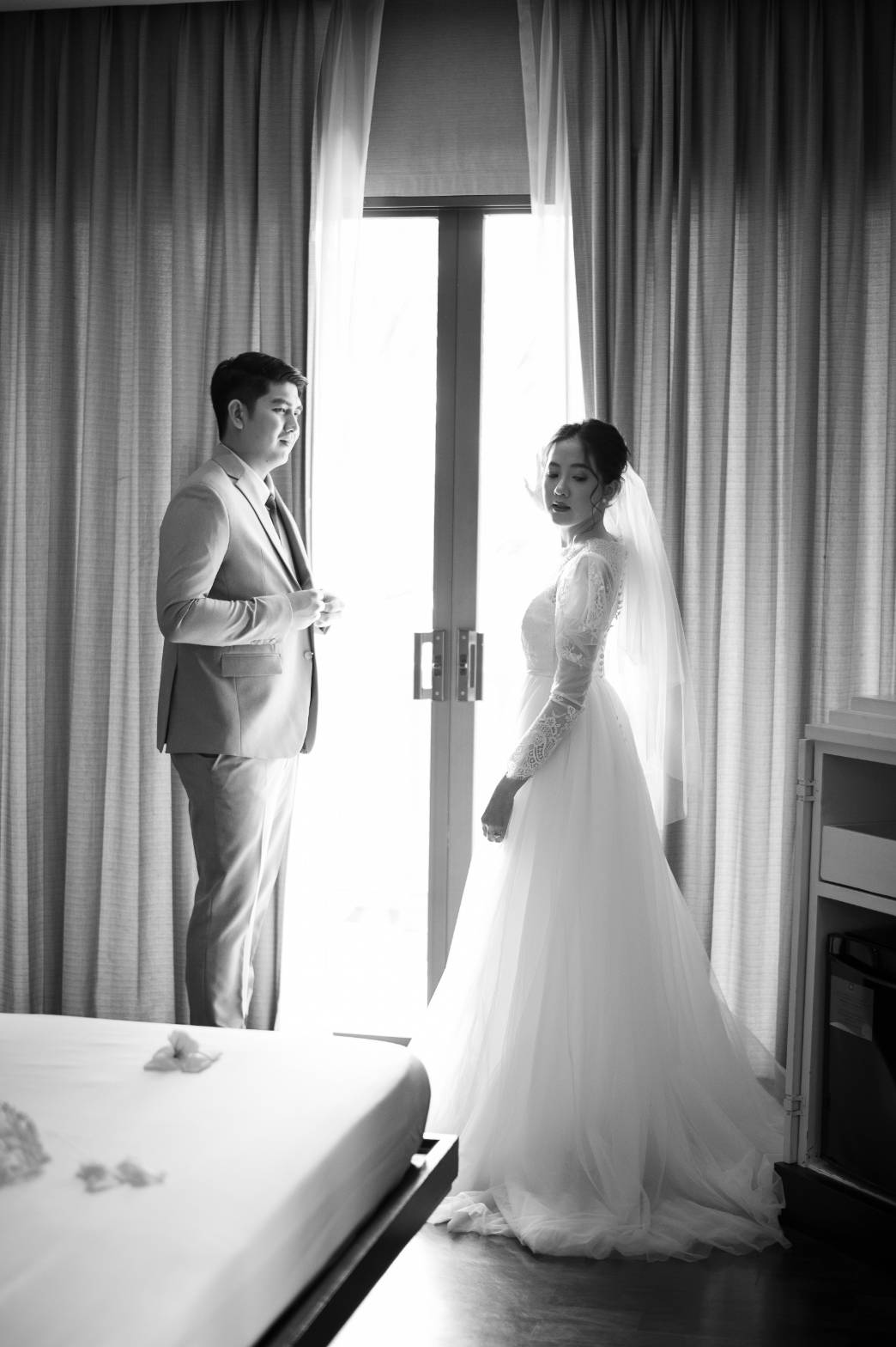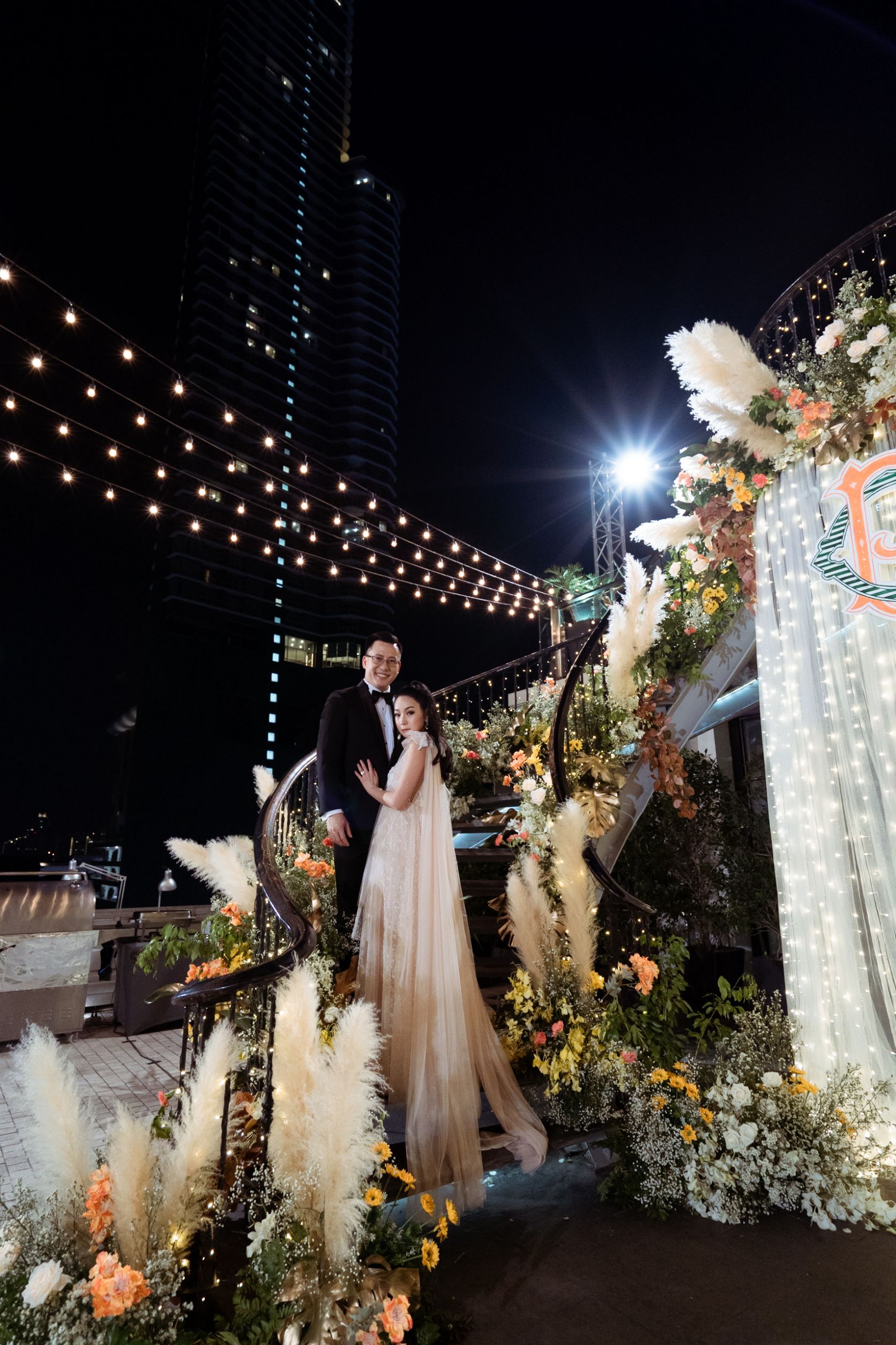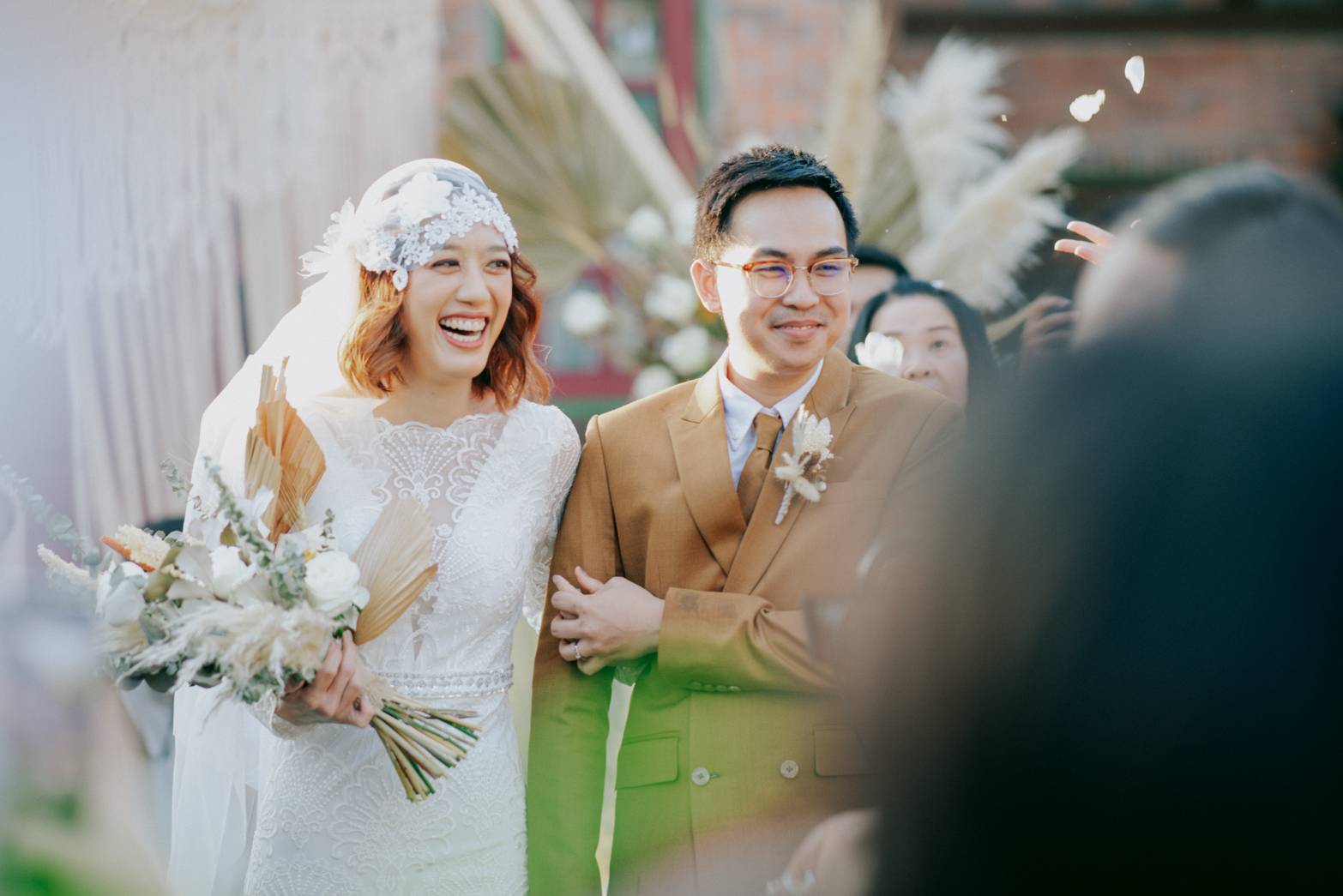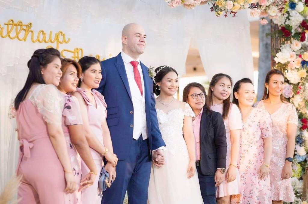 Khun Nok: Pastel pink engagement dress & Reception chiffon dress