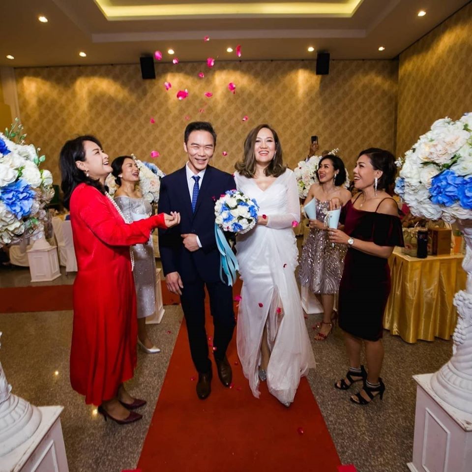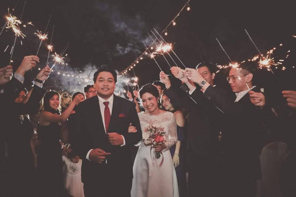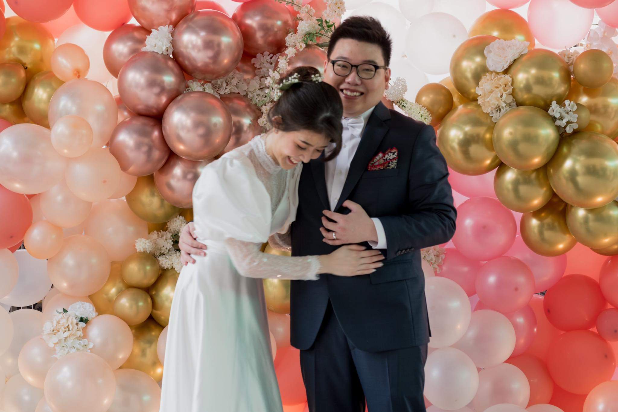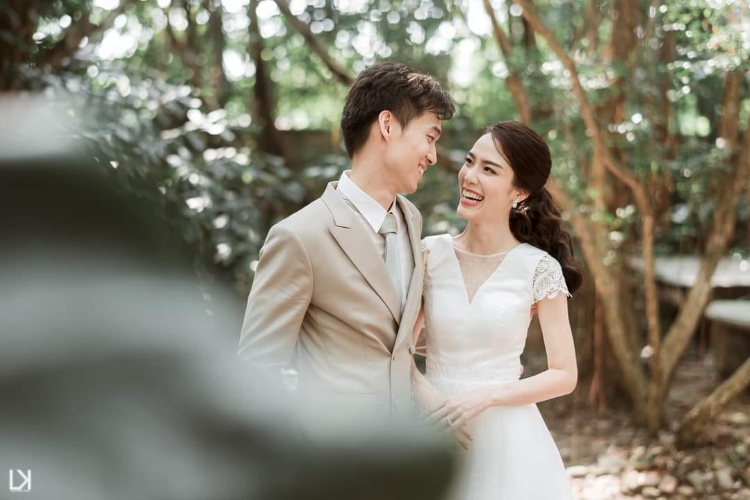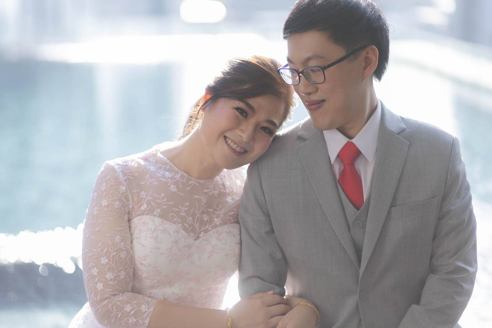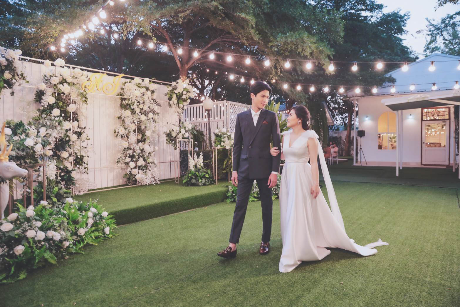 Khun Nok: Pastel pink engagement dress & Reception chiffon dress