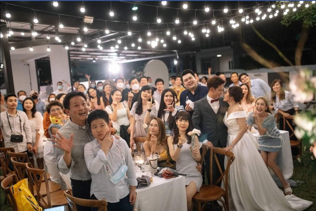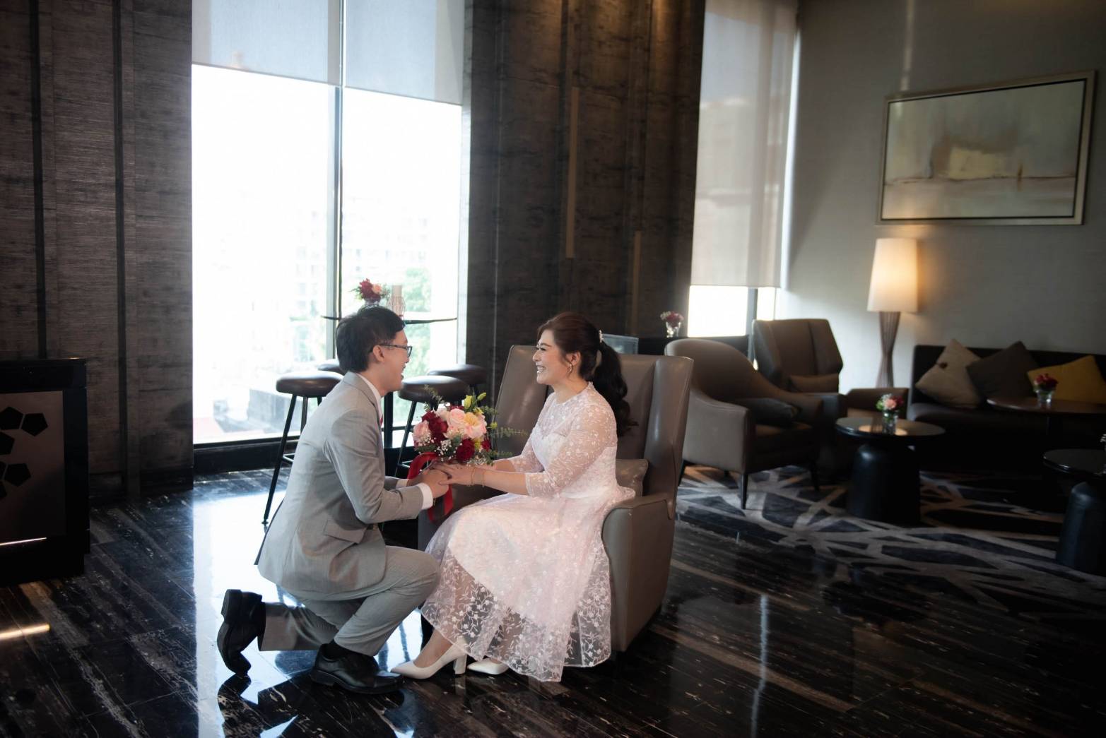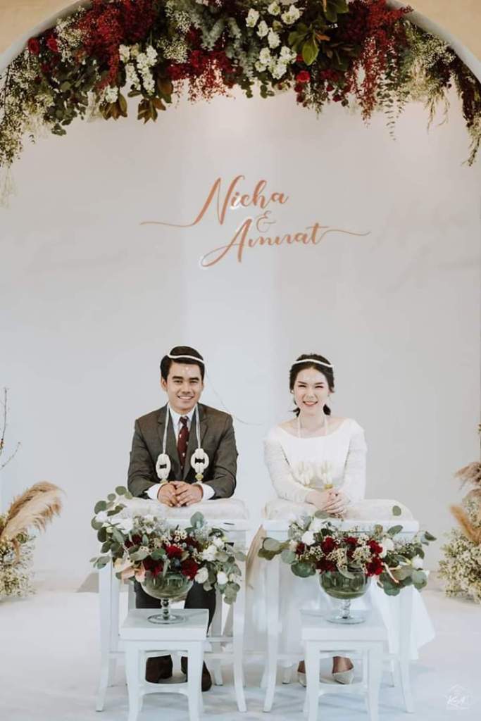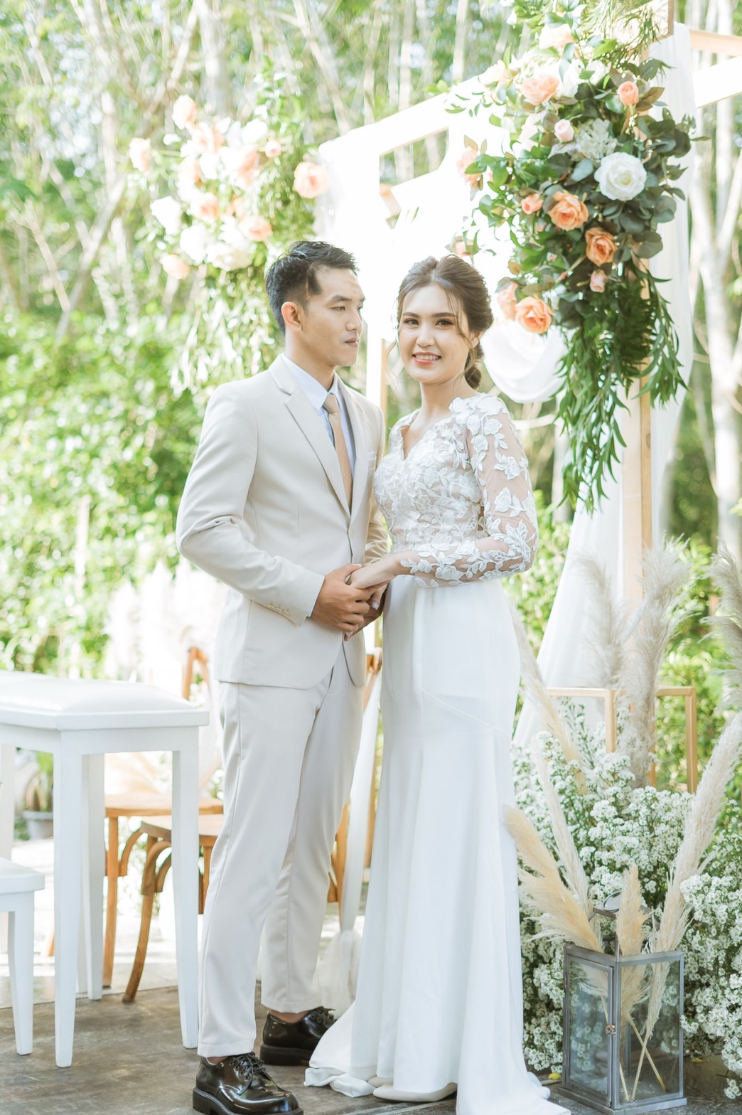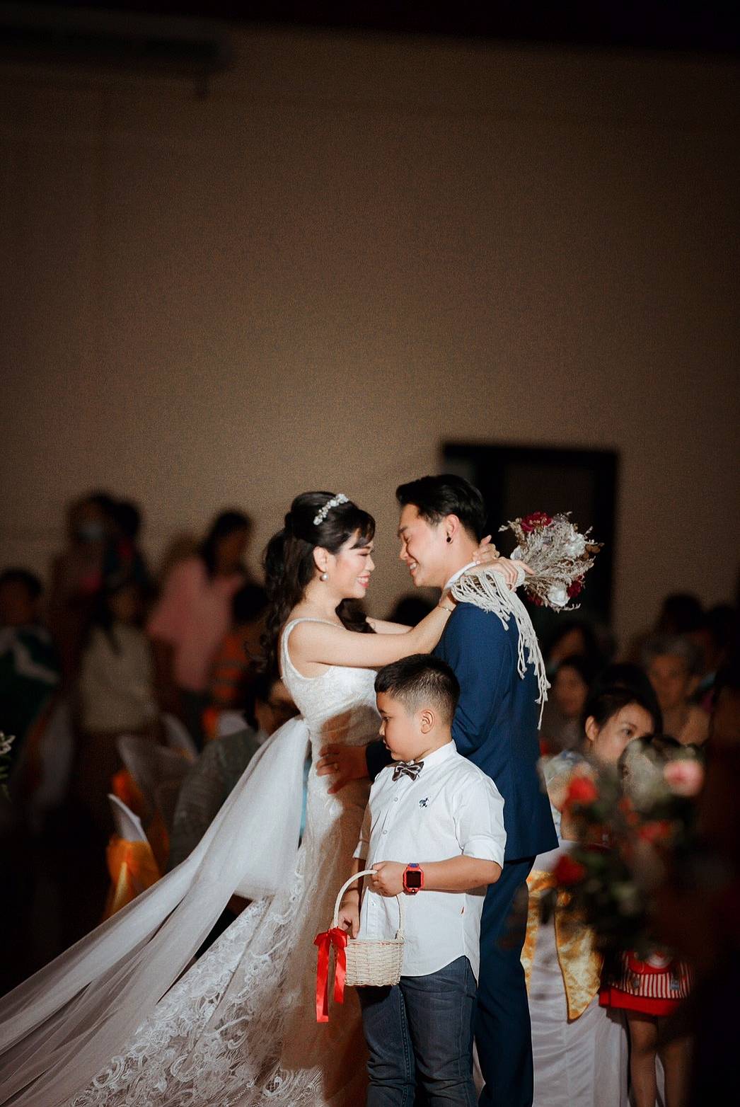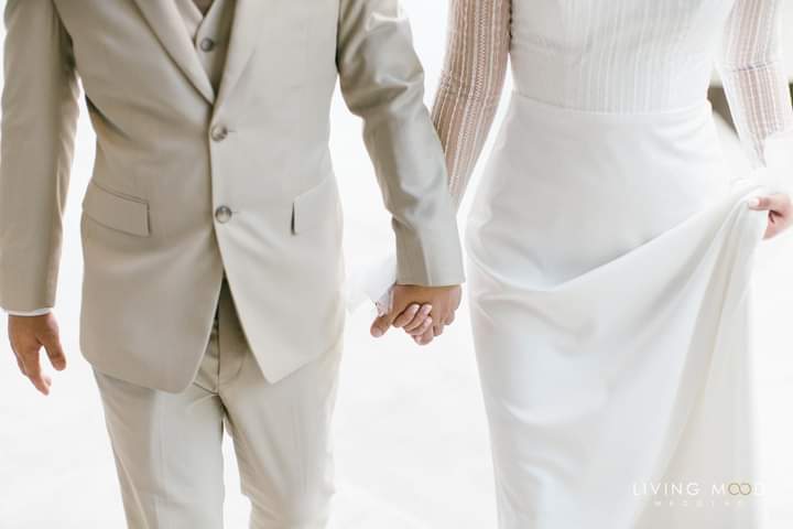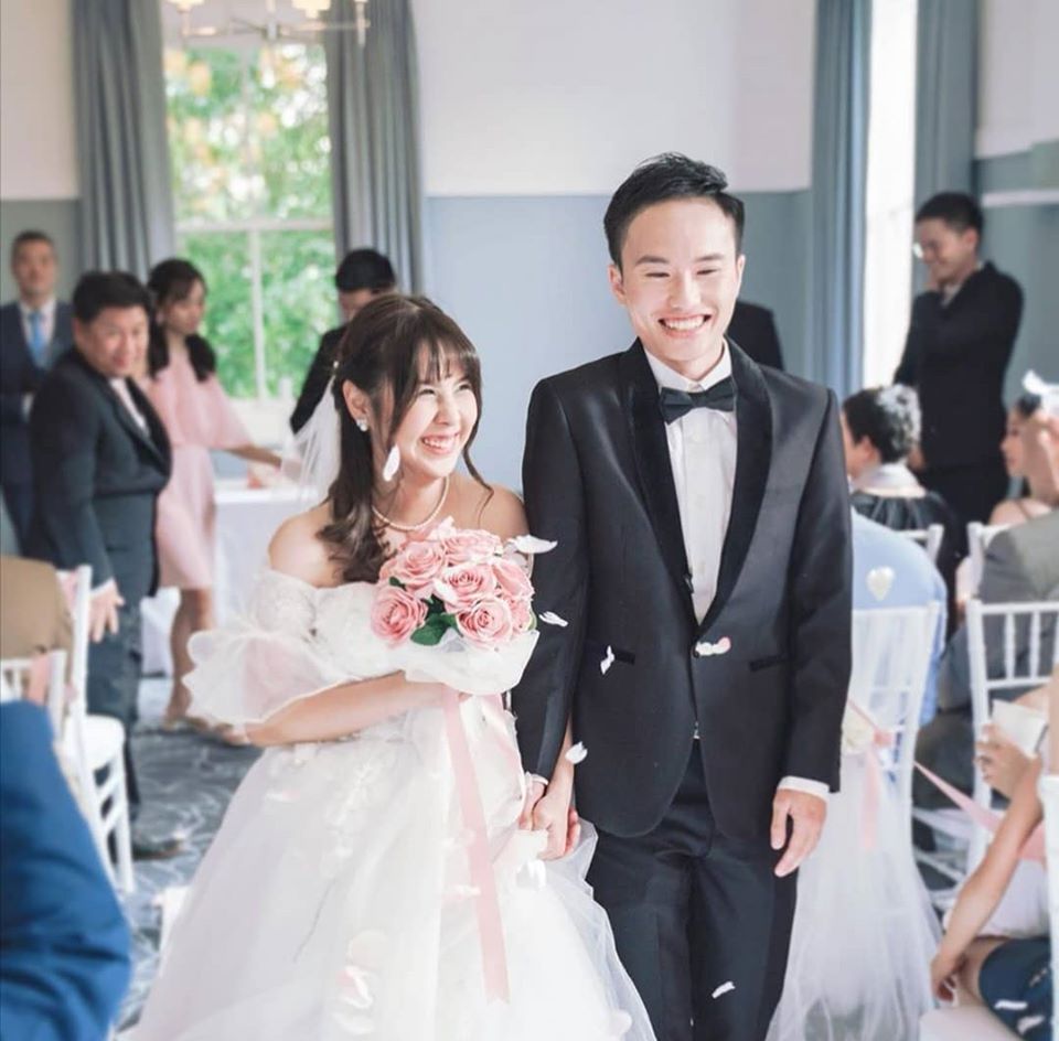 Khun Nok: Pastel pink engagement dress & Reception chiffon dress