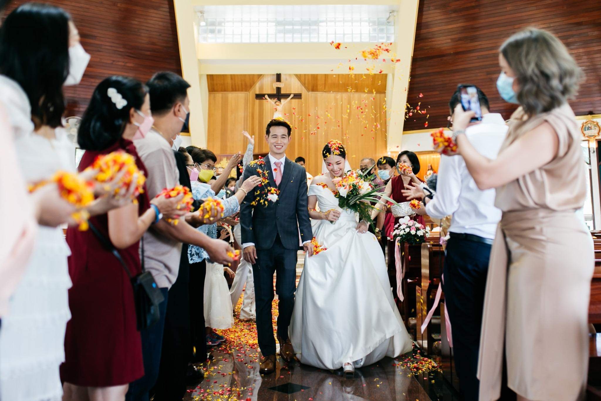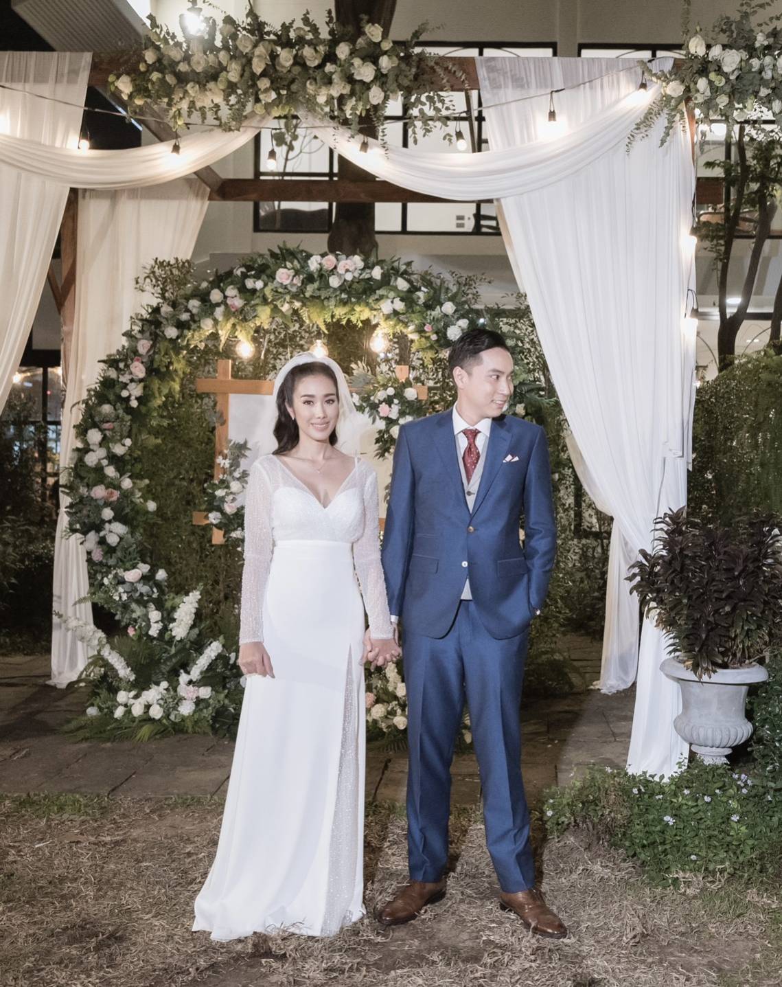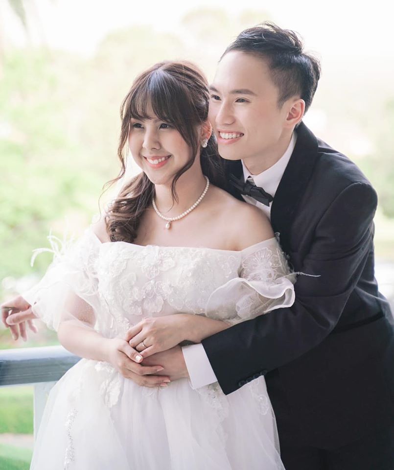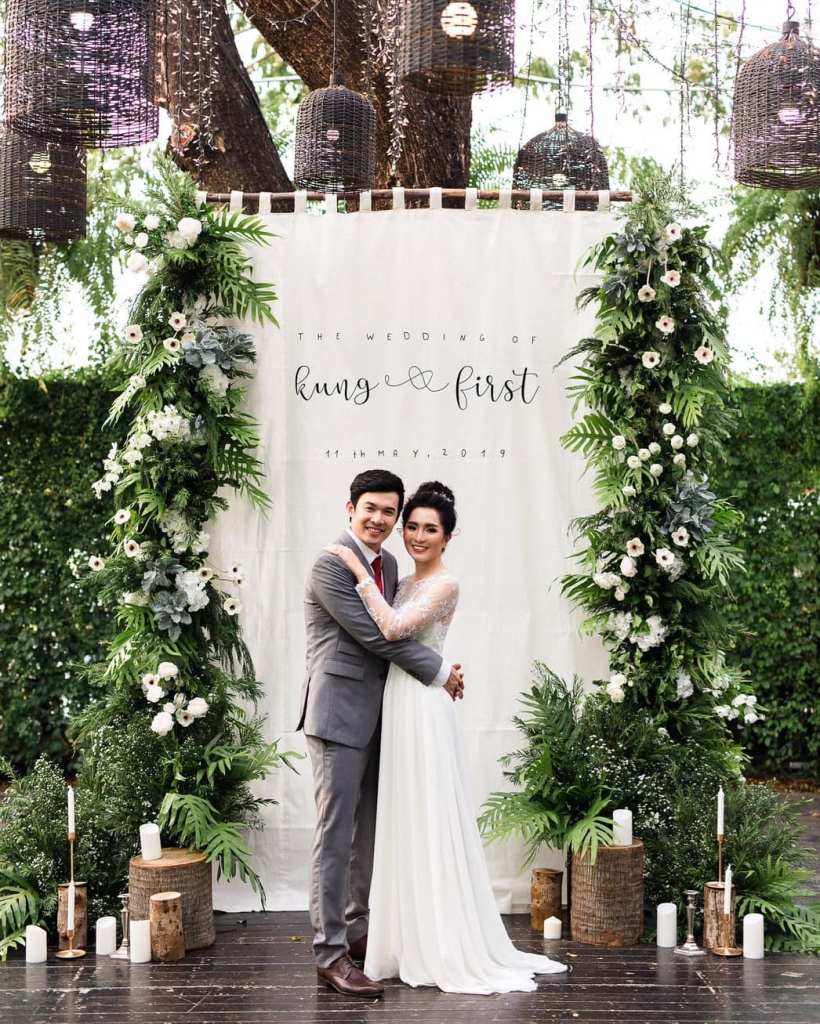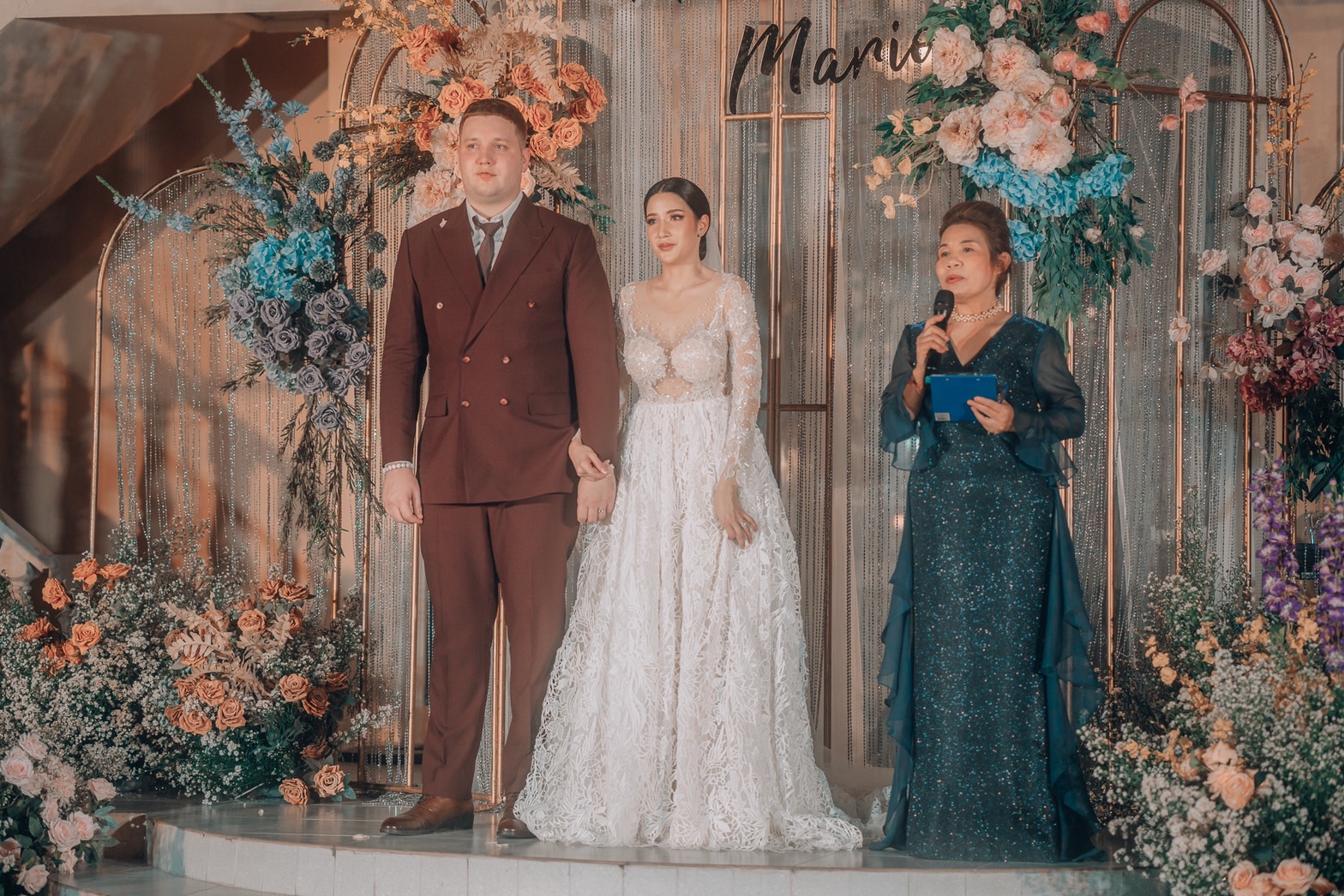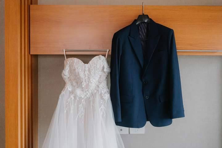 Khun Nok: Pastel pink engagement dress & Reception chiffon dress