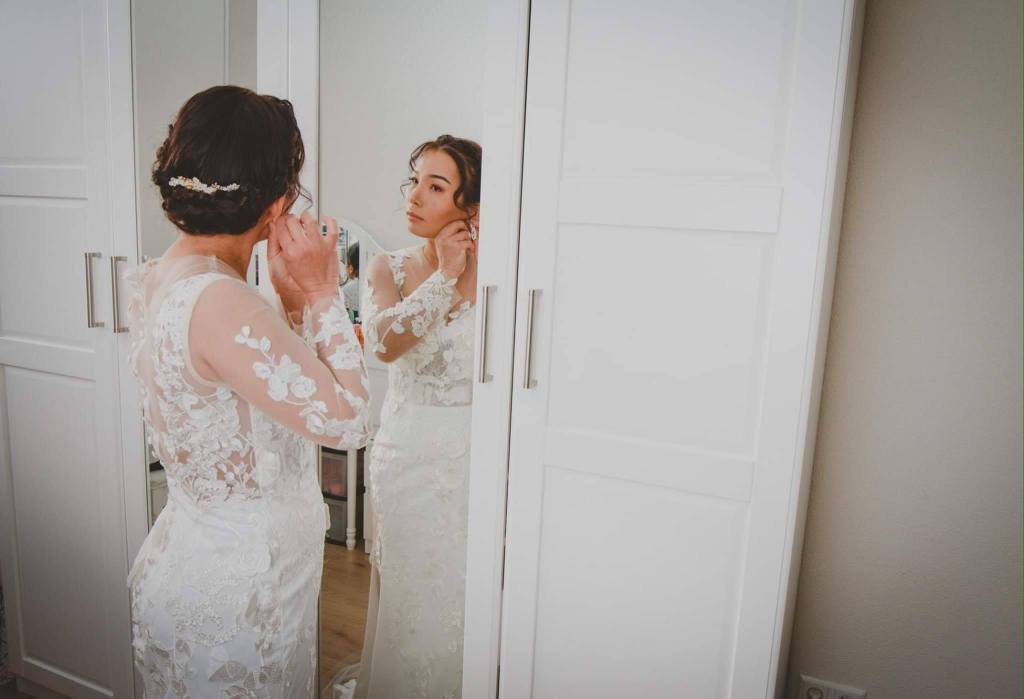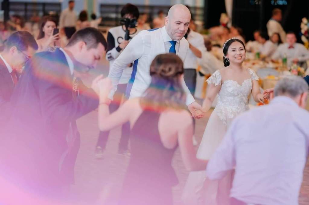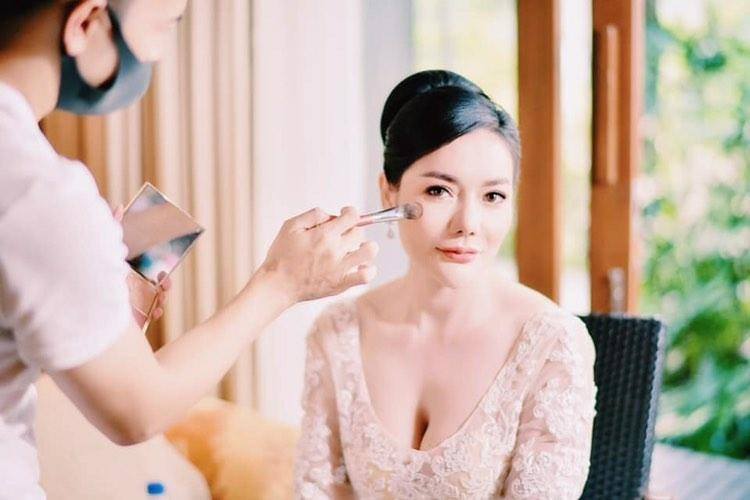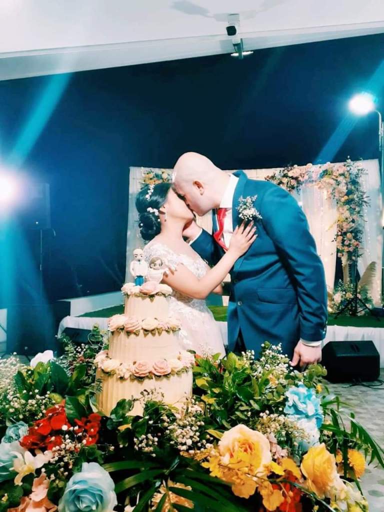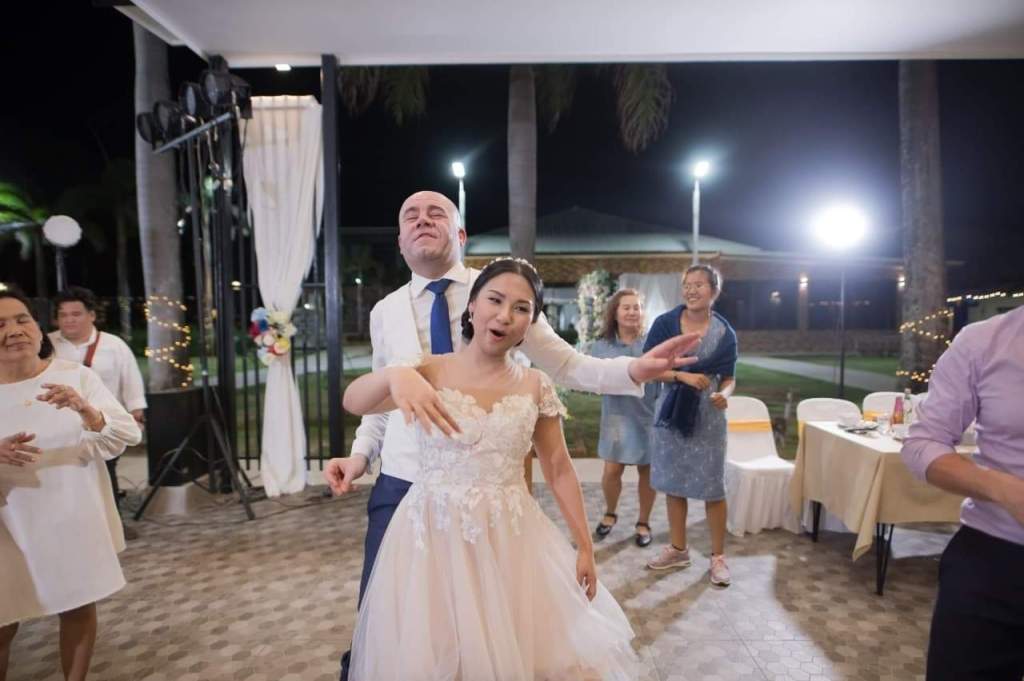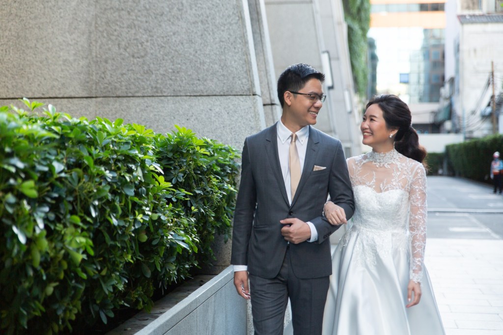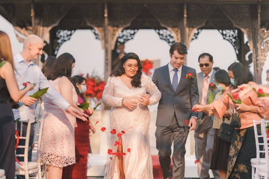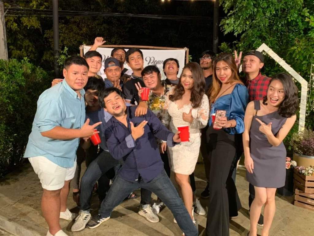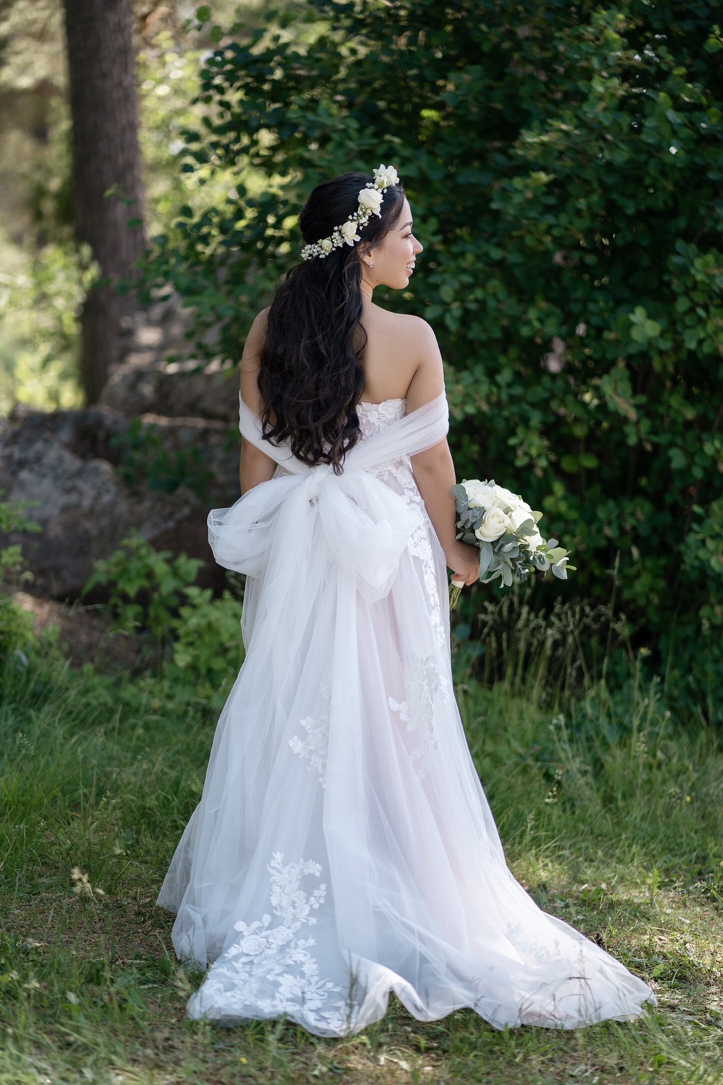 Khun Nok: Pastel pink engagement dress & Reception chiffon dress